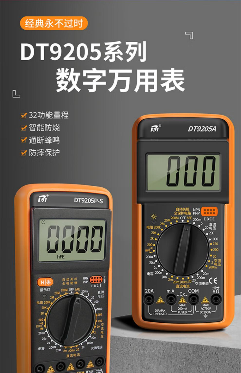 Jingxi multimètre de qualité allemande électricien numérique de haute précision spécial intelligent automatique anti-brûlure dt9205a montre portable modèle amélioré 9205P-S comprend une pile AA + fils de test + instructions