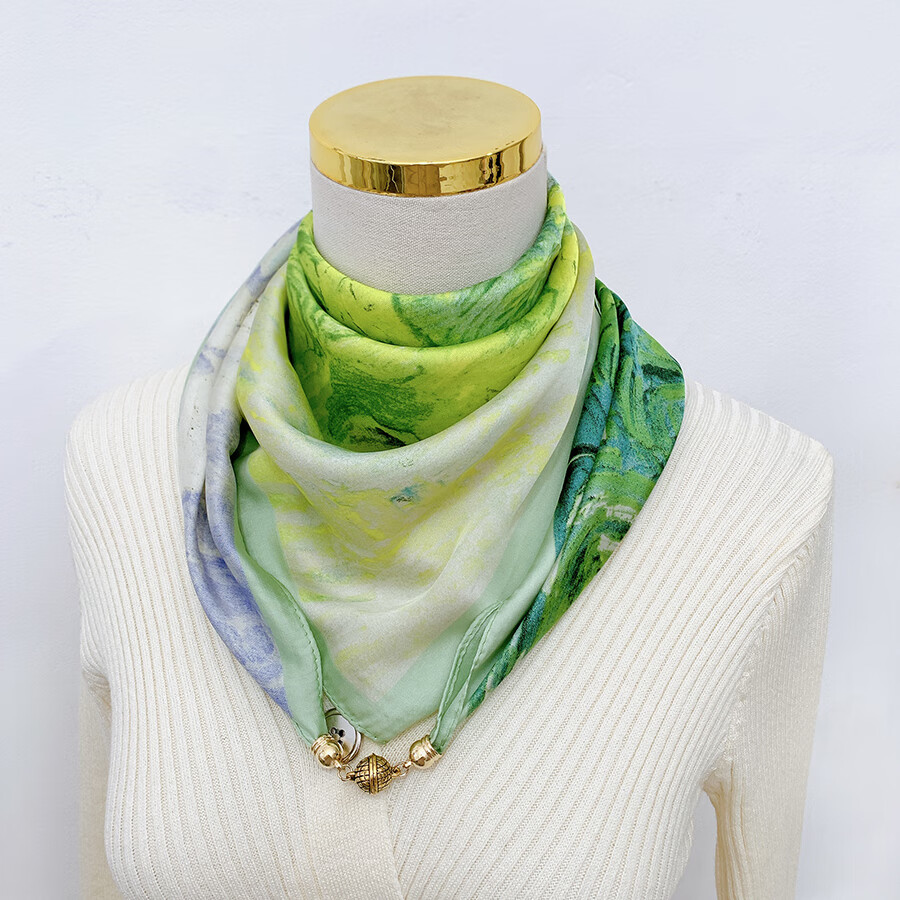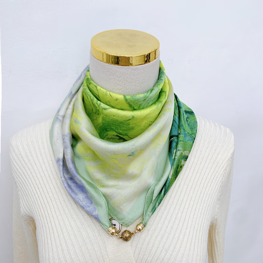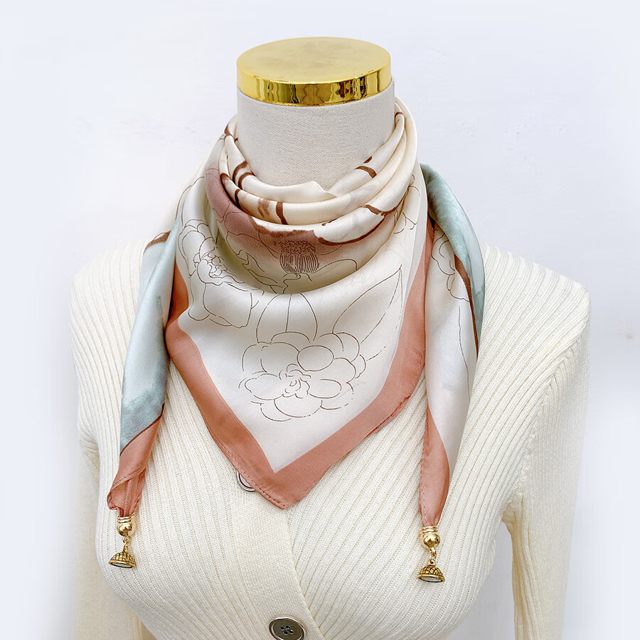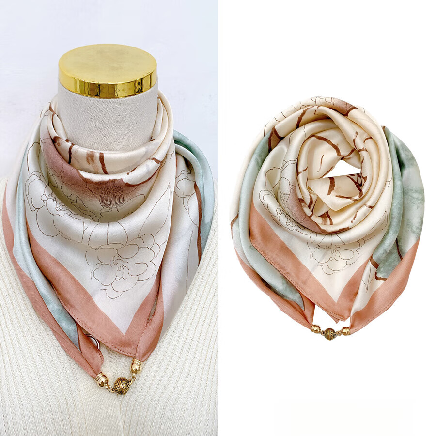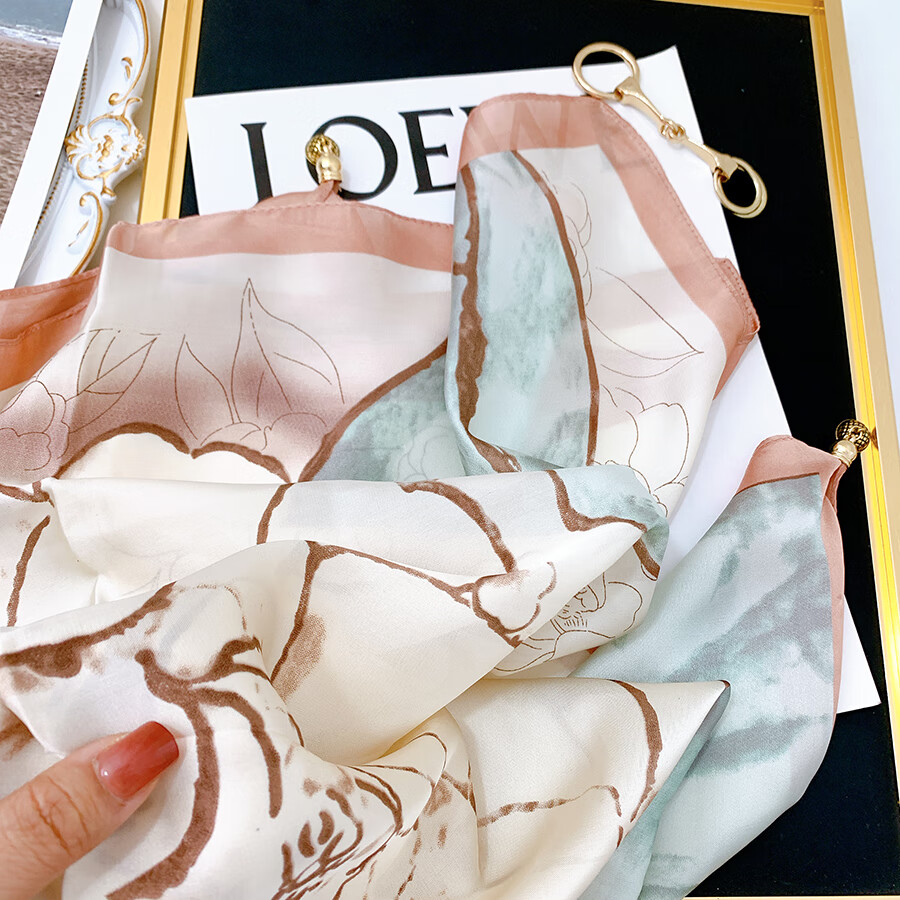 范诗奥新款百搭磁吸扣春秋方巾三角丝巾女领巾洋气围巾夏季时尚护颈围脖 清新蓝莲花
