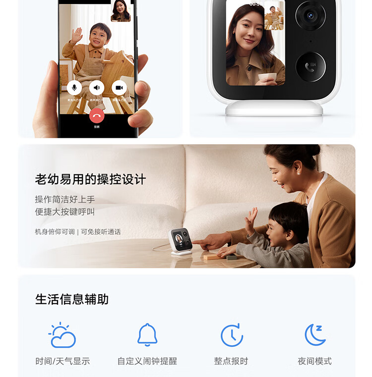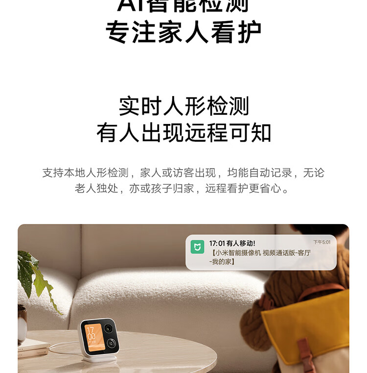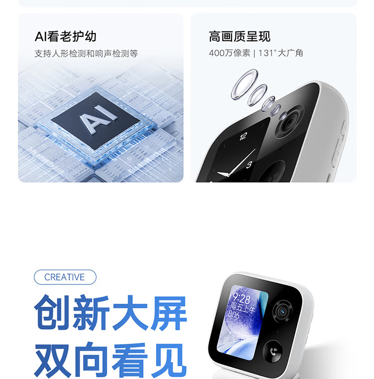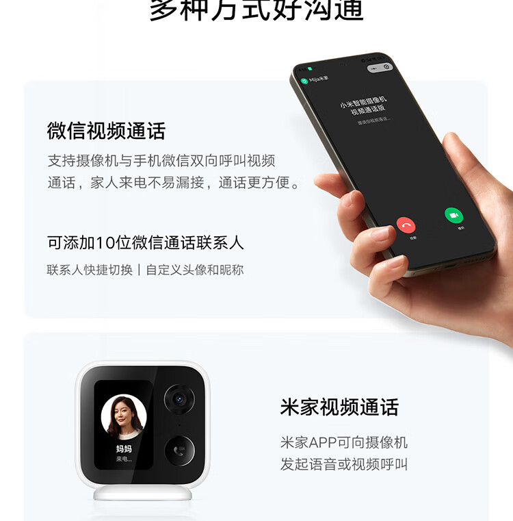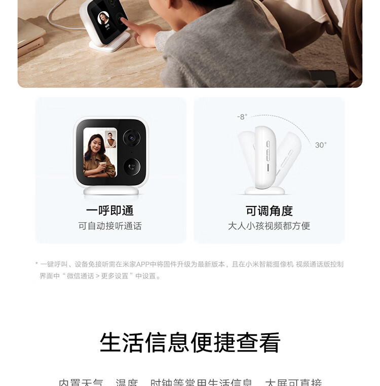 小米智能摄像机 视频通话版 400万像素3.5英寸带屏摄像头 一键呼叫微信通话 家用监控室内高清家庭看护 小米智能摄像机 视频通话版