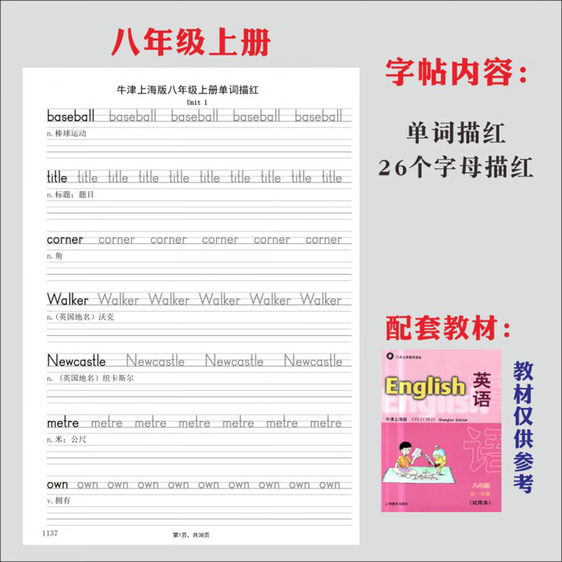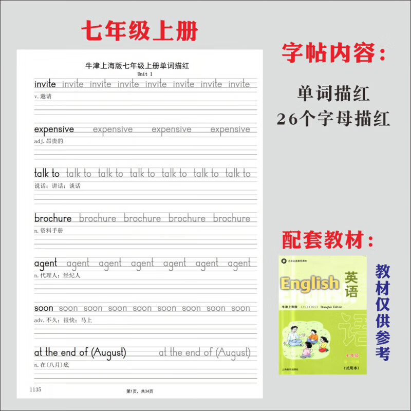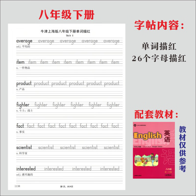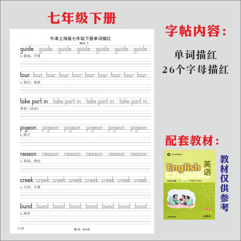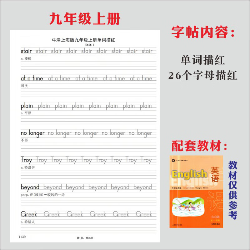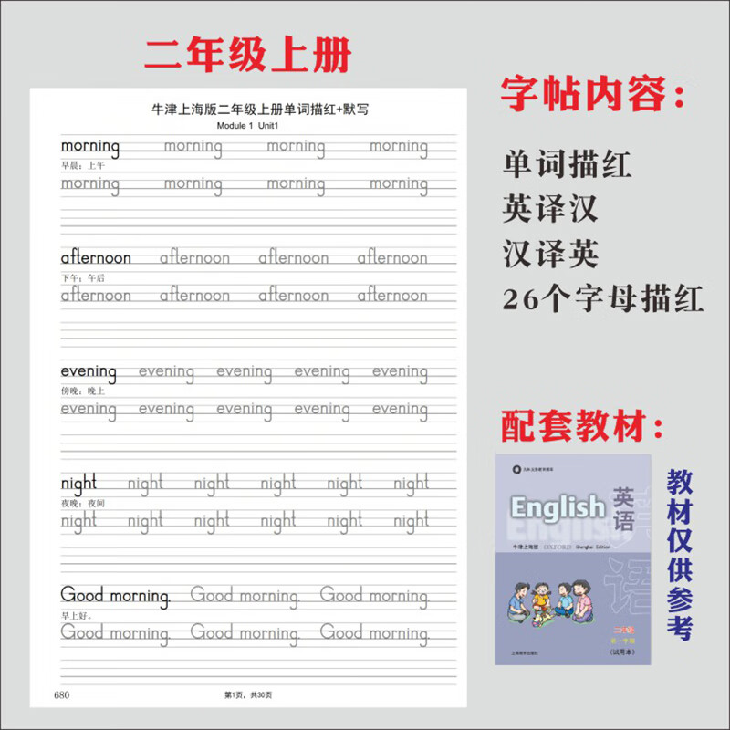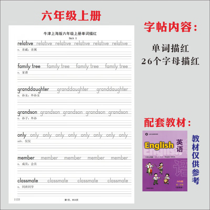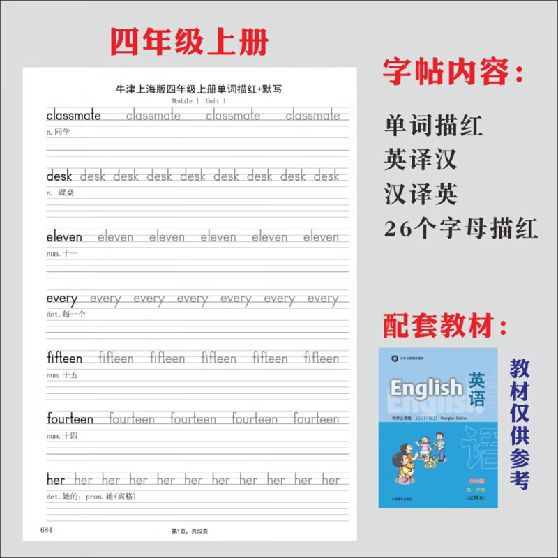 牛津上海版123456年级小学英语描红字帖默写上海木棍体练习作业本 686五上牛津上海单词描红47页