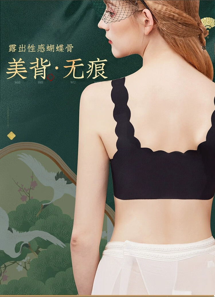 无痕乳胶内衣女小胸聚拢上托无钢圈美背文胸新款透气花瓣运动胸罩 黑色+肤色 S 【建议80-100斤】