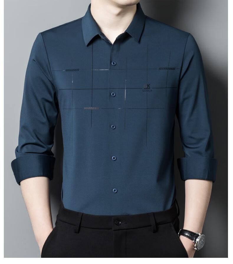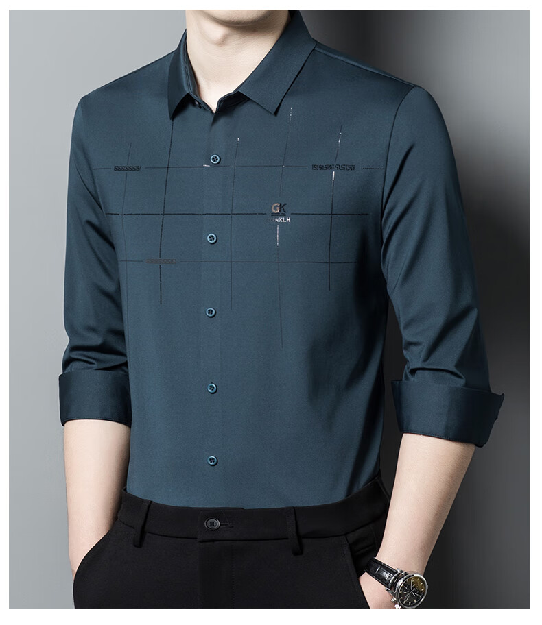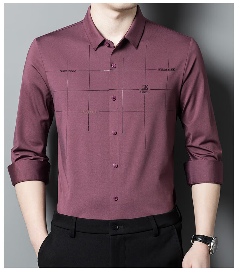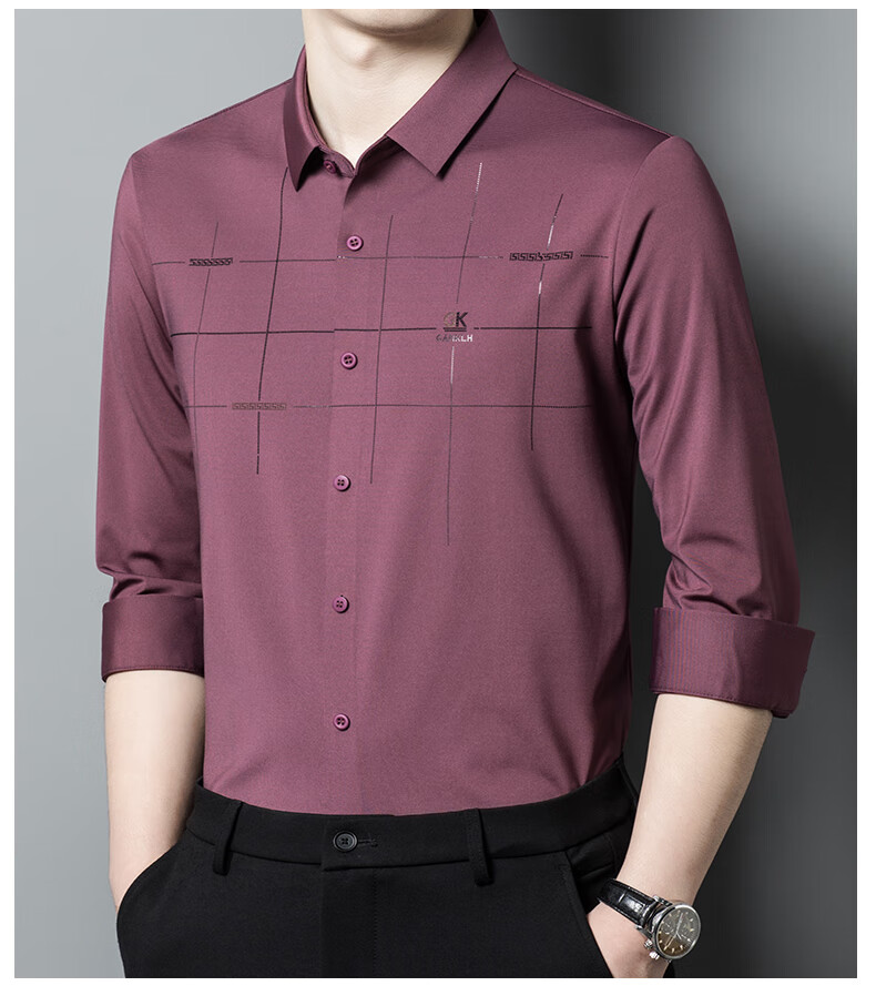 啄木鸟喜爸爸装参加结婚宴礼服长袖衬衫男士薄款春秋季高端桑蚕丝衬衣男 红色 BJ6637 175 XL