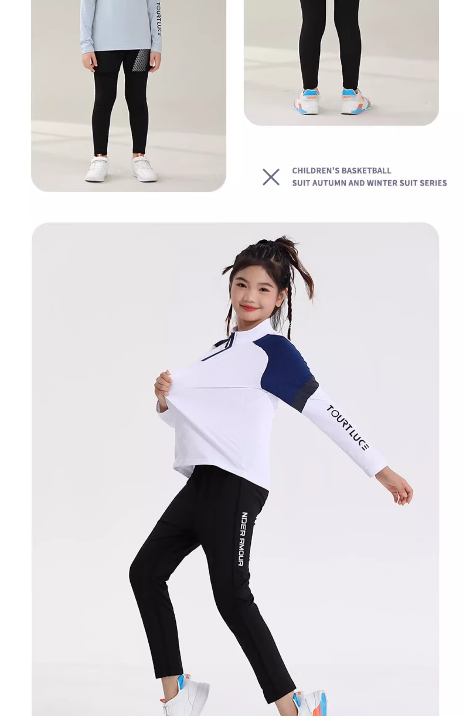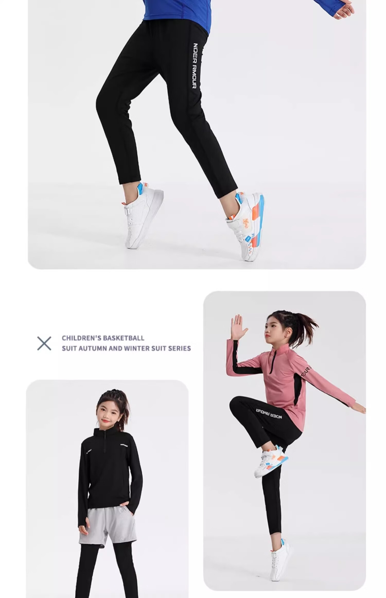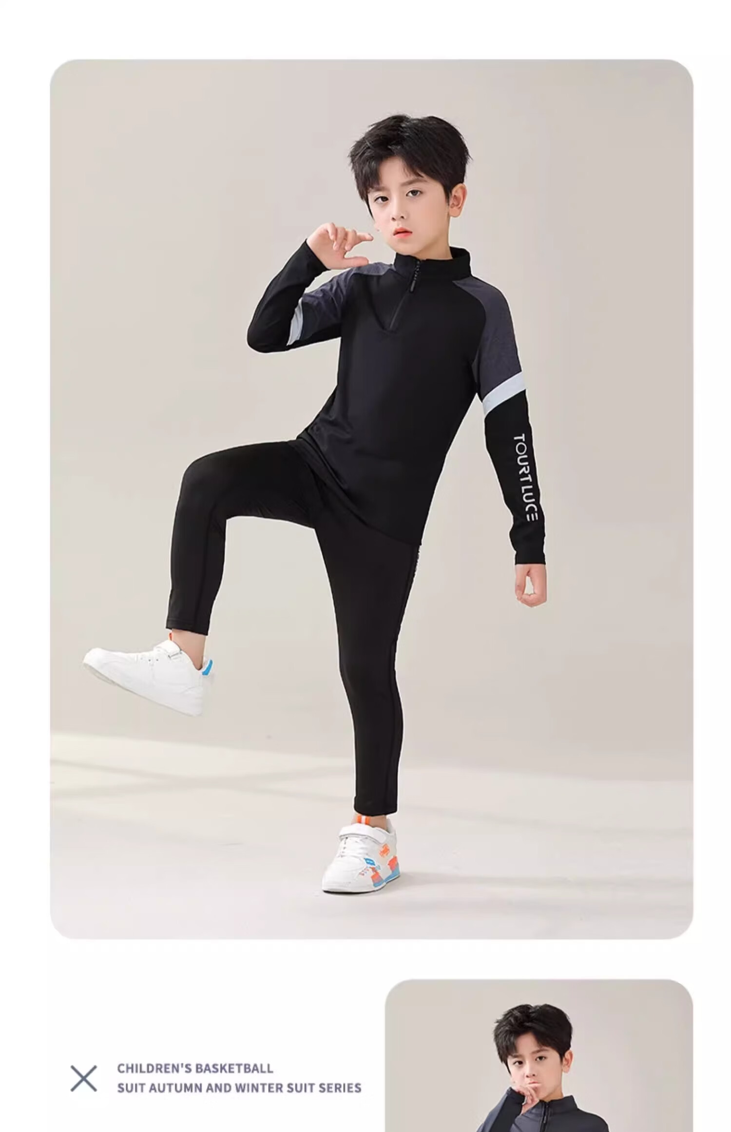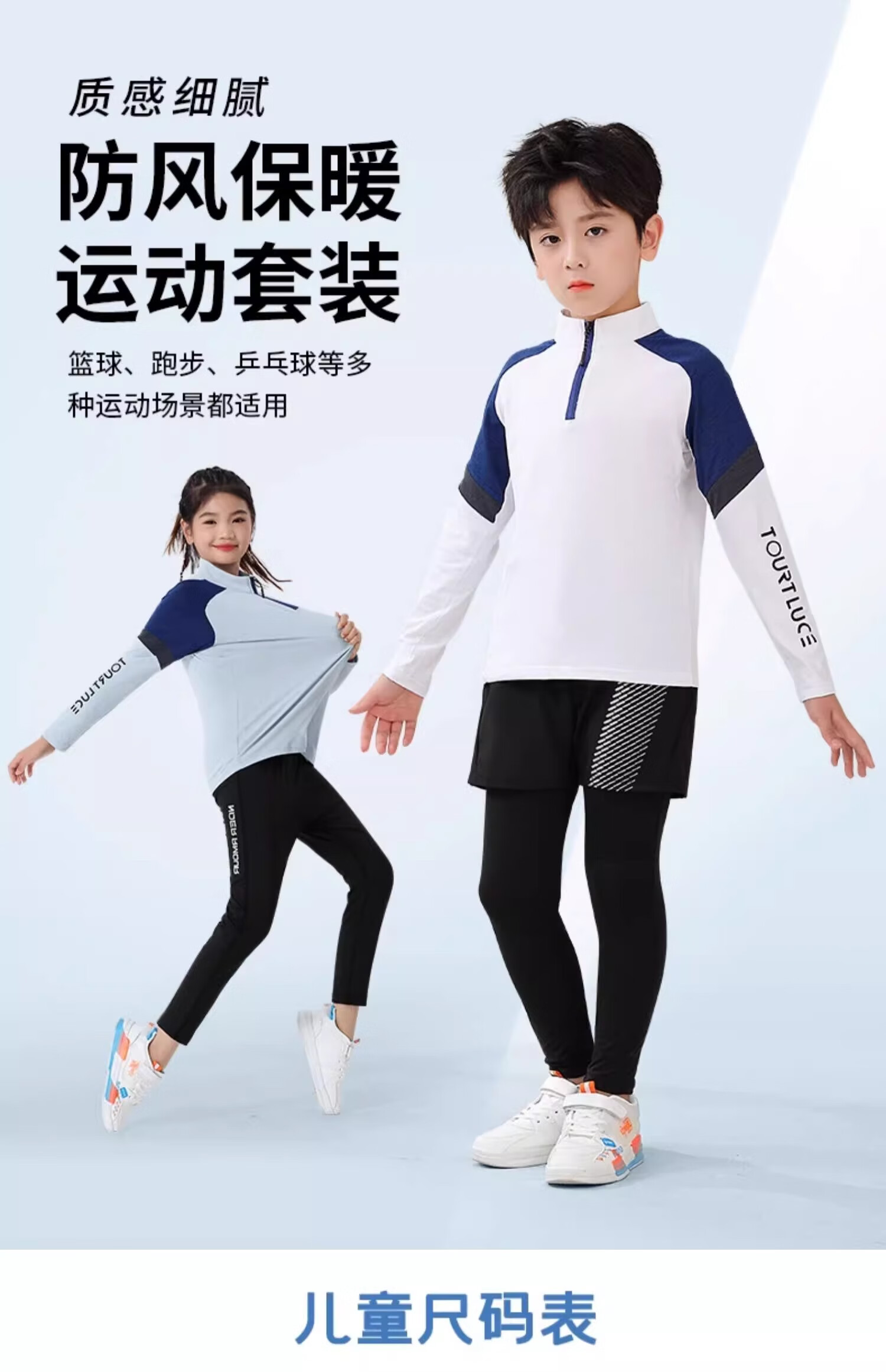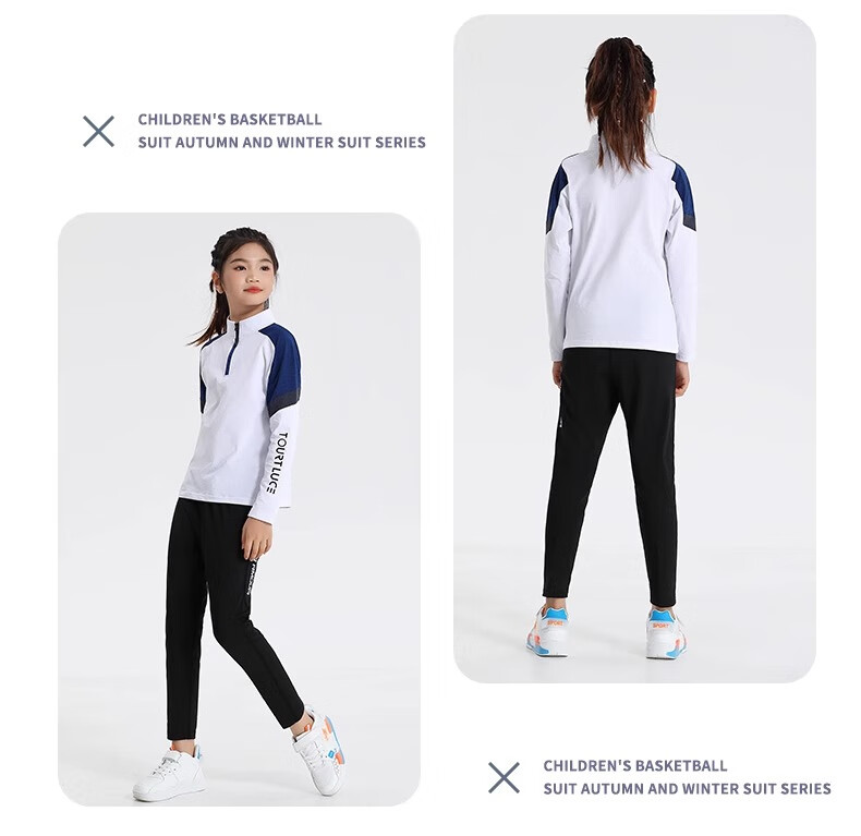凯日虎儿童冬季运动跑步套装训练服长袖速干男女童专业紧身衣羽毛球服 9794白色上衣+2307黑长裤 22码