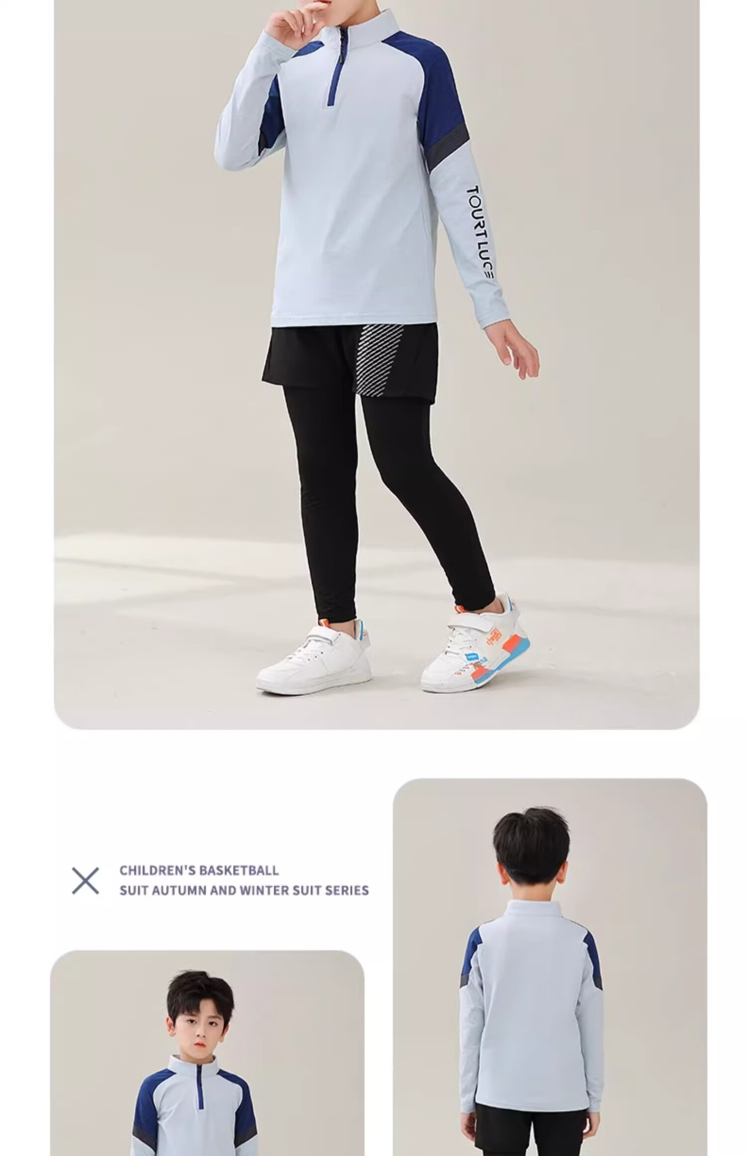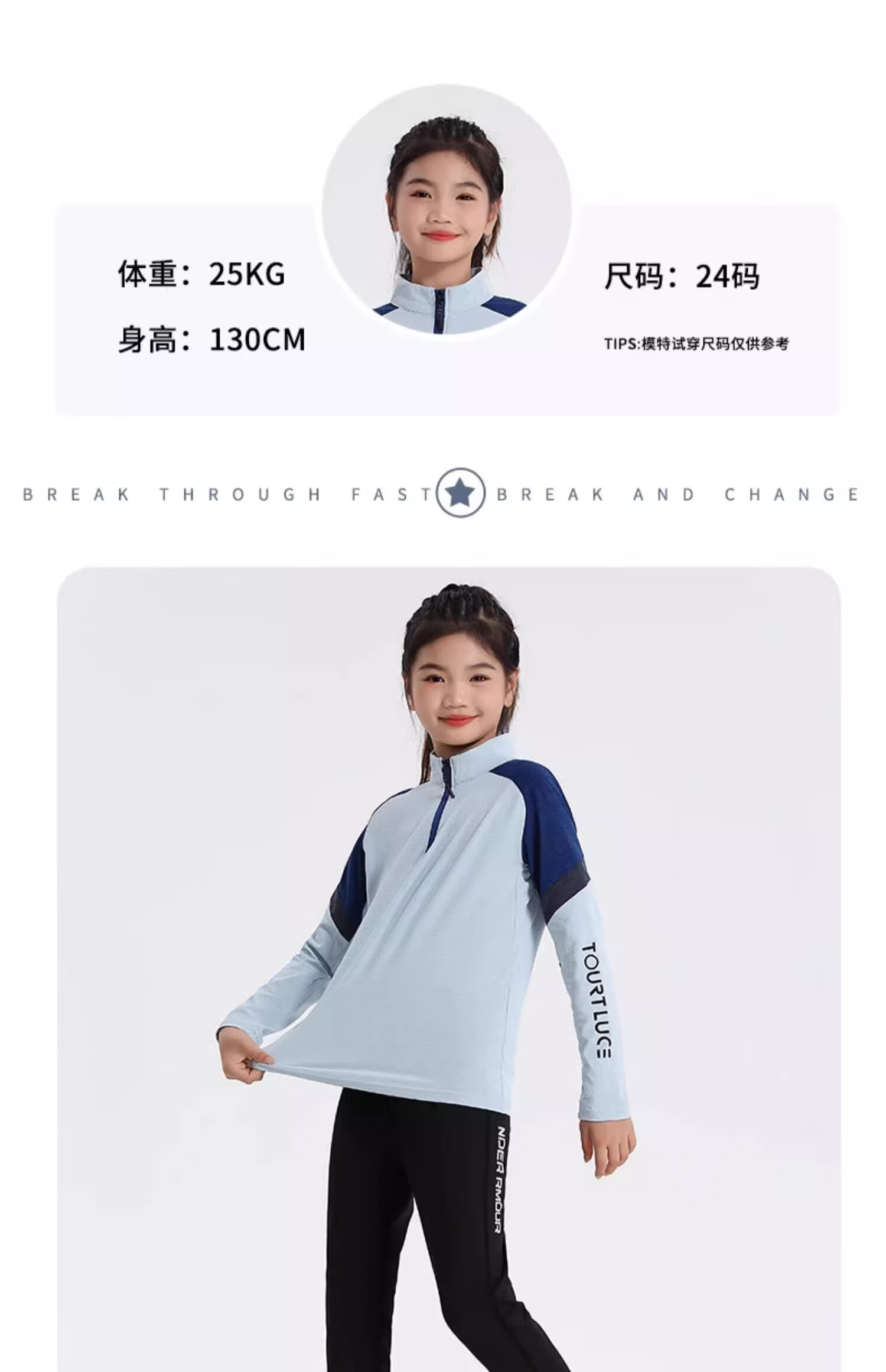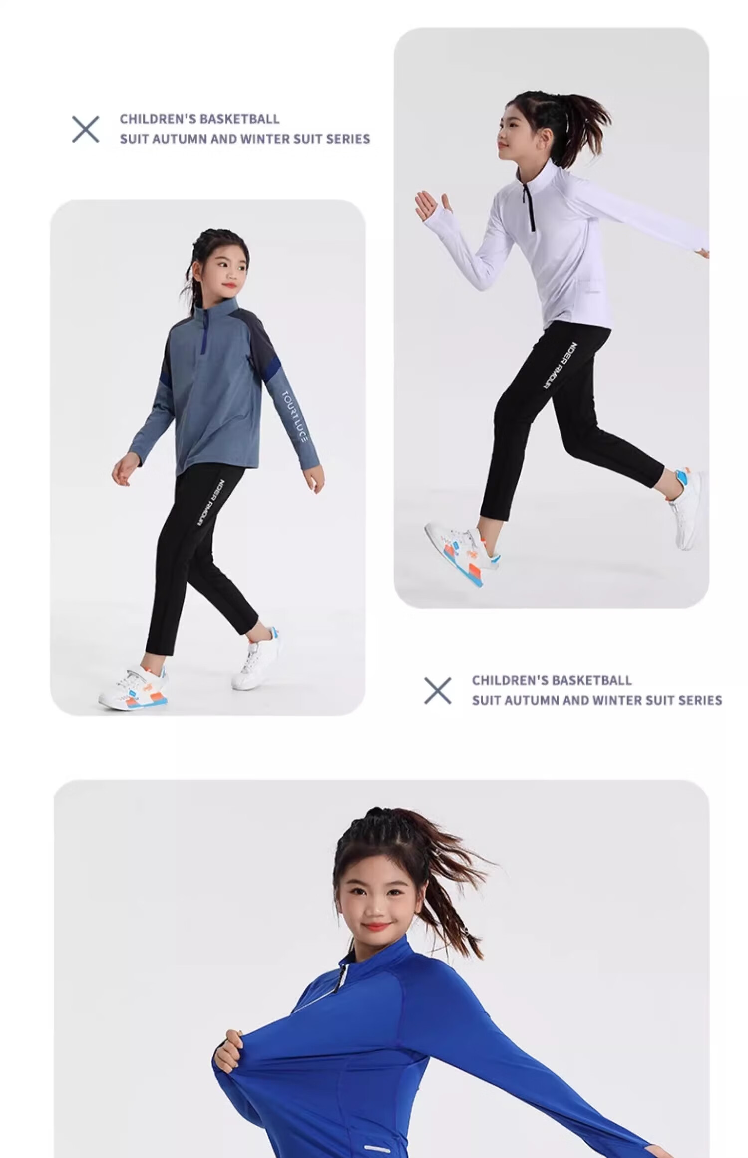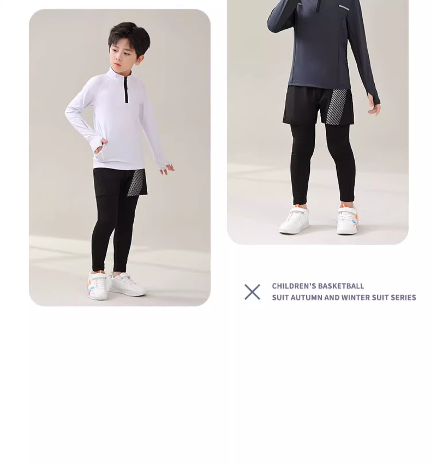 凯日虎儿童冬季运动跑步套装训练服长袖速干男女童专业紧身衣羽毛球服 9794白色上衣+2307黑长裤 22码
