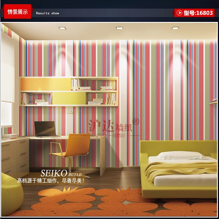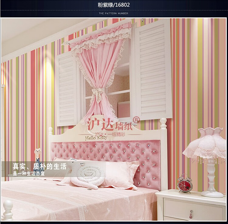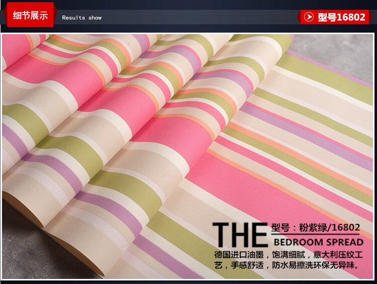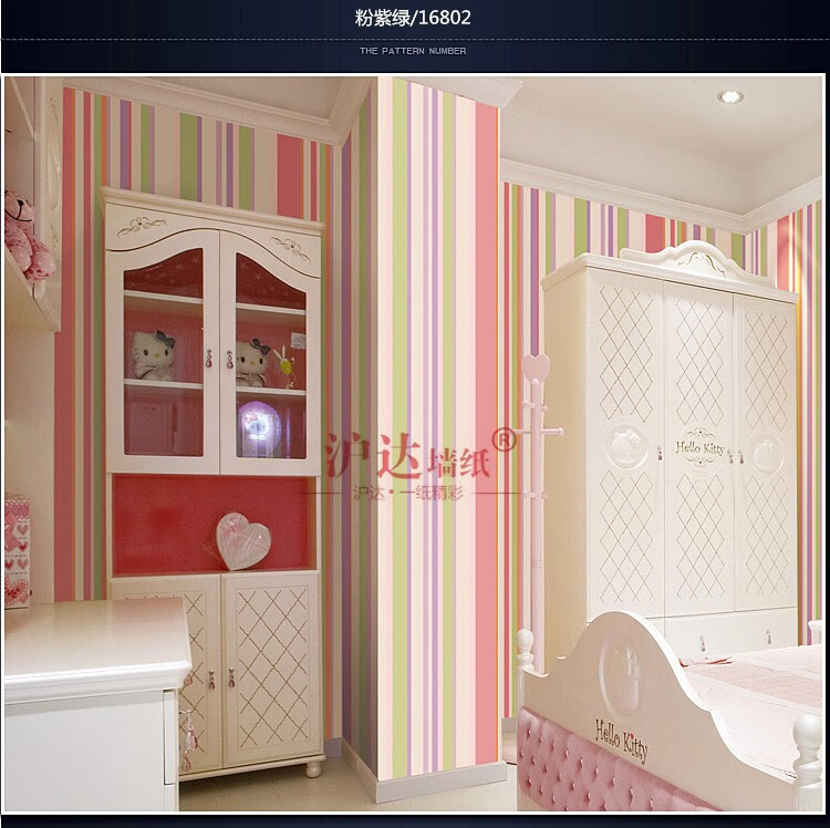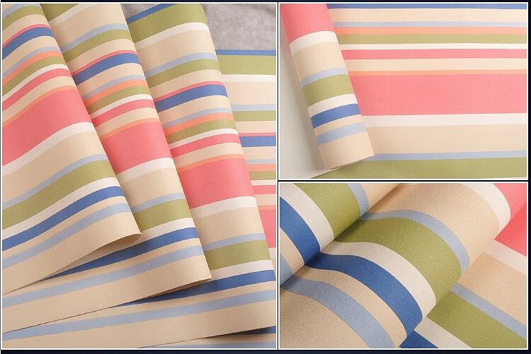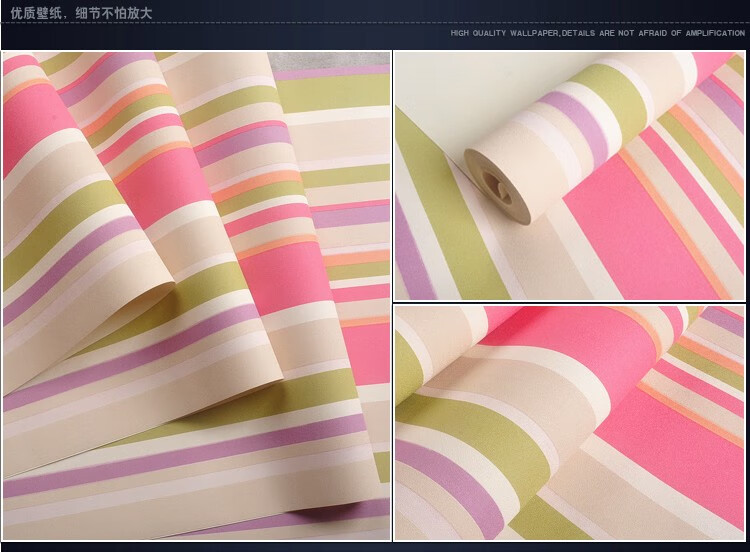 Huda-Tapete, farbige vertikale Streifen-Tapete, Kinderbekleidung, Milch, Teeladen, Dekoration, Snack, Schaufenster, kommerzielle Gastronomie, Hintergrund-Tapete, Rosa, Lila, Grün, 16802 (nicht selbstklebend), nur Tapete