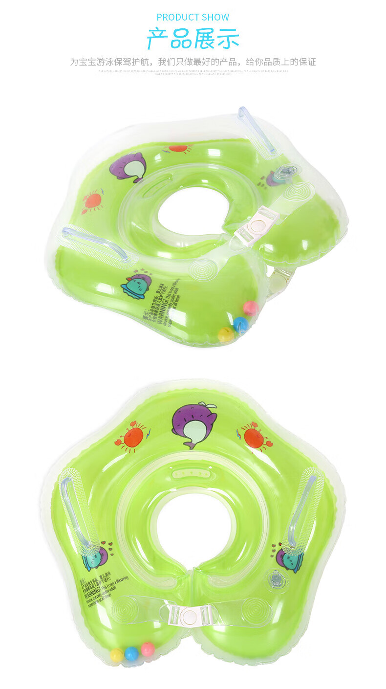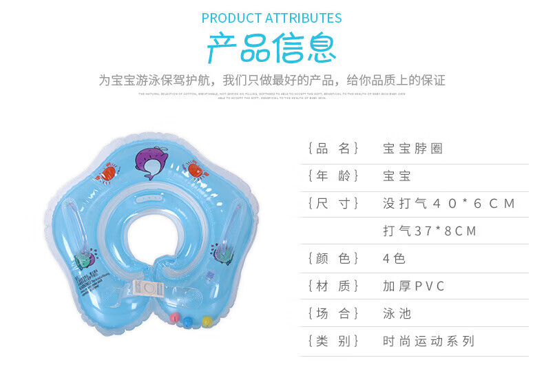 糜鸿(MIEHONE)婴儿游泳圈儿童脖圈宝宝洗澡充气加厚幼儿小孩可调节颈圈0-12个月 天蓝色(单脖圈)