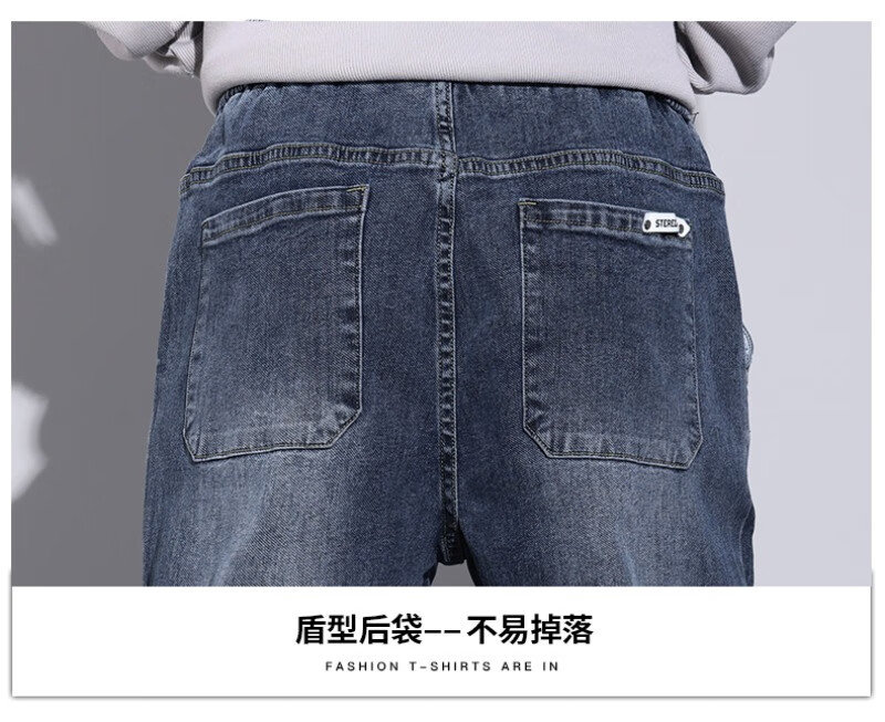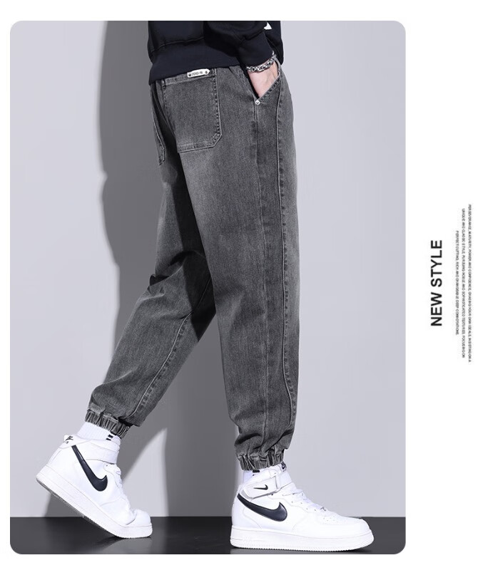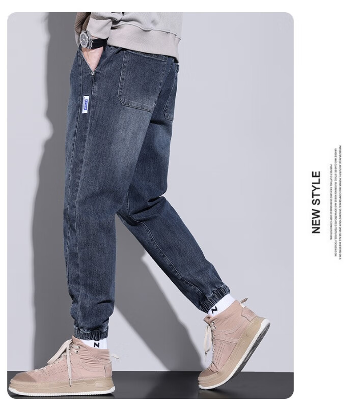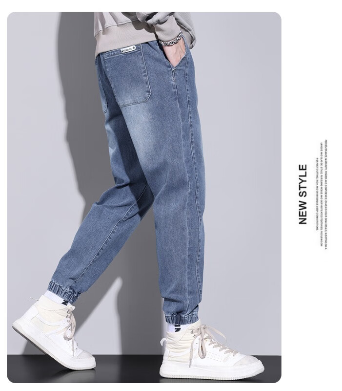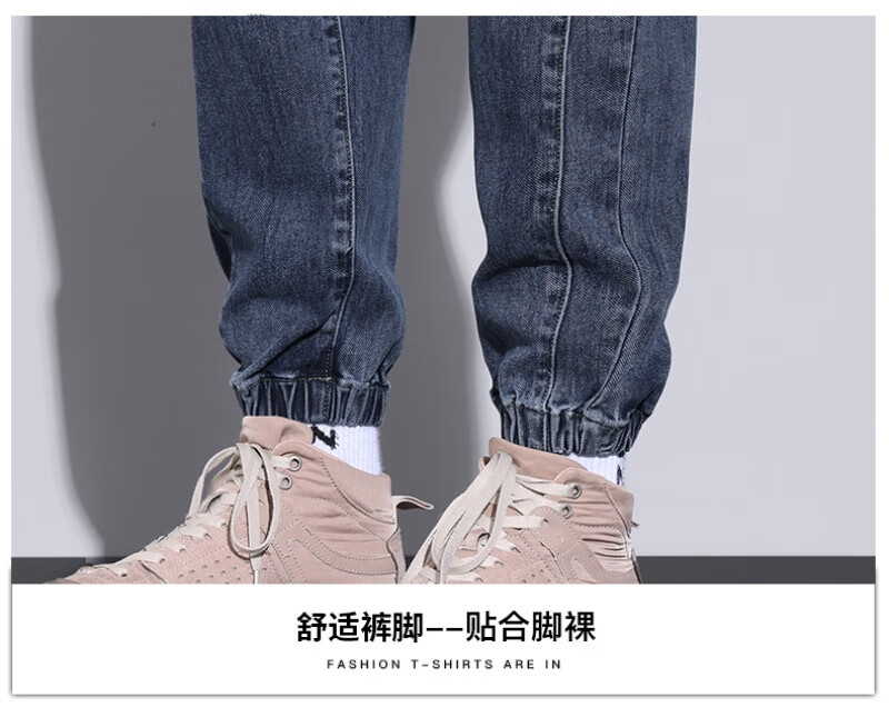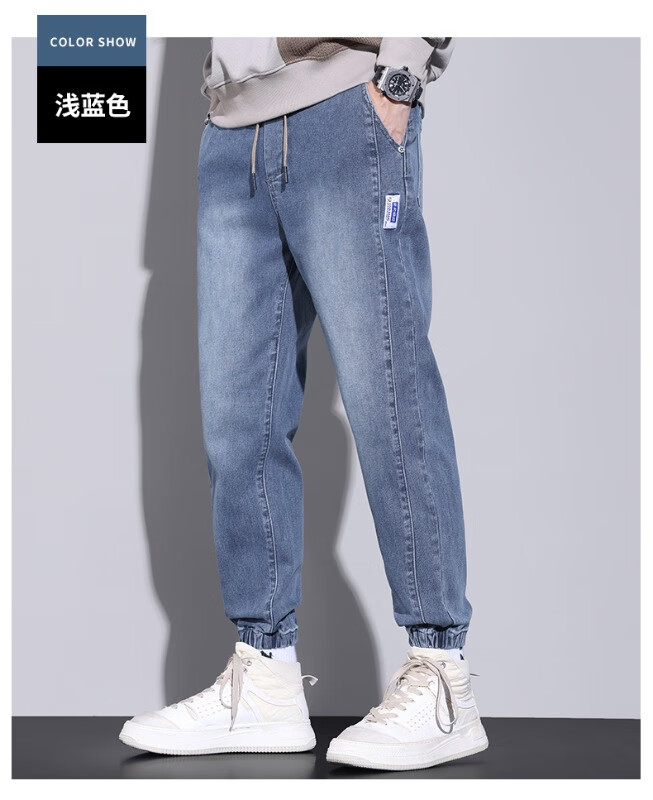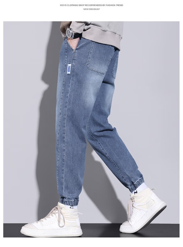 大码牛仔裤男士2025潮流春秋季新款束脚裤舒适百搭哈伦休闲裤子男 WKK536浅蓝 XL
