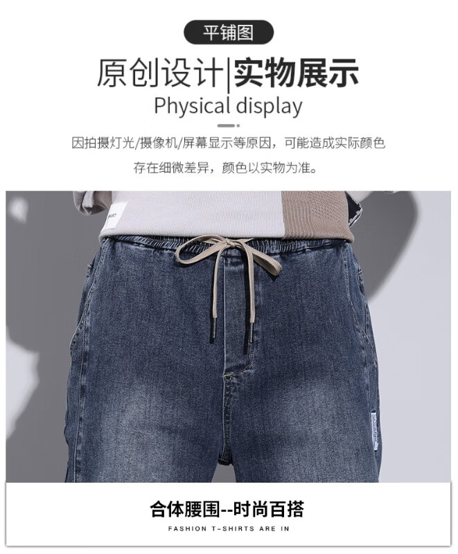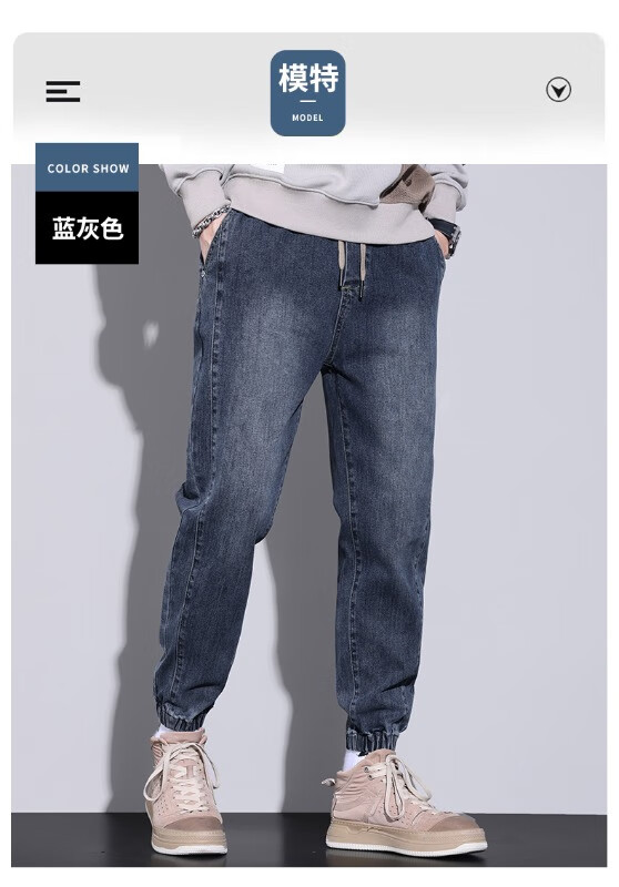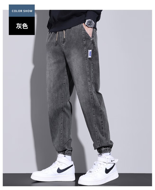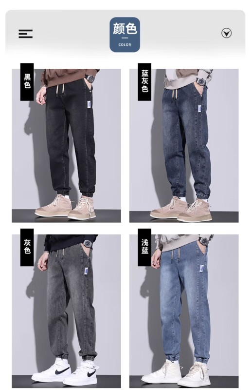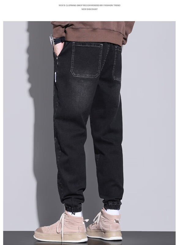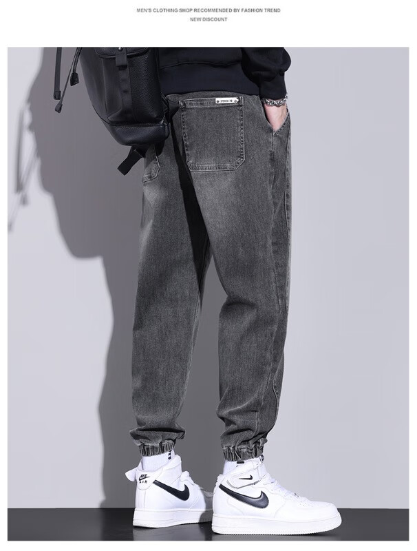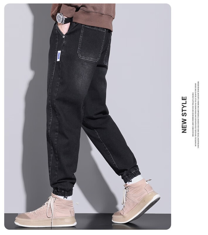 大码牛仔裤男士2025潮流春秋季新款束脚裤舒适百搭哈伦休闲裤子男 WKK536浅蓝 XL