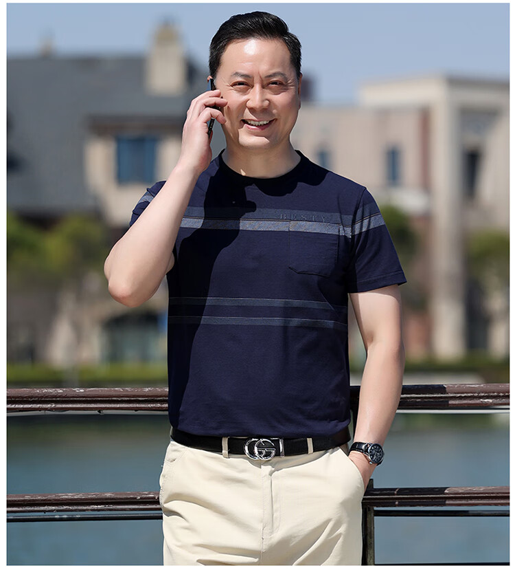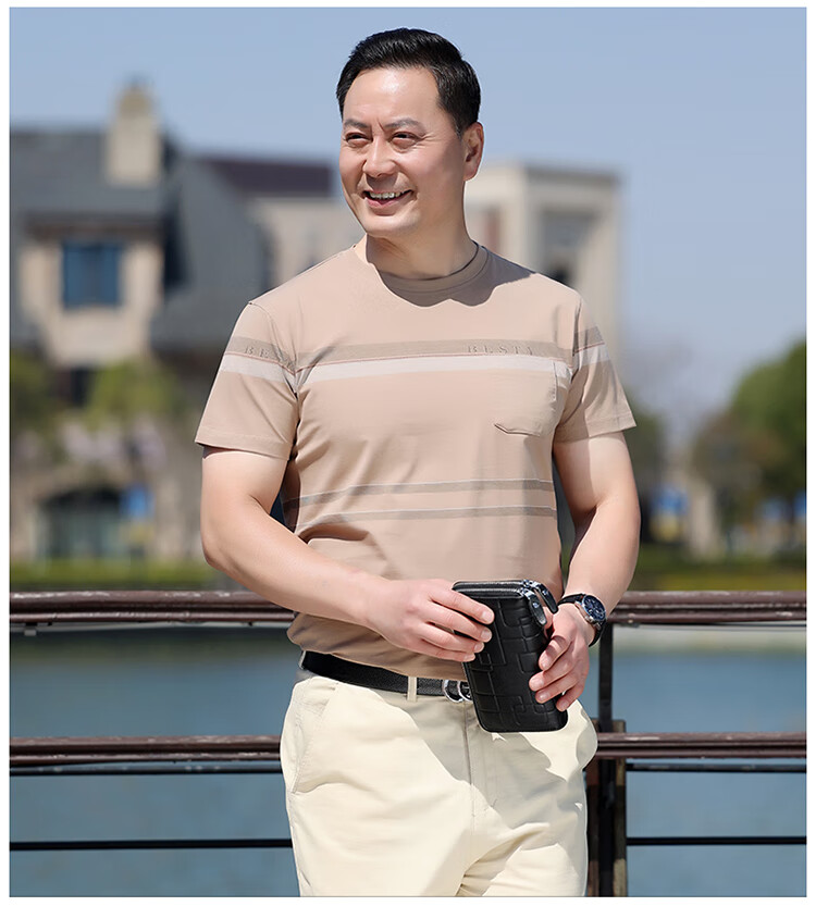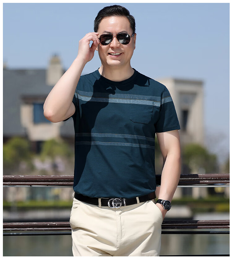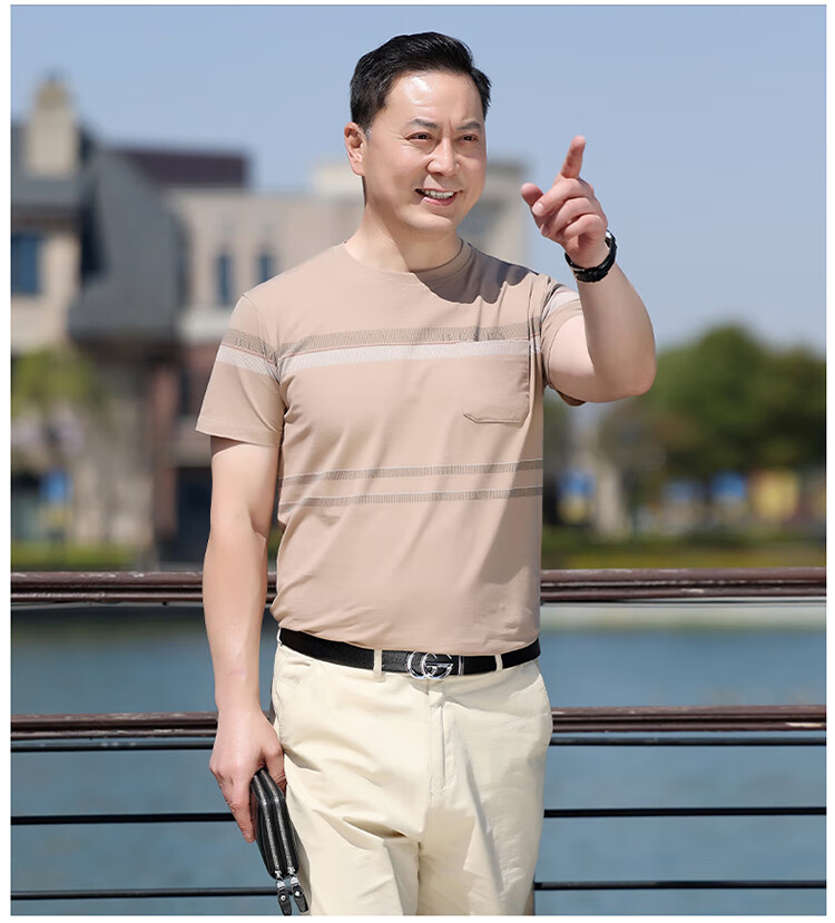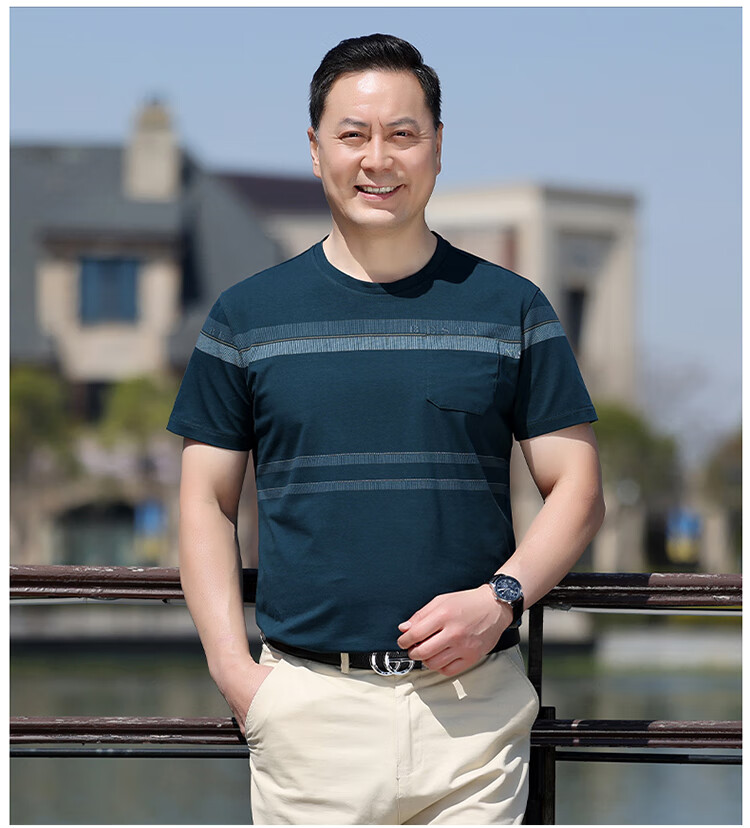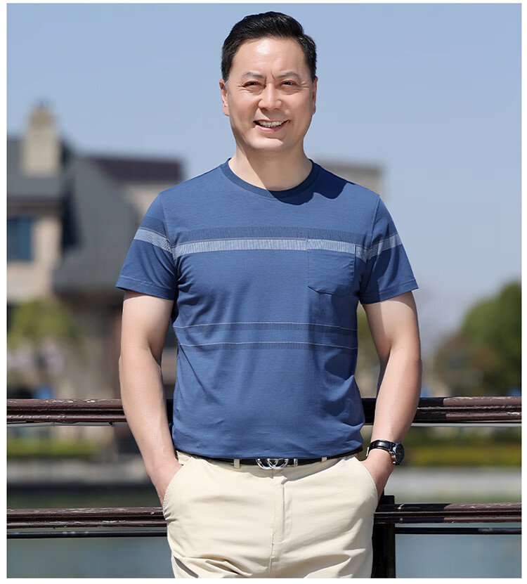 Pierre Cardin dad wear middle-aged men's short-sleeved T-shirt 2025 summer pure cotton round neck old man's shirt middle-aged and elderly men's tops 6625 purple no pocket 165 recommended 120Jin Jin is equal to 0.5 kg or less S