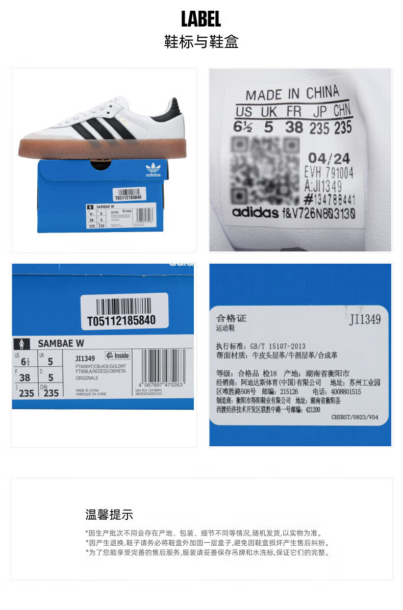 阿迪达斯阿迪达斯三叶草板鞋新款SAMBAE W复古休闲鞋经典低帮运动鞋JI1349 JI1349 38.5
