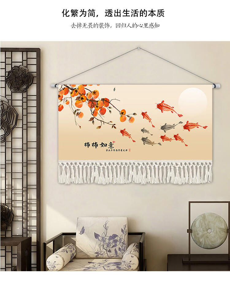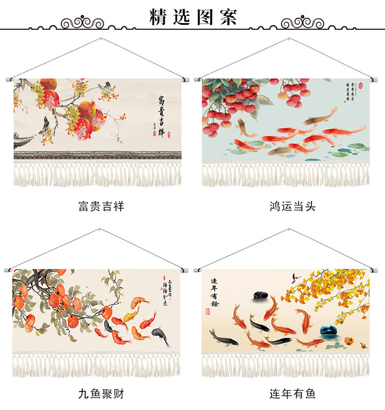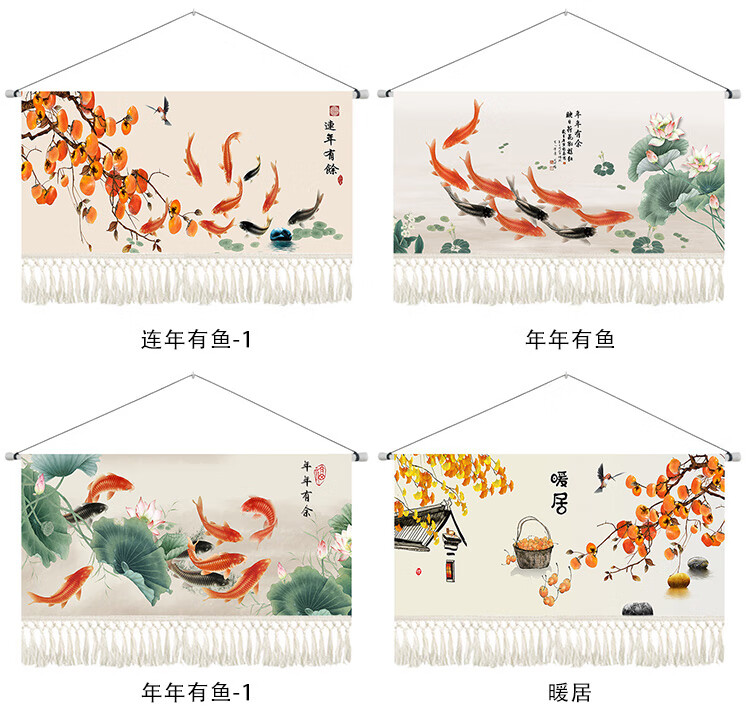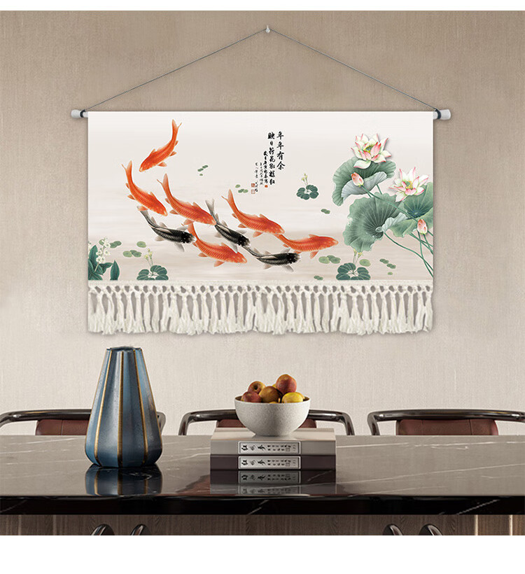 Tapiz de fondo de magnolia de nieve estilo chino tapiz de estilo chino pintura colgante de estilo chino sala de estar sofá arte pintura decorativa salón de té comedor colgante XG151 Nueve peces Ancho 14070 Alto cm