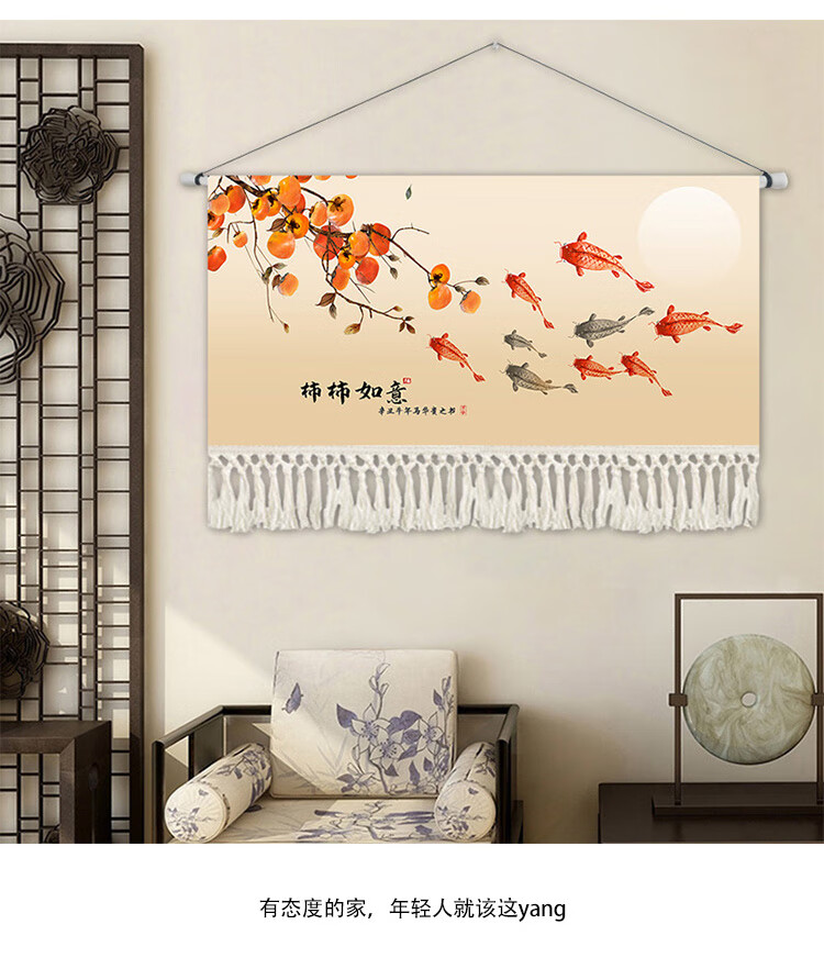 Snow magnolia background tapestry Chinese style Chinese style tapestry Chinese style hanging painting living room sofa art decorative painting tea room dining room hanging XG151 Nine Fish Width 14070 Height cm