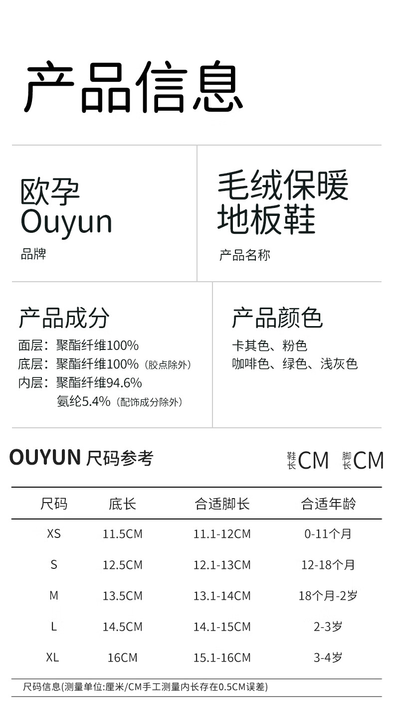欧孕(OUYUN)宝宝鞋袜秋冬婴儿鞋6到12个月软底防滑步前鞋室内居家地板鞋 粉色 11 XS 脚长11-12cm推荐0-11个月