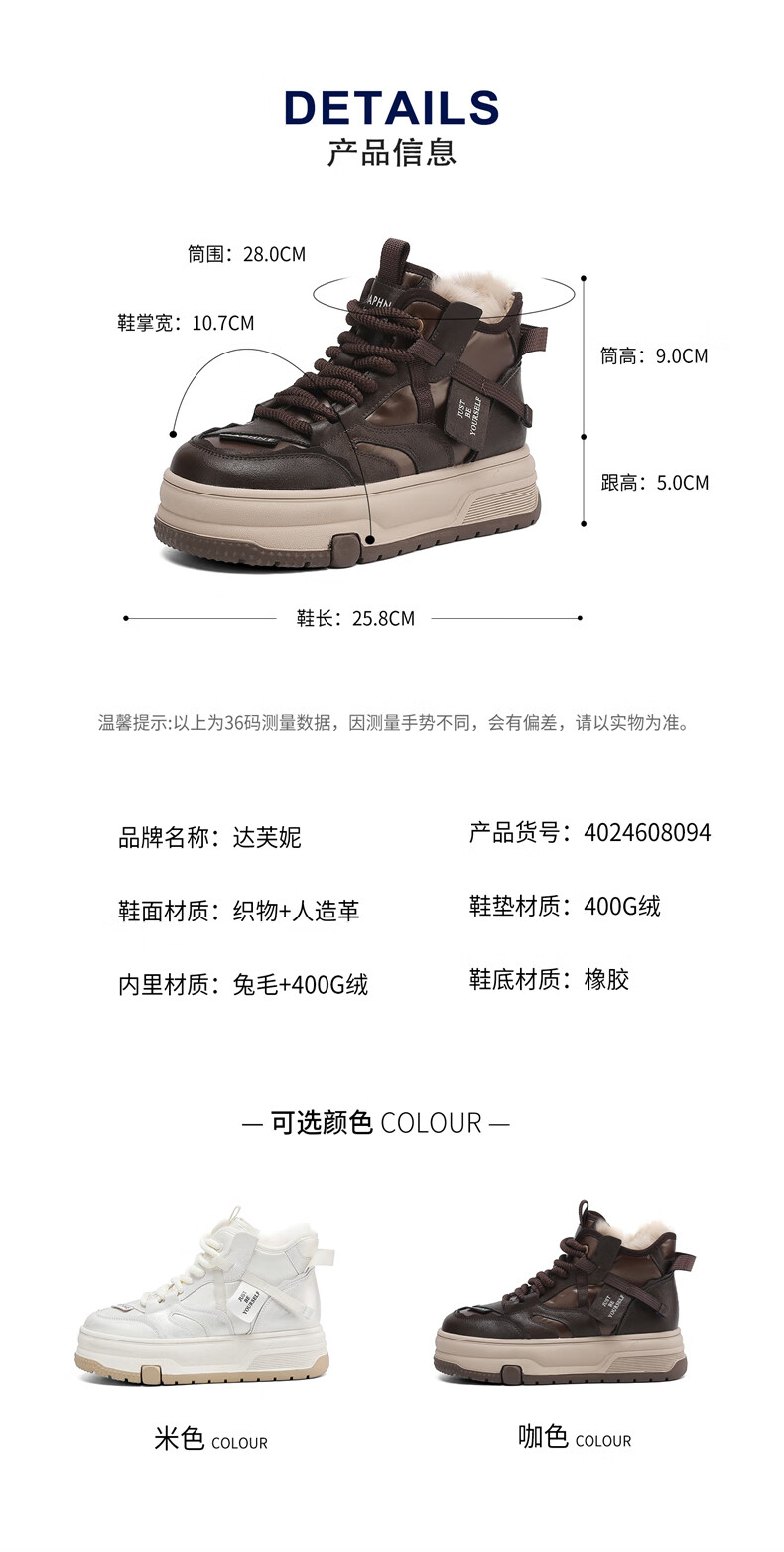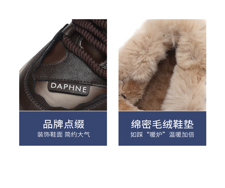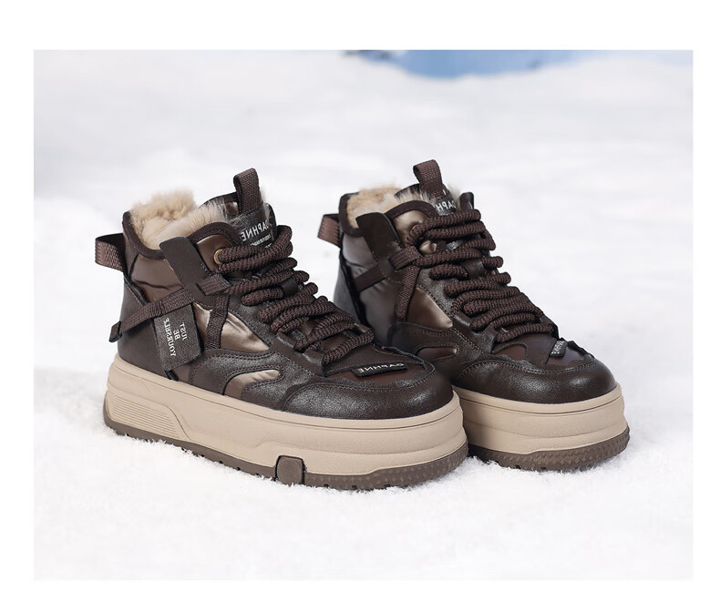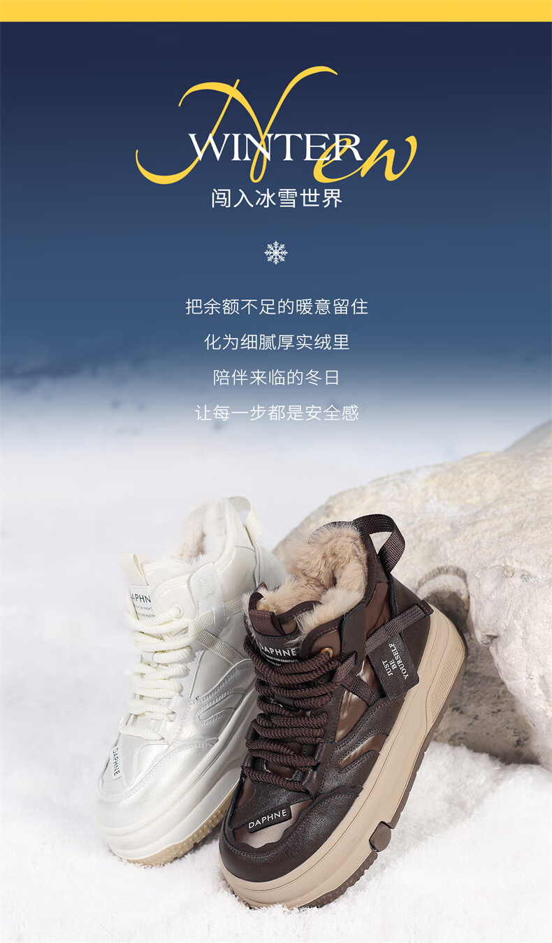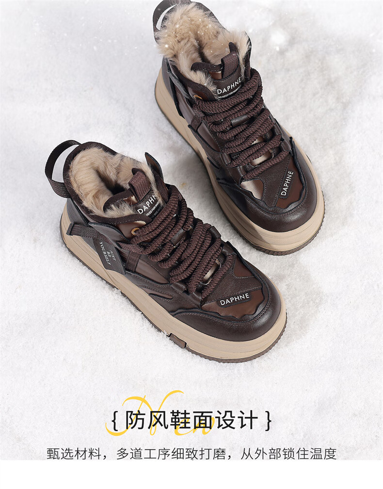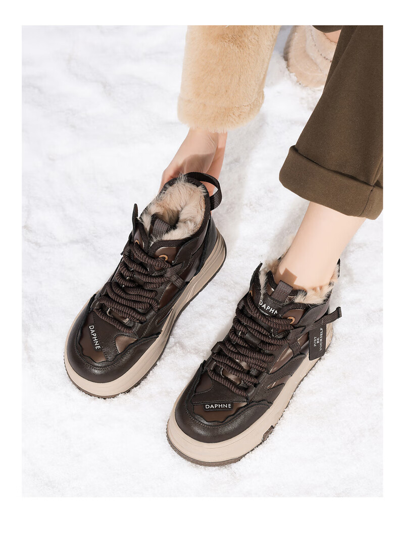 达芙妮雪地靴女鞋2025新款秋冬大棉鞋加绒加厚保暖厚底休闲运动老爹鞋女 咖色 【5.0CM】 37