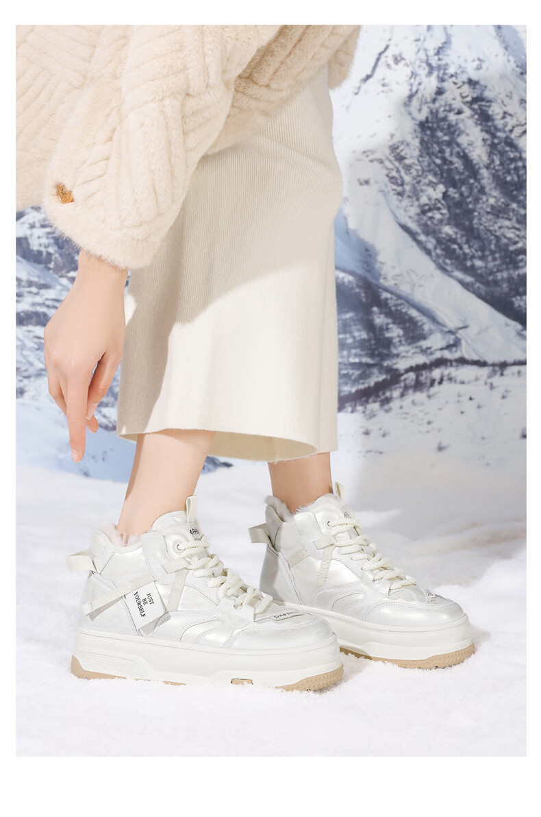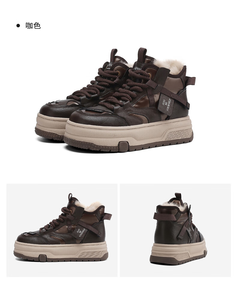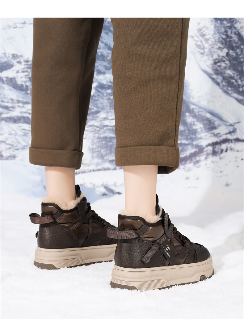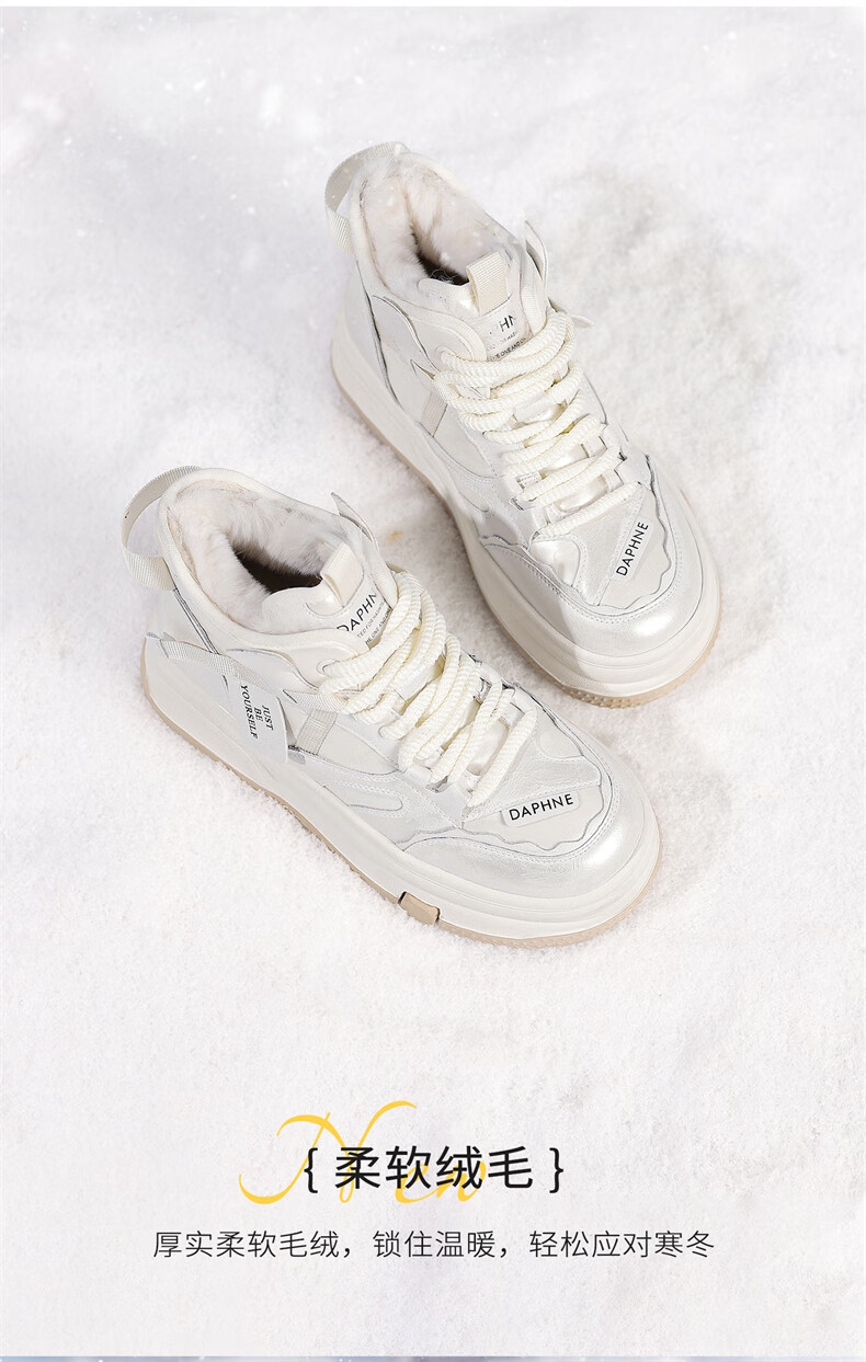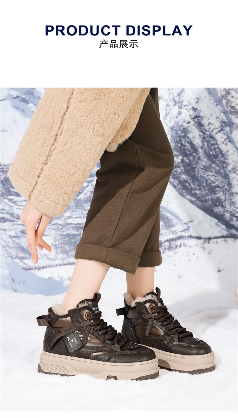达芙妮雪地靴女鞋2025新款秋冬大棉鞋加绒加厚保暖厚底休闲运动老爹鞋女 咖色 【5.0CM】 37