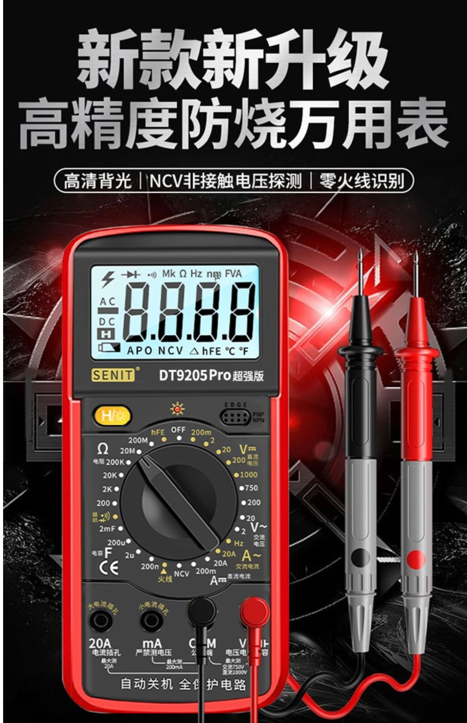 科至途定制新款语音万用表数字高精度电工专用维修全自动智能防烧数显表 DT9205Pro超强版【官方标配】