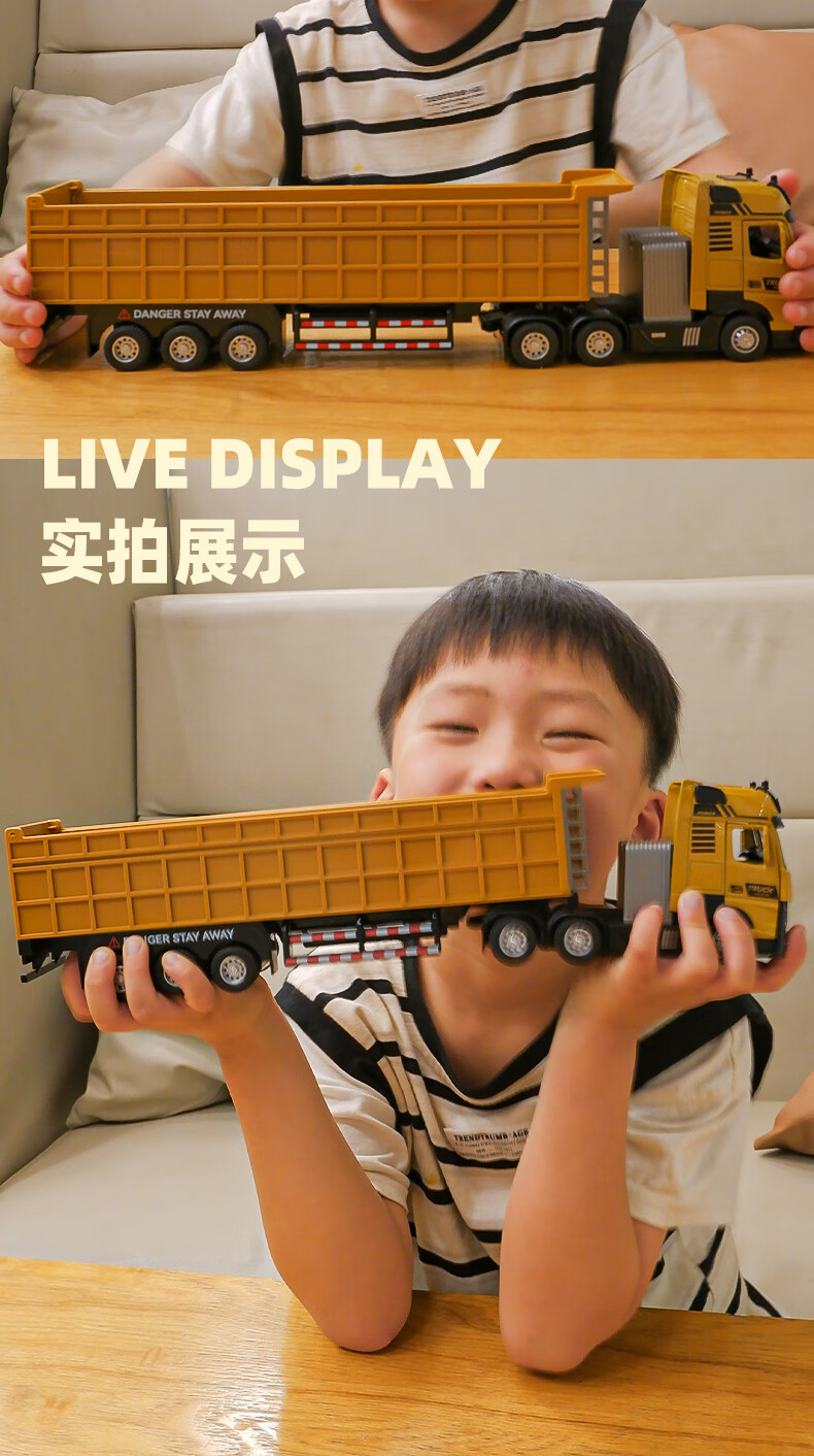 Taoli Nianhua Kinder-Legierung Spielzeugauto Auto großer LKW-Transporter Muldenkipper Sattelauflieger Modell Junge LKW Engineering Fahrzeug V Modell 33CM10 Rad Container Transport LKW rot