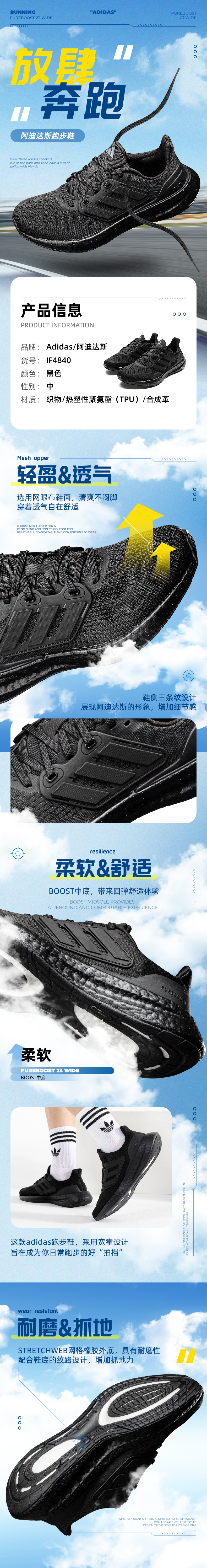 阿迪达斯(adidas)官方男鞋女鞋 秋季新款运动鞋Pure Boost网面透气轻便缓震跑步鞋 IF4839/黑白/网面透气 (内长220mm) 36