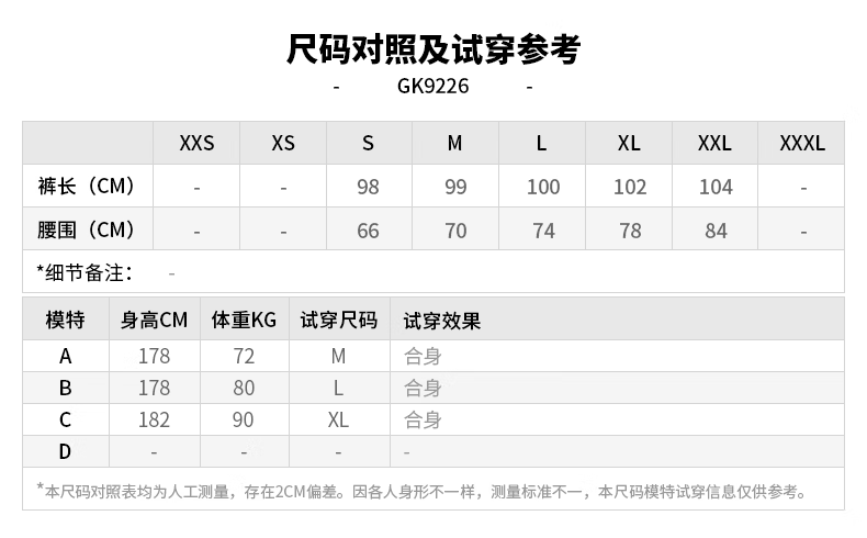 Outseam (cm) 99 cm 101.5 cm 104 cm 106.5 cm 109 cm
