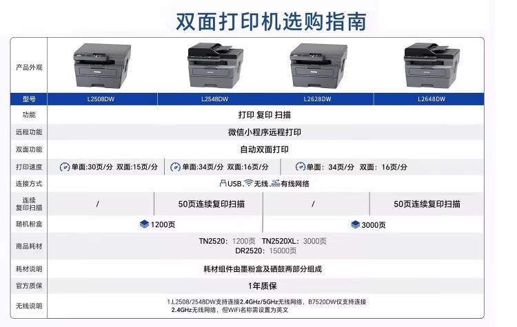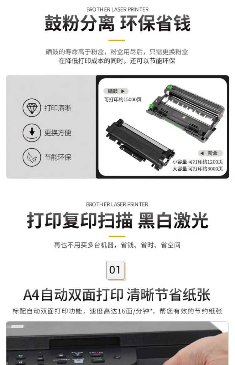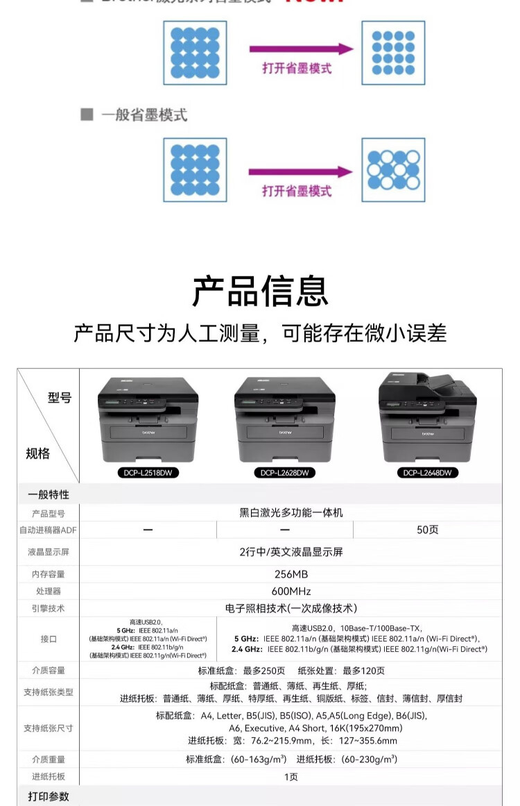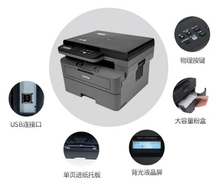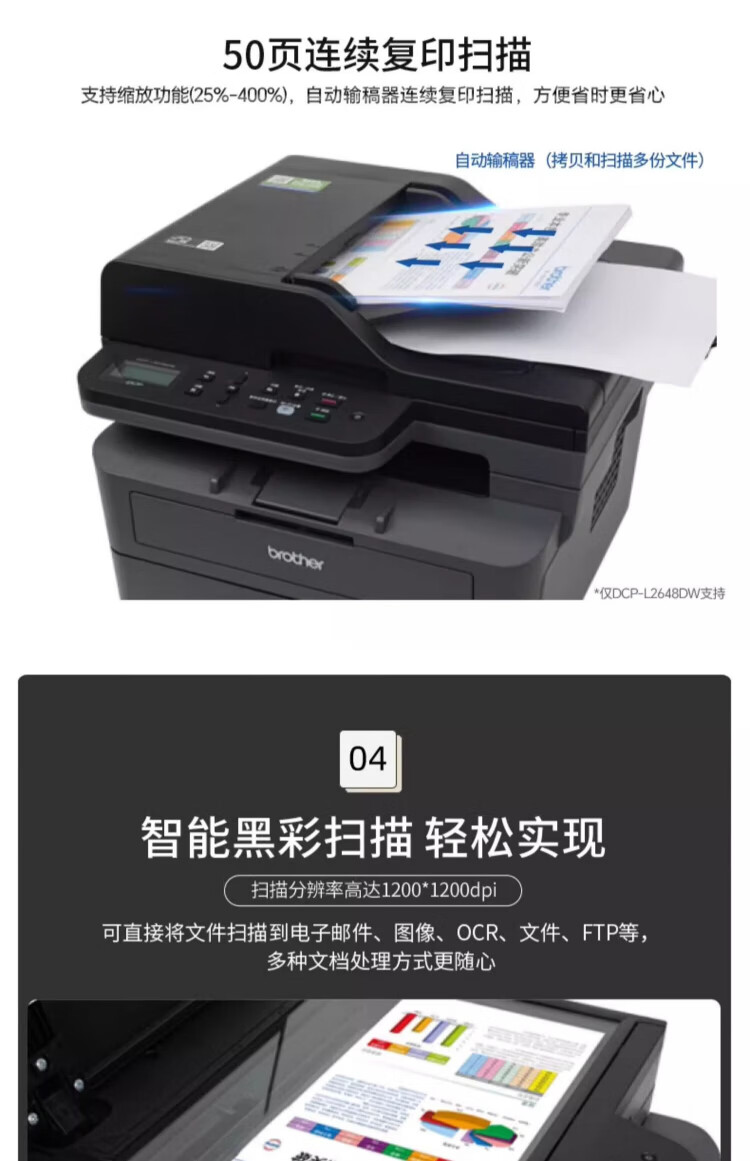 兄弟(brother)DCP-L2628DW/L2648DW/L2518激光自动双面打印机连续复印扫描一体机多功能无线手机家用办公 DCP-L2628DW【自动双面+无线远程+有线】 套餐三 享2年保修【约打印48000页/可加粉】
