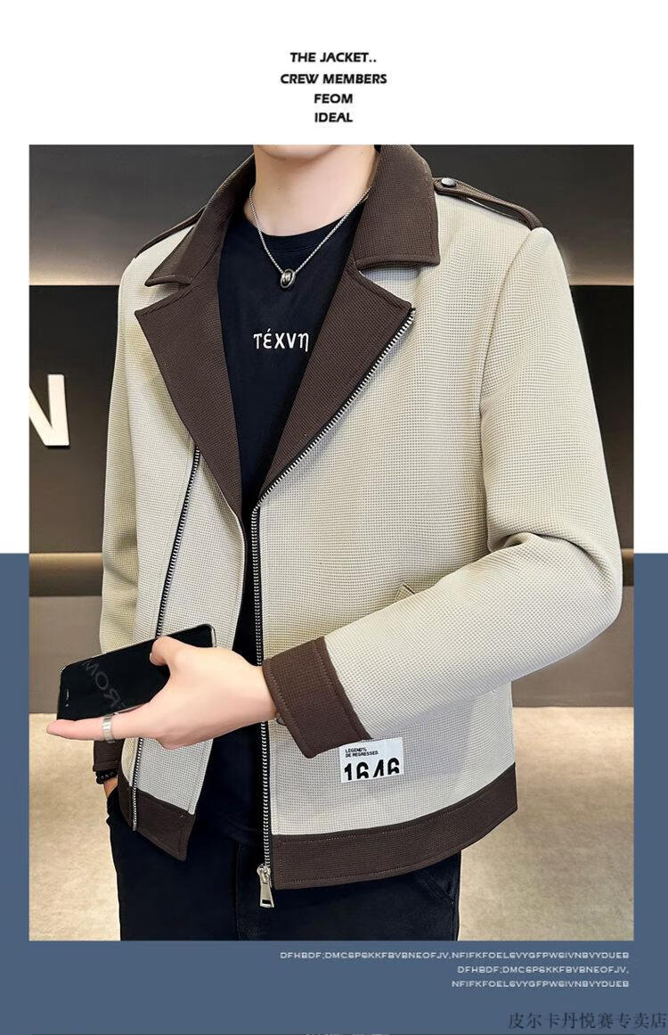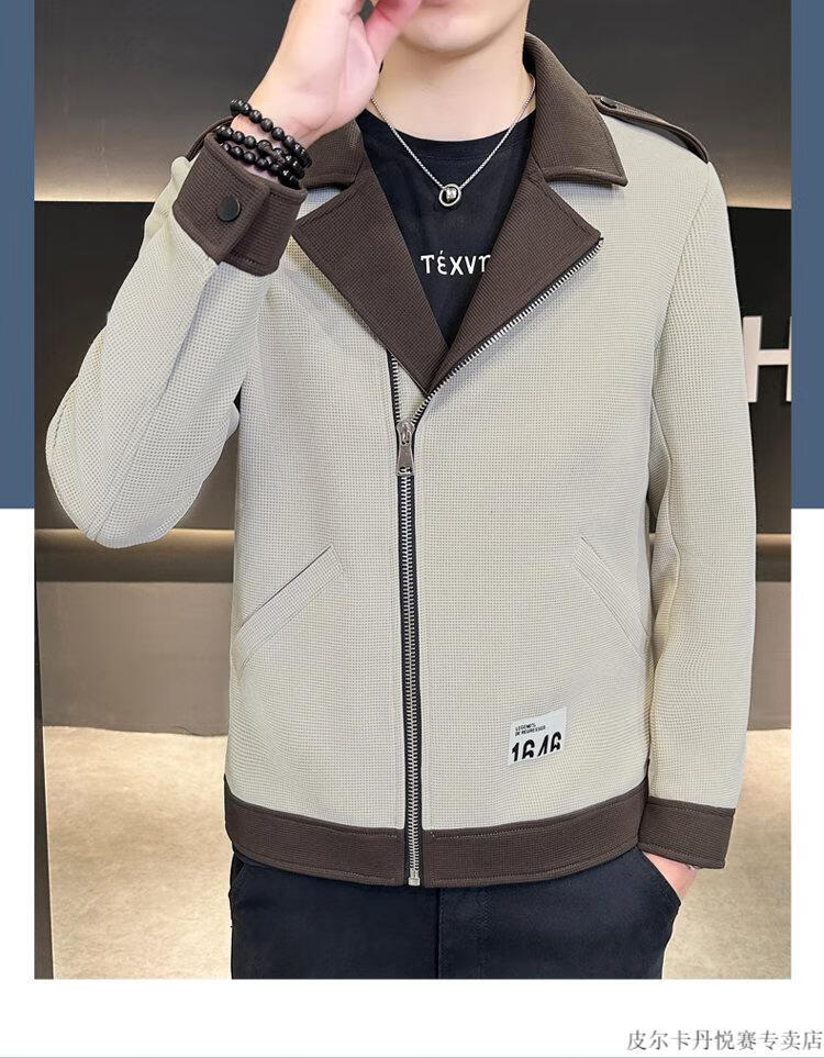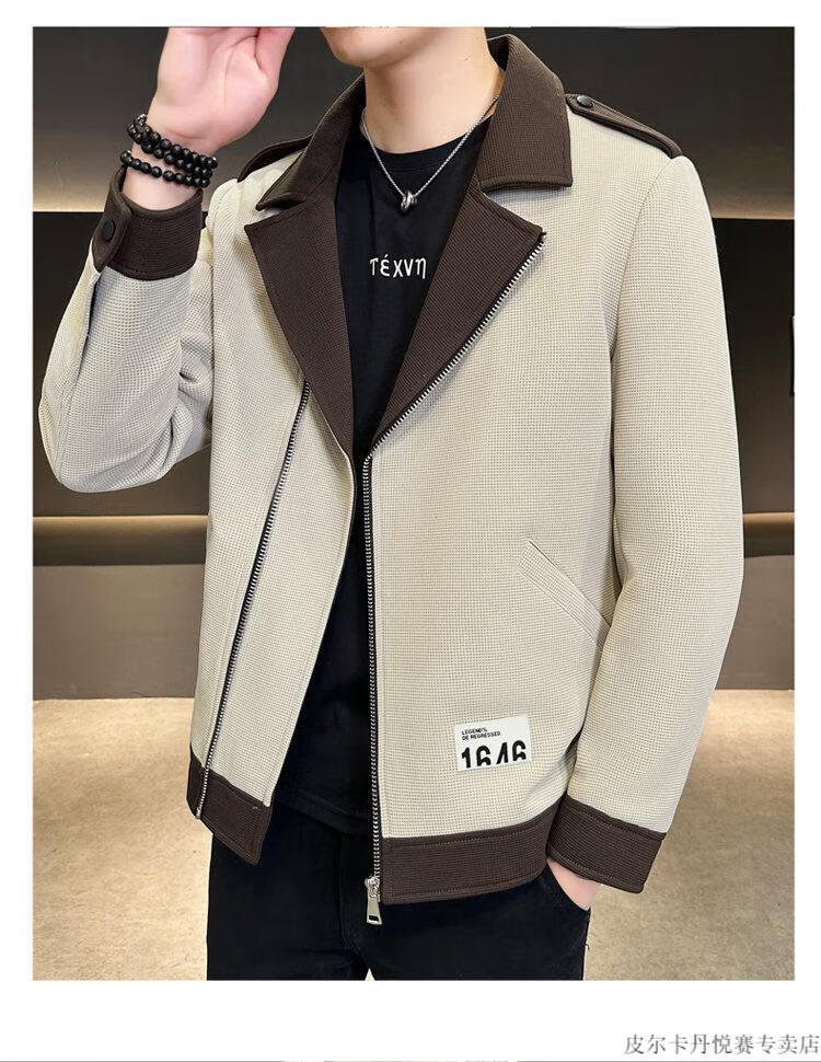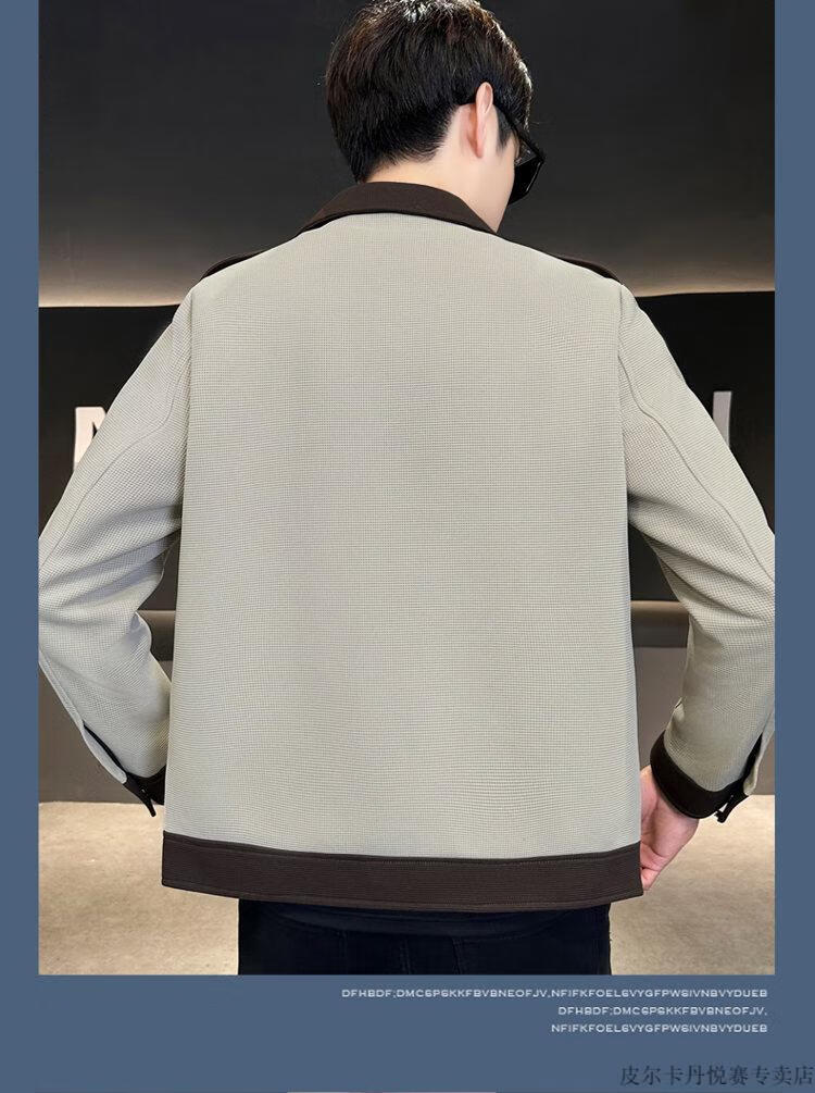 Pierre Cardin British yuppie men's suit jacket short windbreaker design sense casual suit spring and autumn men's jacket beige M
