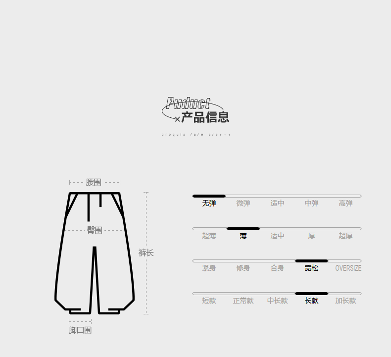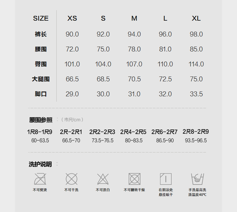 Outseam (cm) 99 cm 101.5 cm 104 cm 106.5 cm 109 cm