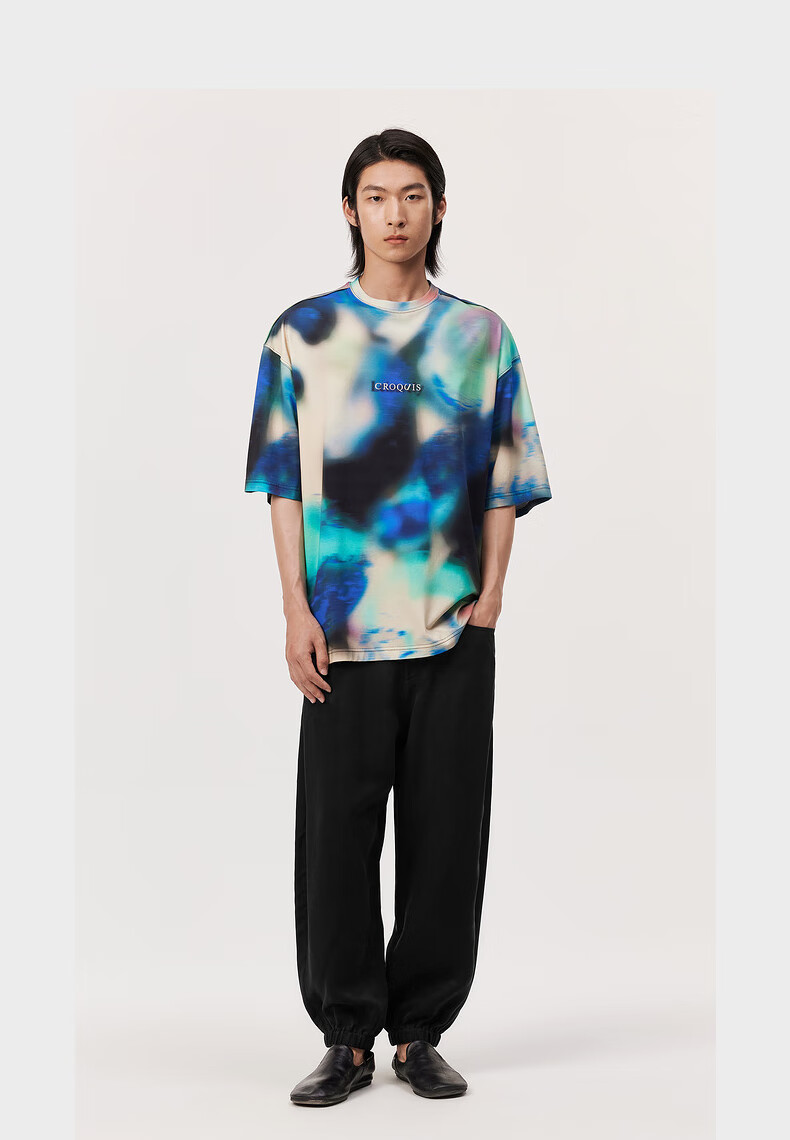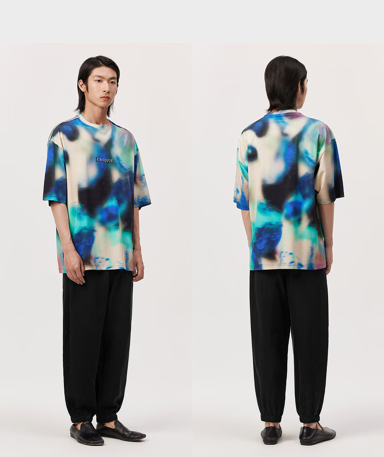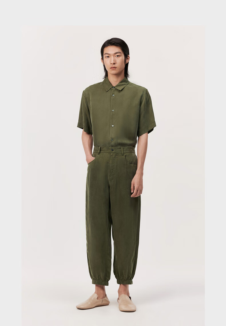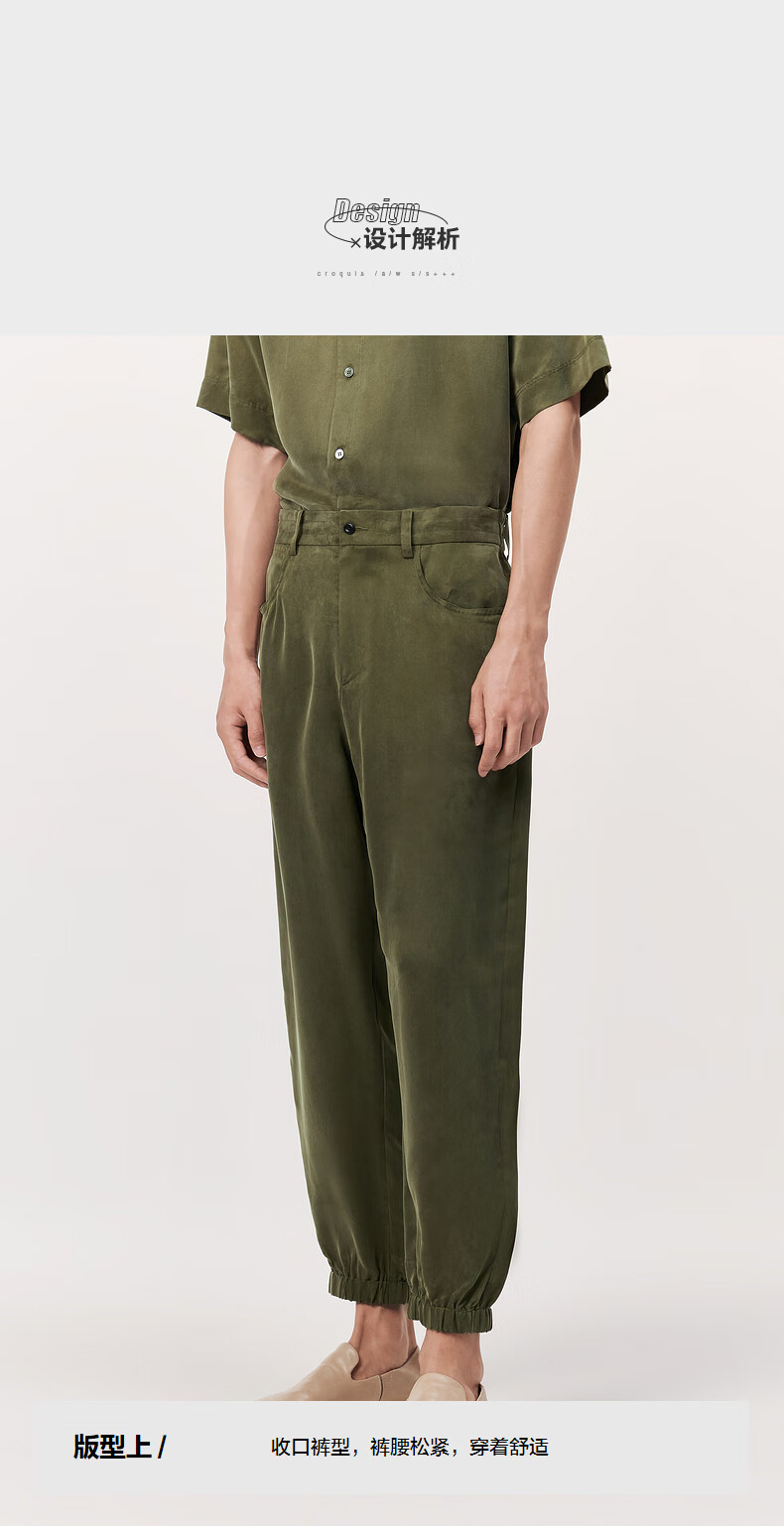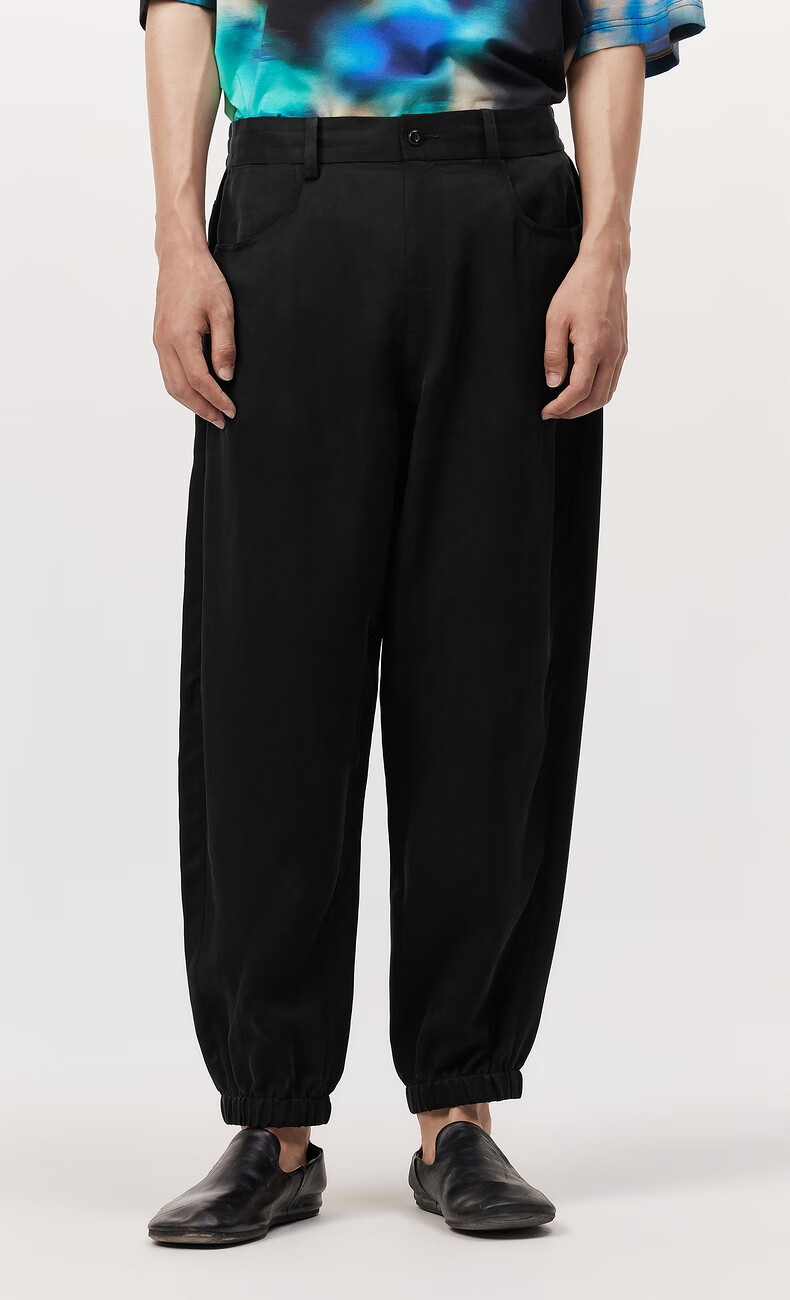 速写男装夏季新款休闲裤九分阔腿舒适抽绳时尚前卫潮流束脚弯刀裤 001本黑 M