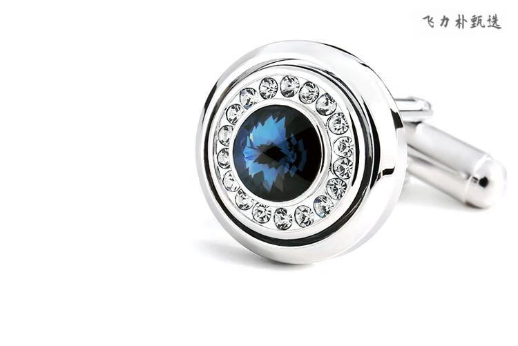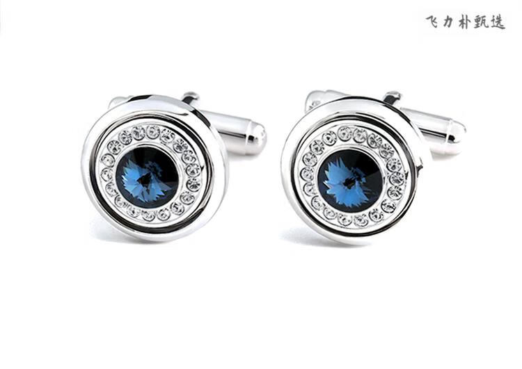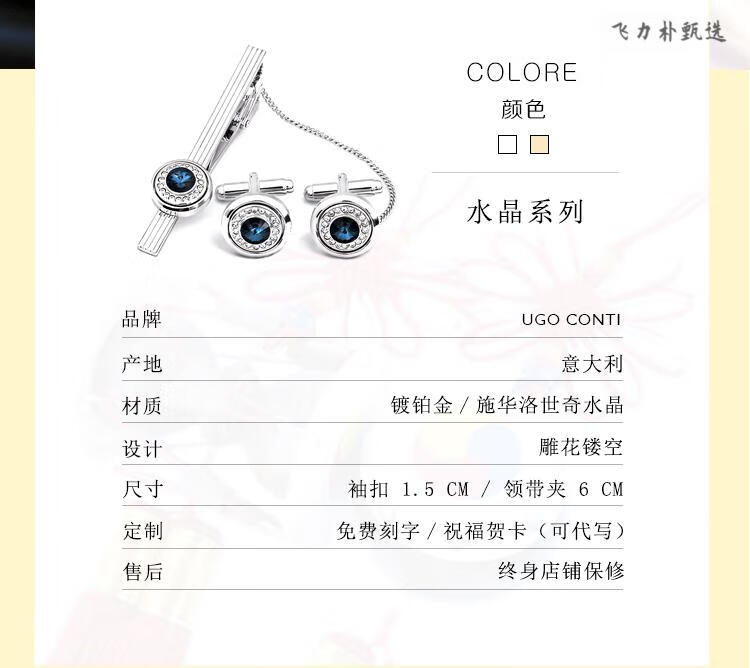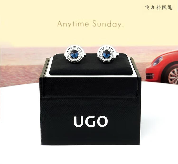 UGO CONTI Boutons de manchette en cristal de mode italienne pour hommes Boutons de manchette de chemise de costume personnalisés de luxe léger français Boutons de manchette simples en argent (coffret cadeau prêt en stock)
