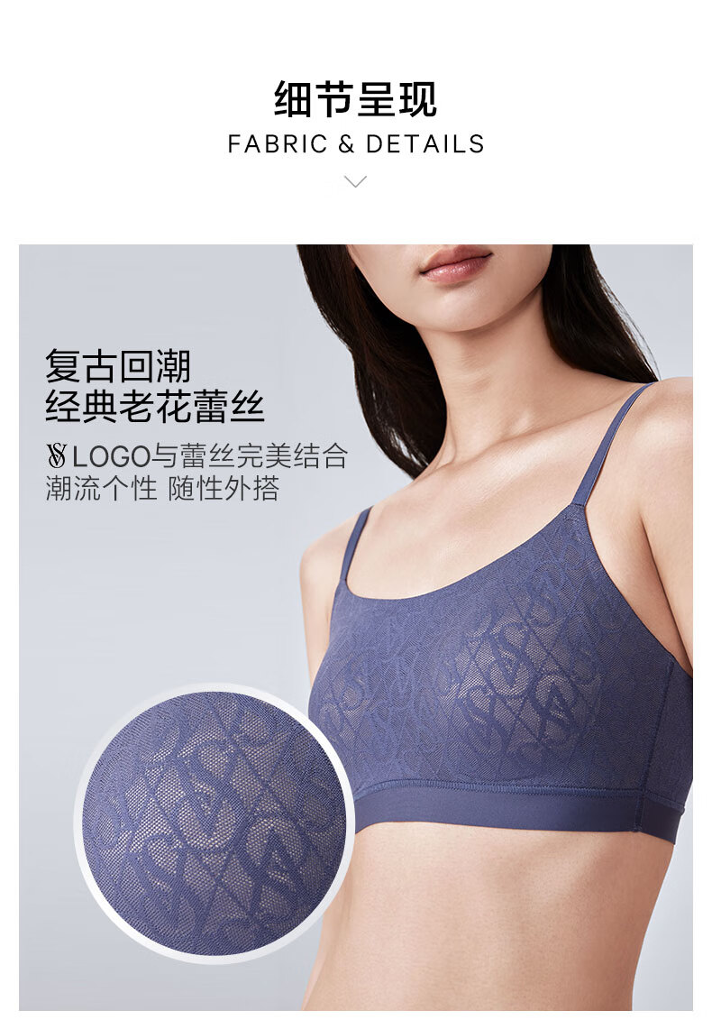 Victoria's Secret (Victoria's Secret) 5|Victoria's Secret Classic LOGO Presbyopic Lace Back Cup Vest BH Damen Dünnschnitt 54A2 Classic Black-6630 XS