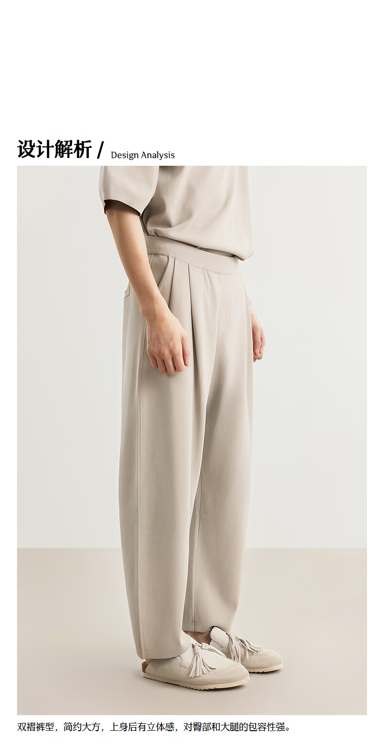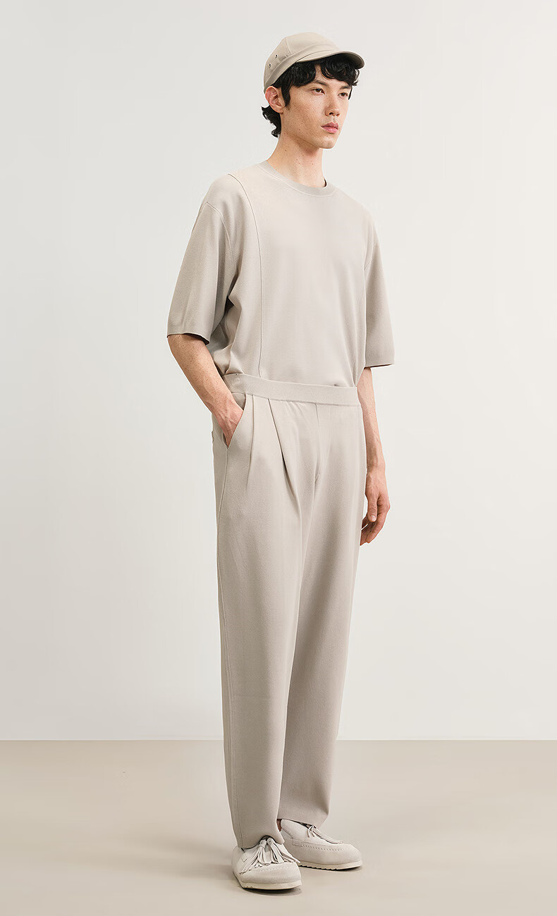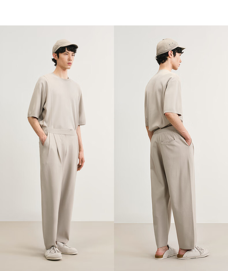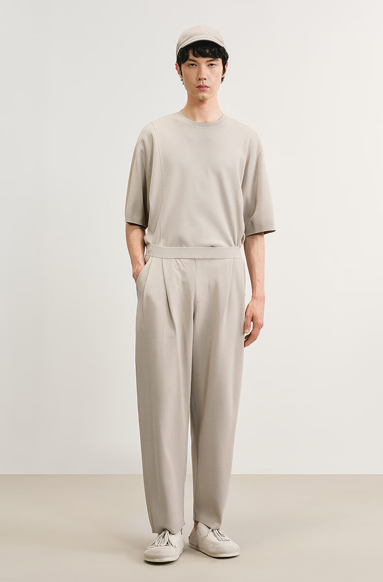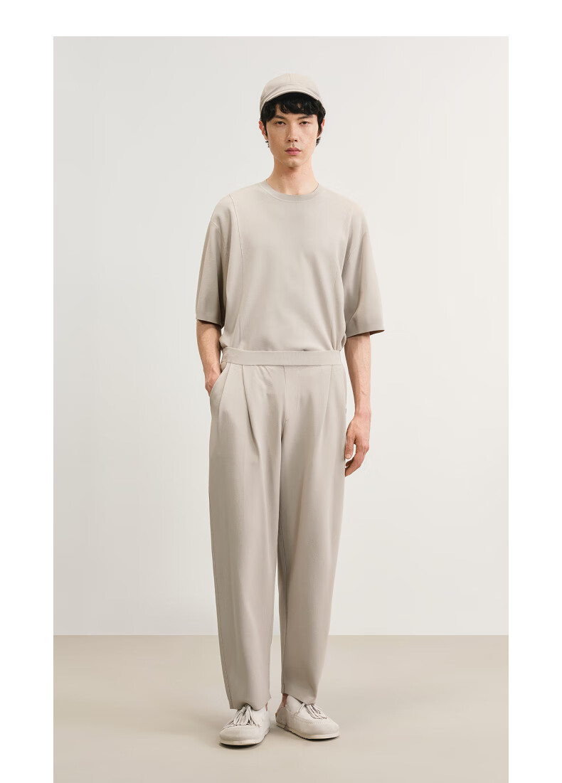 速写男装2025春新品日常休闲直筒合身长裤罗纹横机裤双褶9P2E12200 047米灰 M