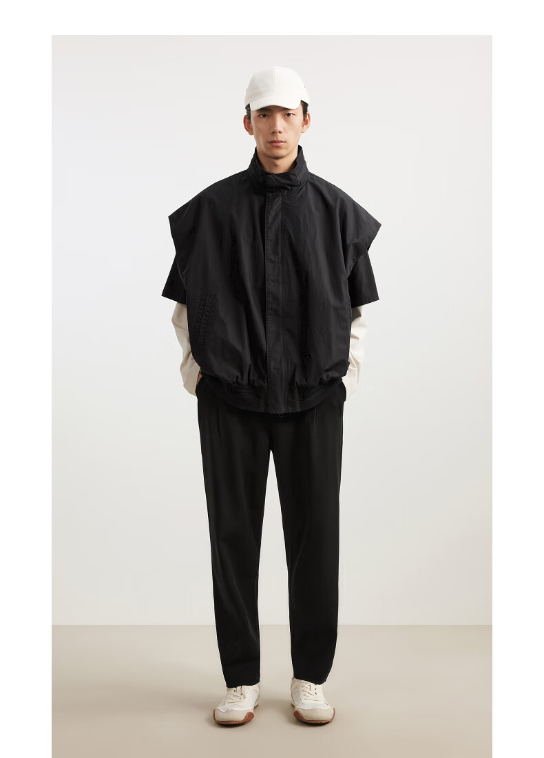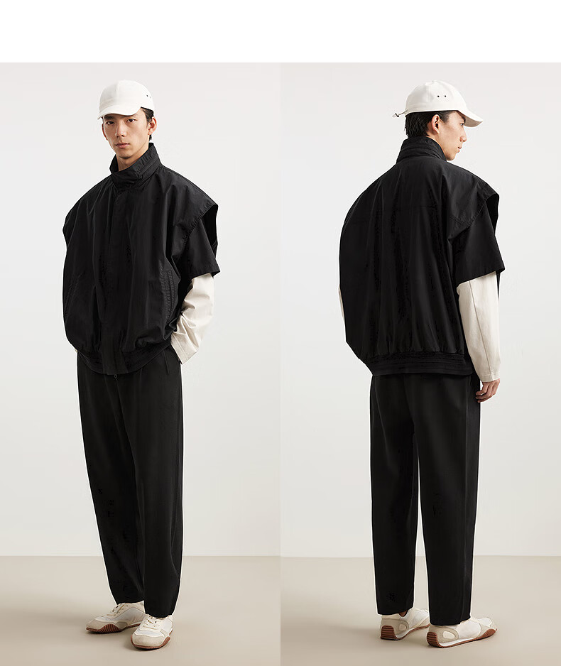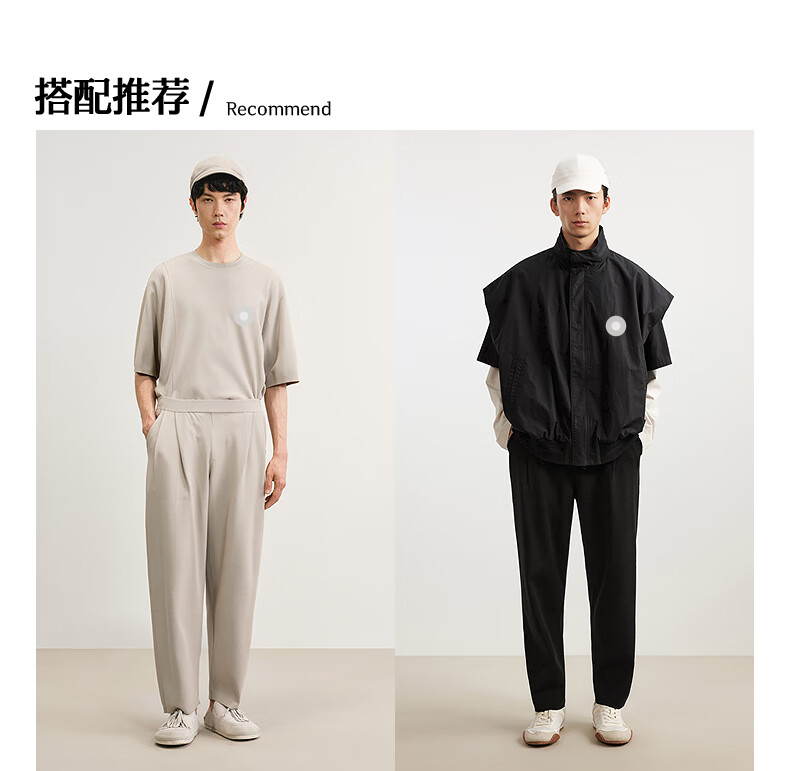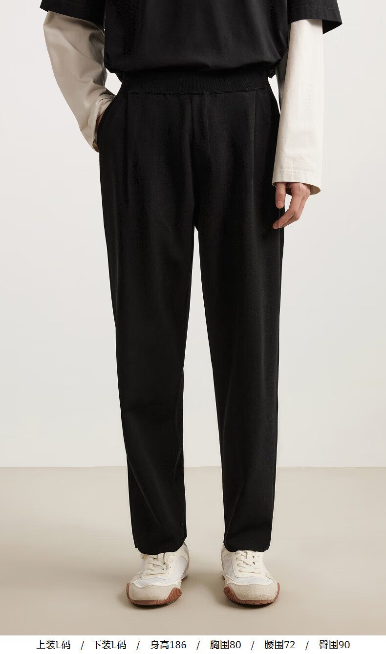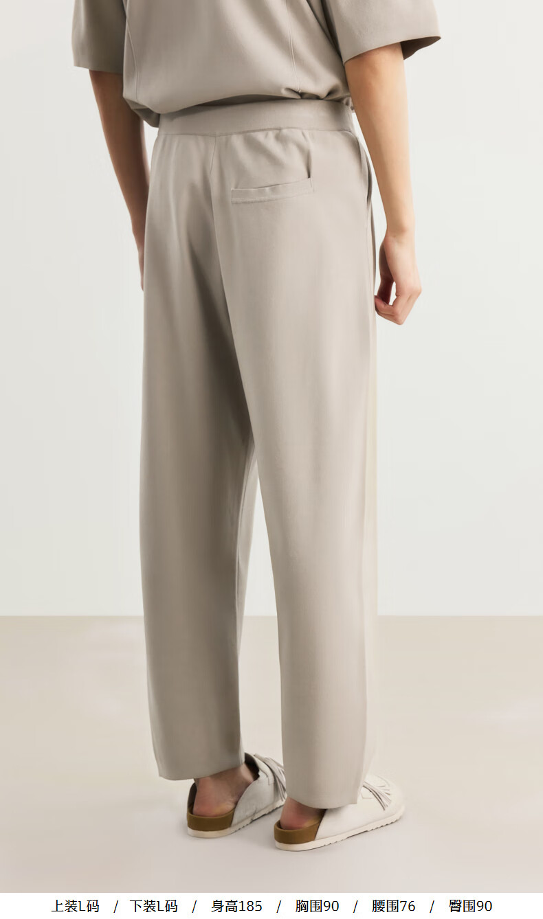 速写男装2025春新品日常休闲直筒合身长裤罗纹横机裤双褶9P2E12200 047米灰 M