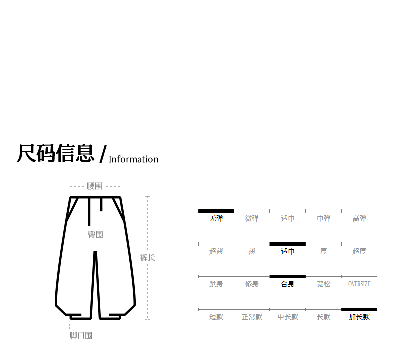 Outseam (cm) 99 cm 101.5 cm 104 cm 106.5 cm 109 cm