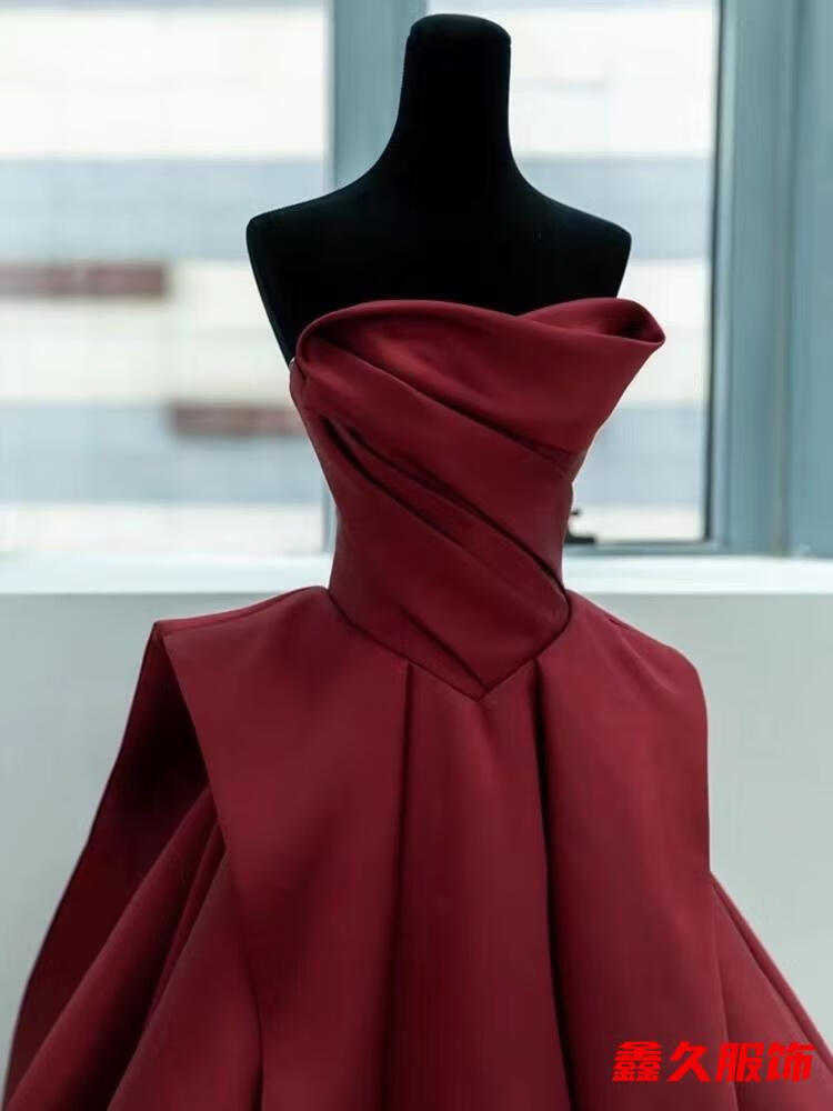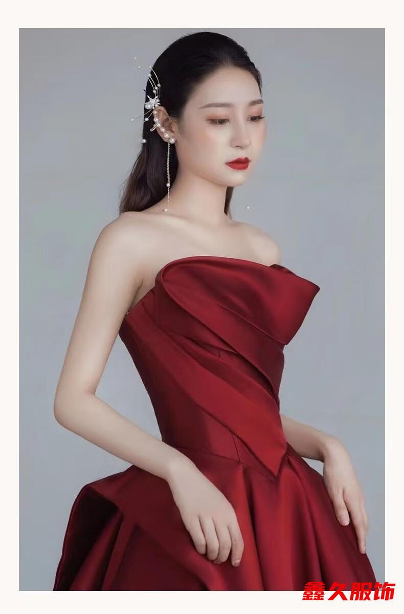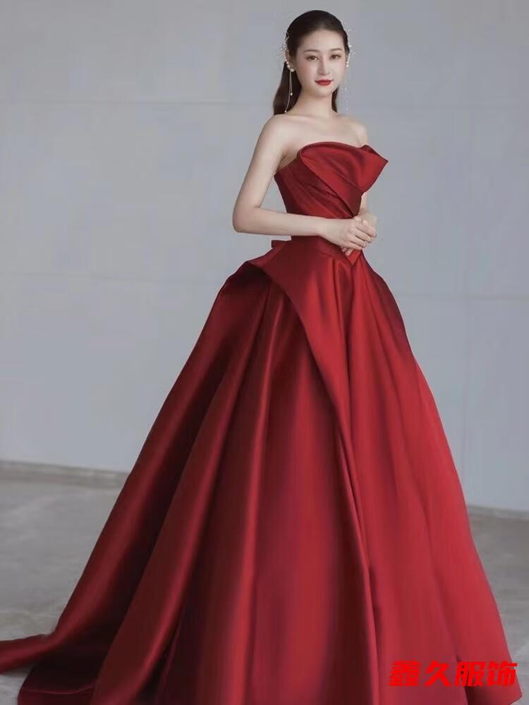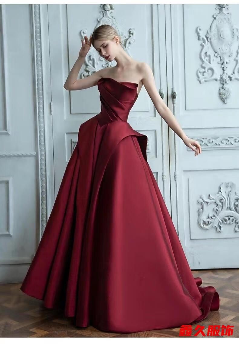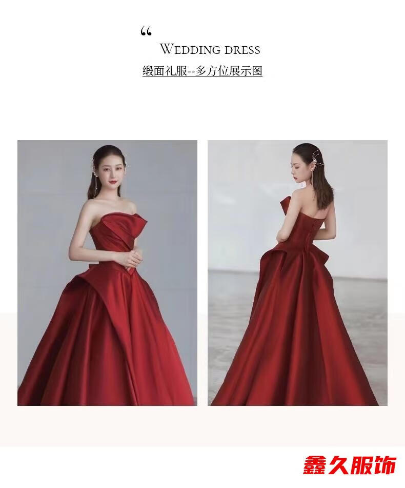 Mei Anjia burgundy bridal toast dress new ladylike temperament tube top wedding dress slim home engagement evening dress for women burgundy L 170