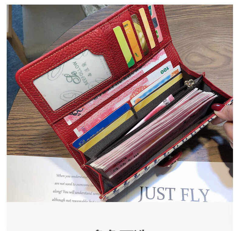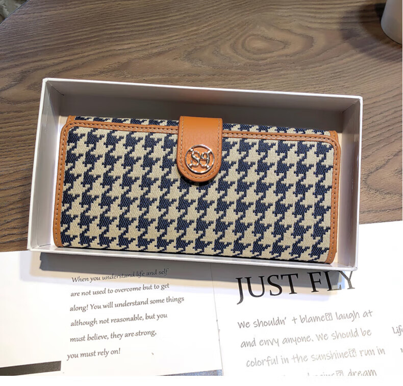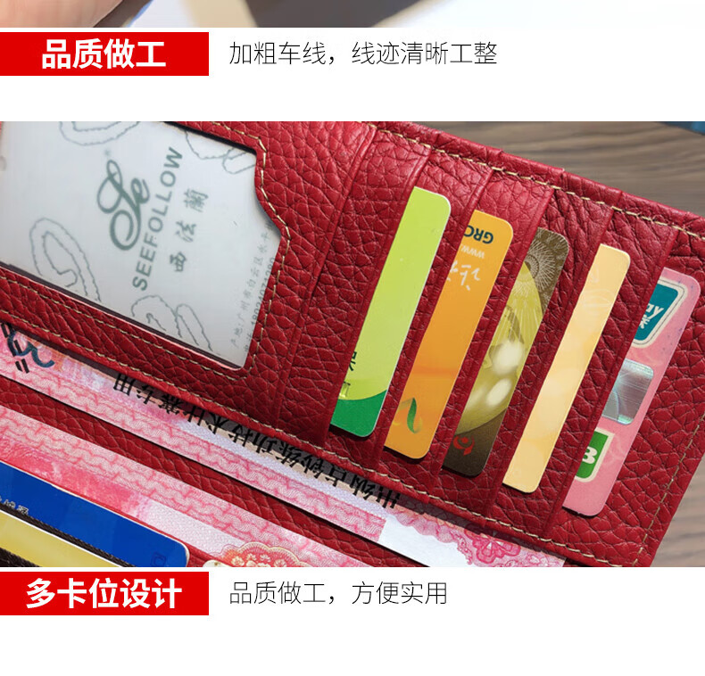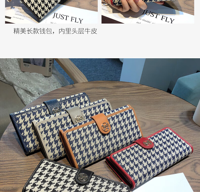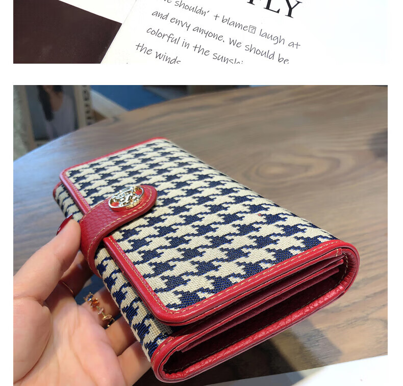 Marca de lujo Kangaroo Cartera larga ligera de estilo coreano para teléfono móvil, tarjetero de pata de gallo con bolso de mano de piel auténtica para mujer, negro - primera capa de piel de vacuno en el interior