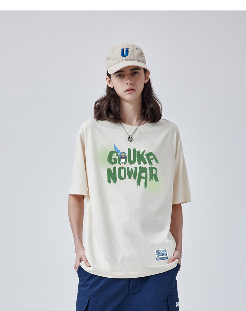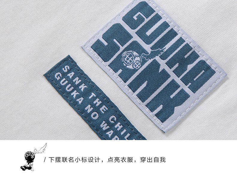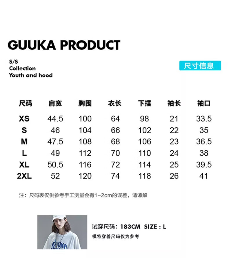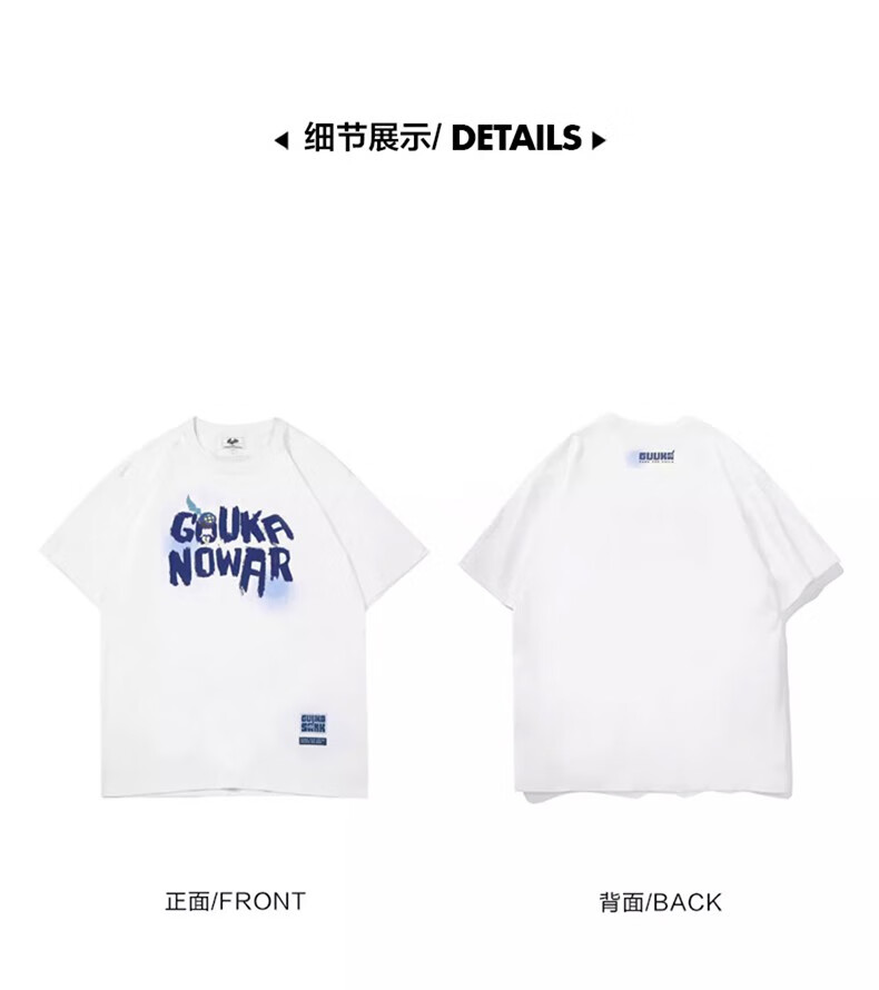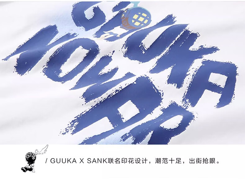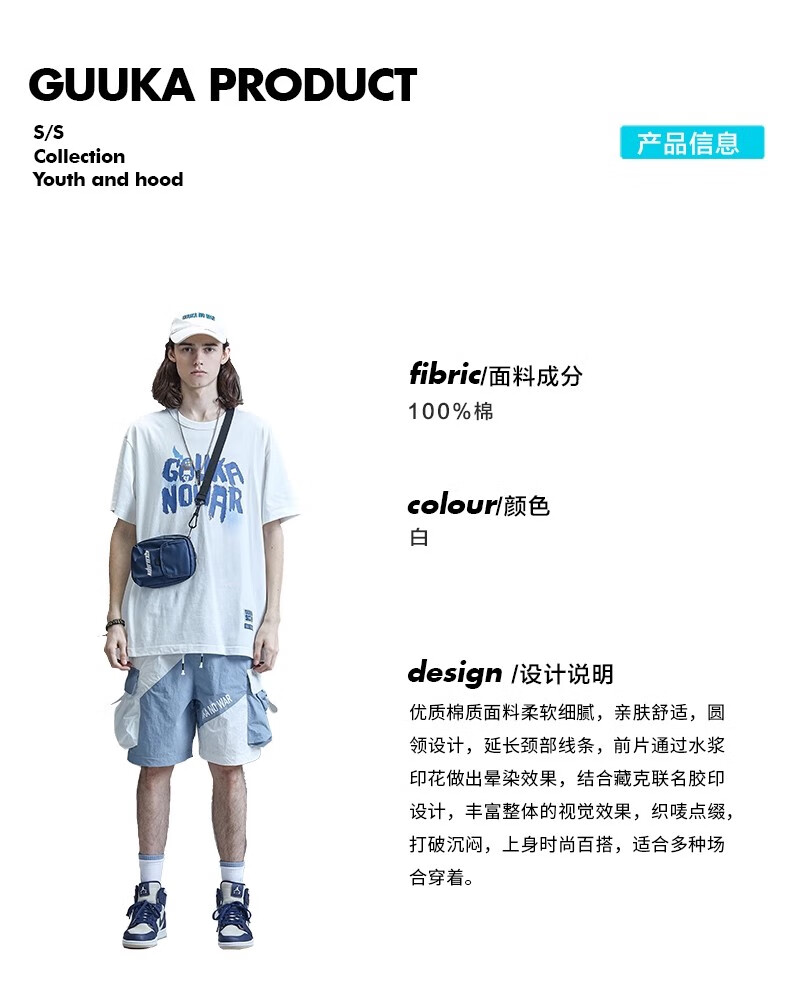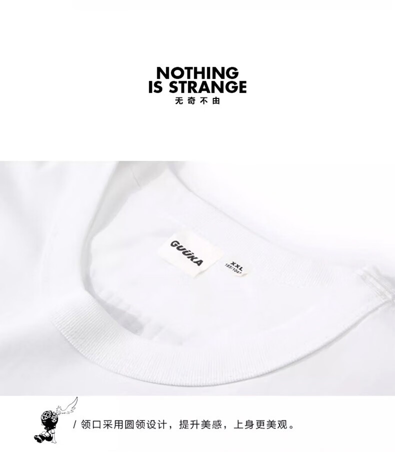 古由卡(GUUKA)&SANK联名白色短袖T恤男潮牌刘宇嘻哈纯棉运动半袖T宽松 白色f3887 XXS xs