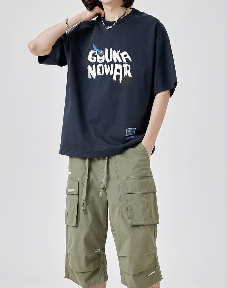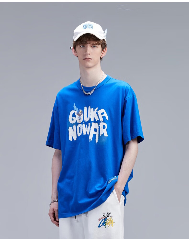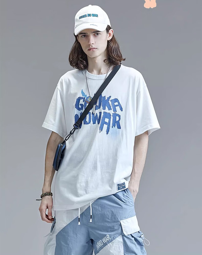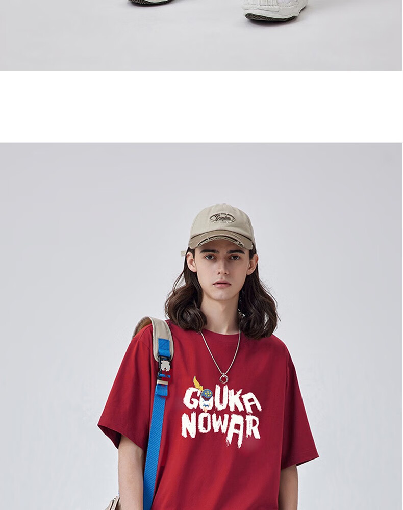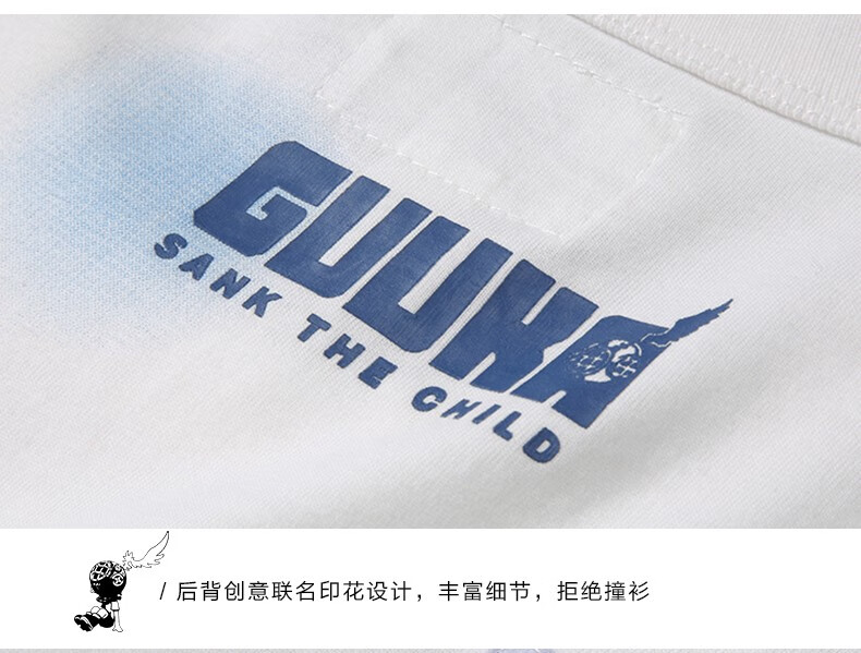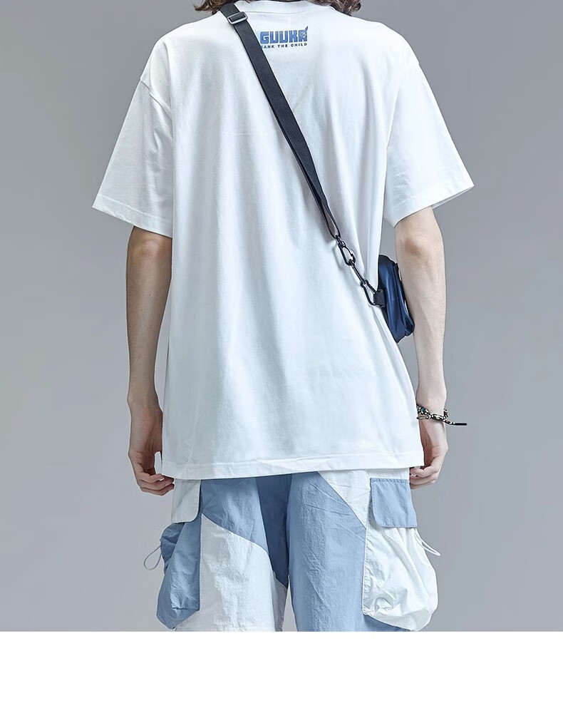 古由卡(GUUKA)&SANK联名白色短袖T恤男潮牌刘宇嘻哈纯棉运动半袖T宽松 白色f3887 XXS xs