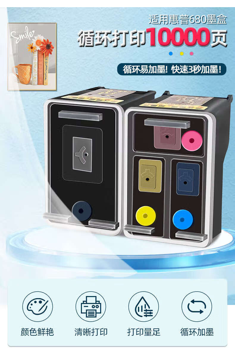HP680 ink cartridge can be refilled with ink, suitable for HP 2138 3776 1118 2676 3636 3638 printer, can be refilled with ink 680 ink cartridge black/2000 pages