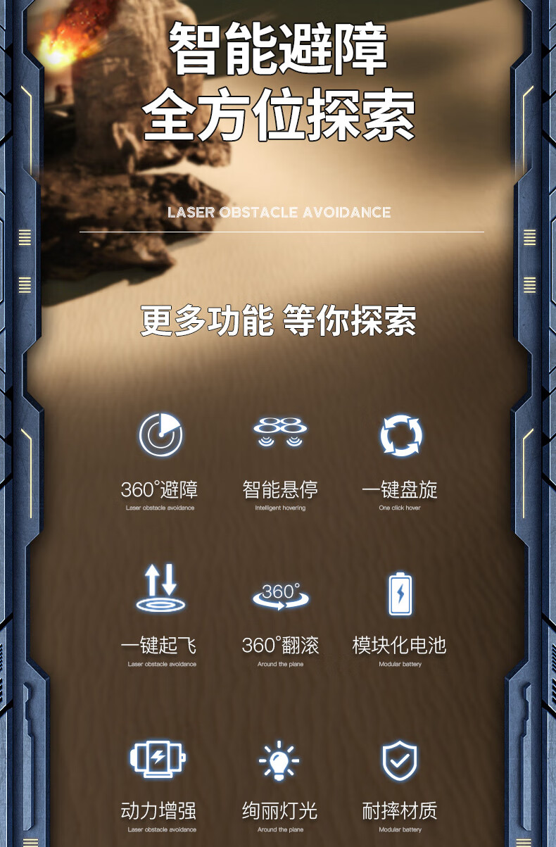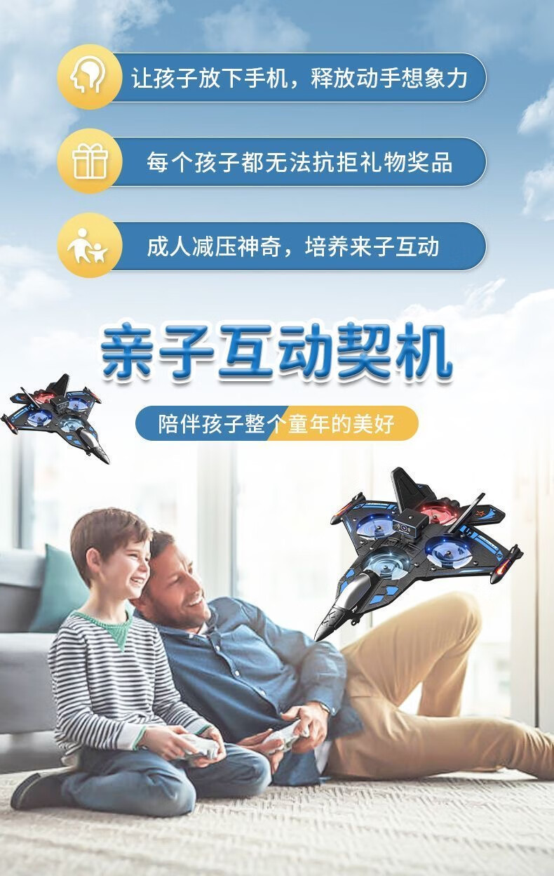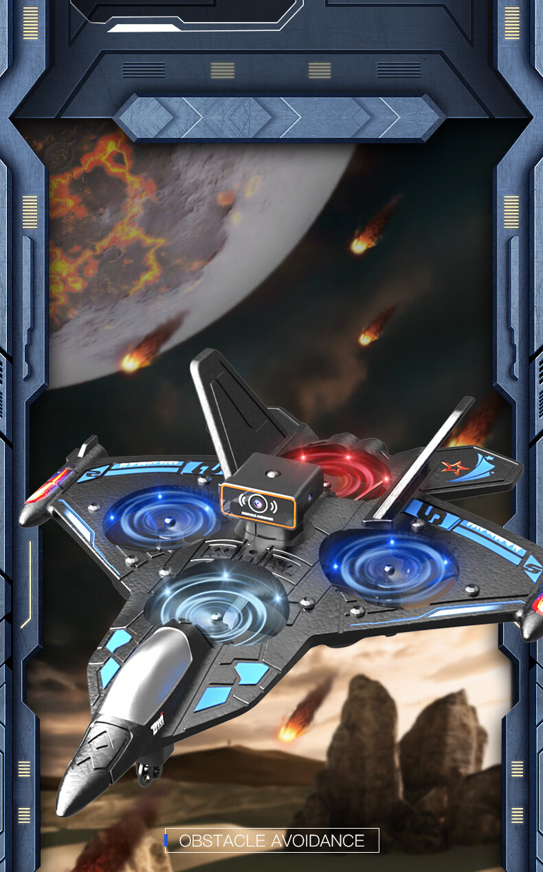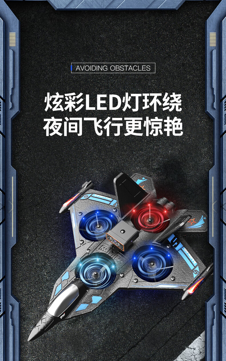 Dwi遥控飞机战斗滑翔机泡沫无刷无人机航拍儿童四旋翼航模男孩玩具 30分钟续航双控【感应避障】蓝 双电【定高+翻滚+防撞】