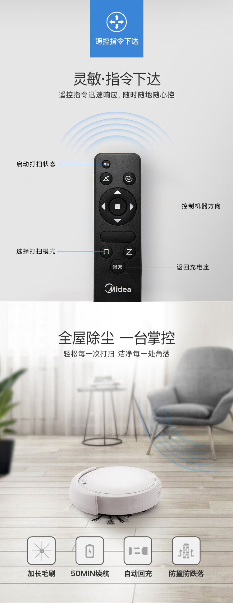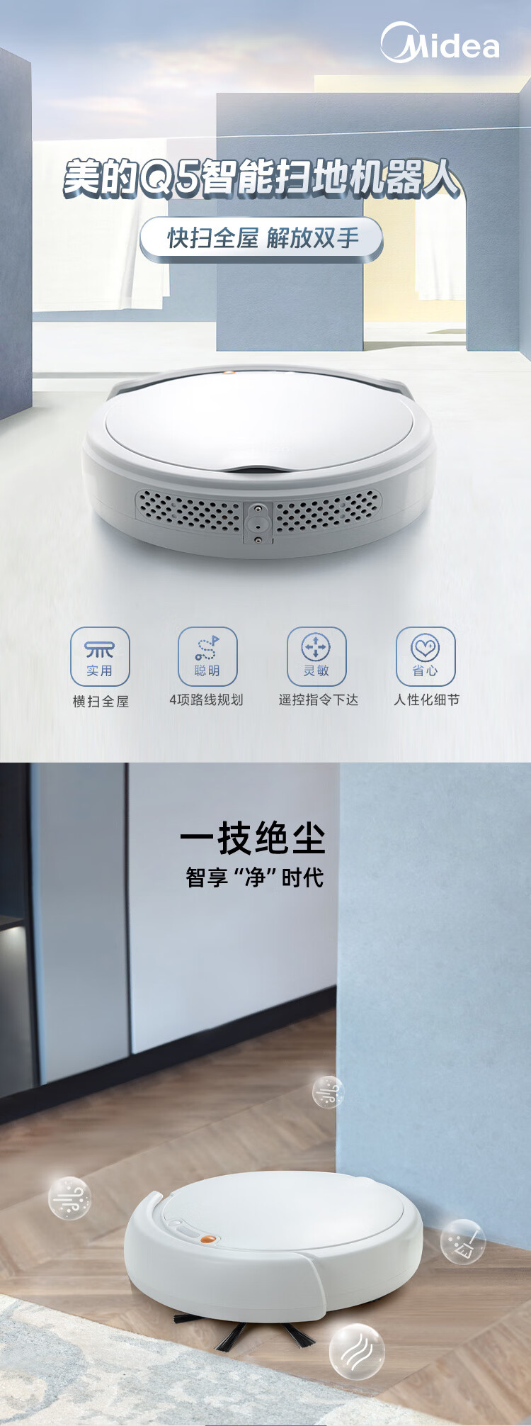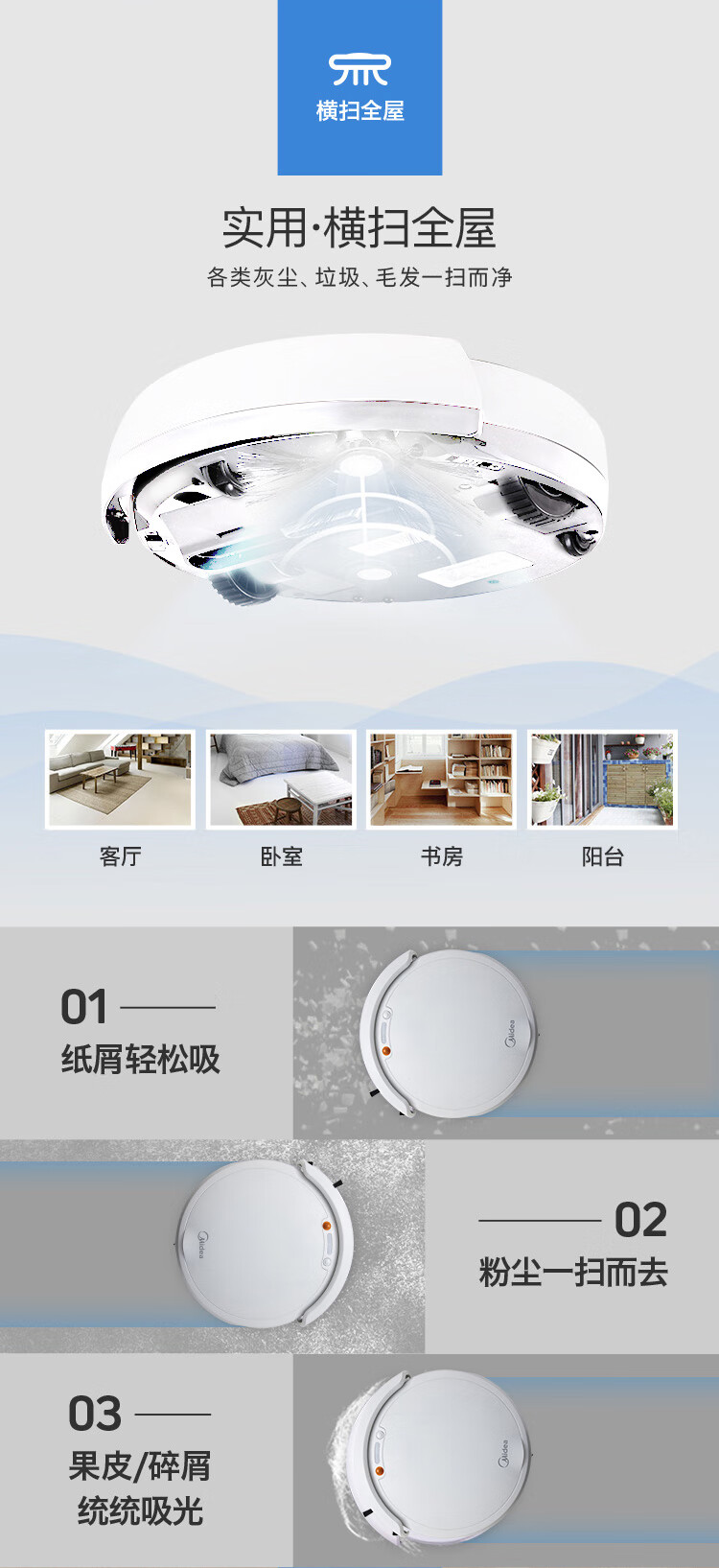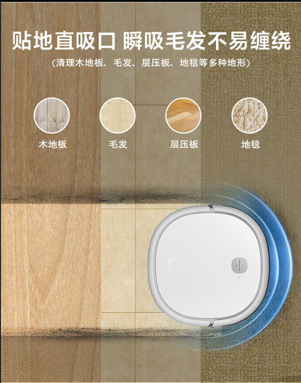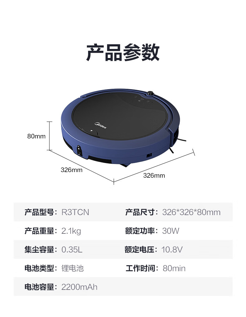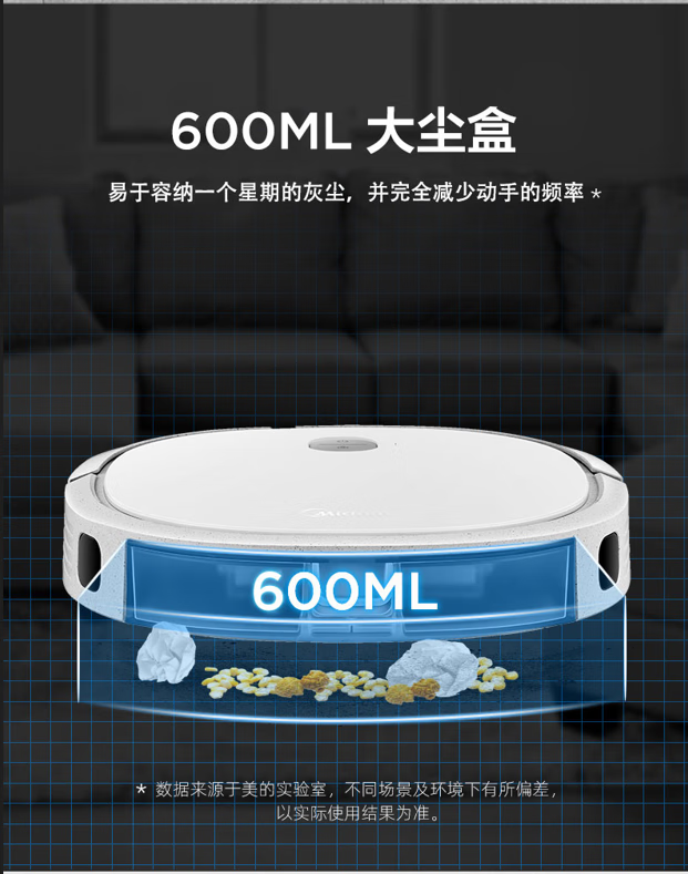 美的扫地机器人吸扫拖一体持久续航家用扫地机APP智控智能防撞 大容量水箱 Ti-08W R3TCN