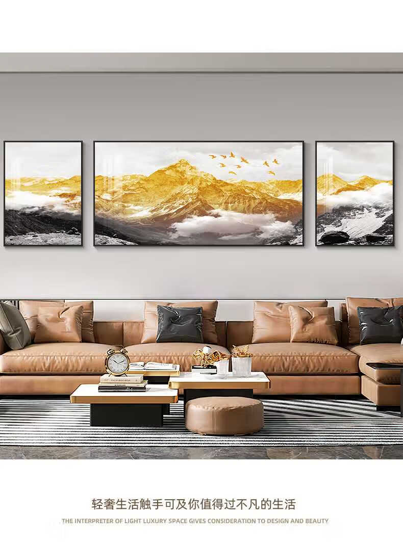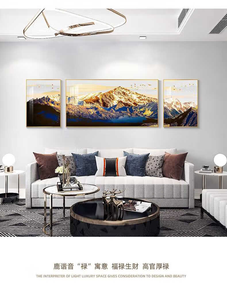 Yi Huanyu regresa a Jinshan sala de estar pintura decorativa ambiente moderno buen significado sofá fondo pared tríptico pintura colgante mural de gran tamaño 15833-115833-215833-3 60 * 80160 * 8060 * 80 adecuado para 3,5 metros a la izquierda