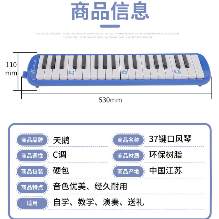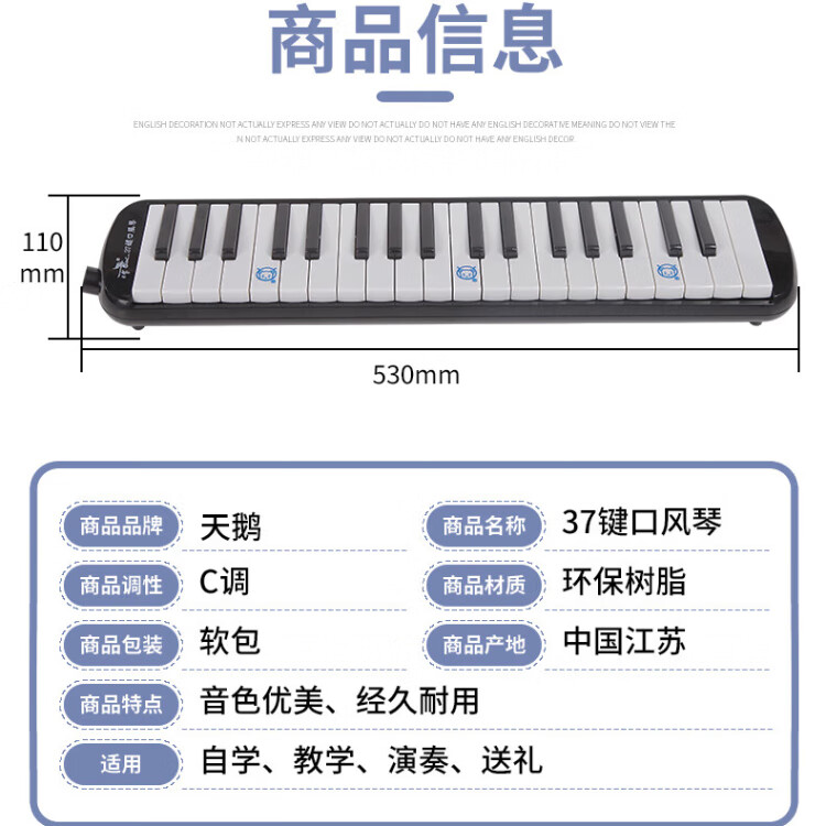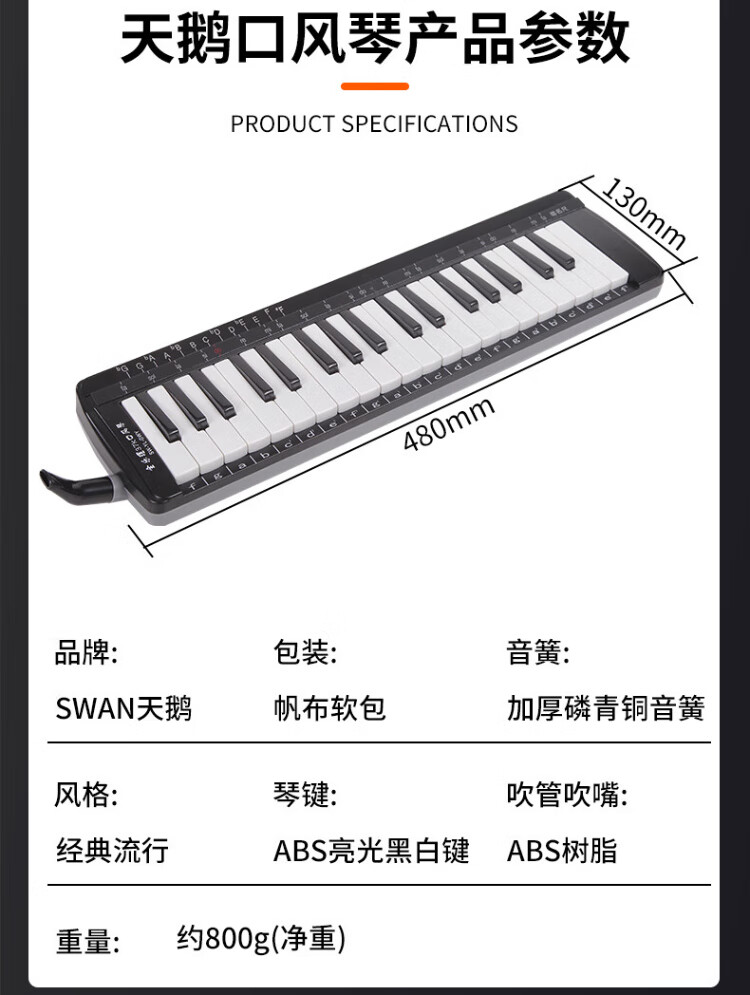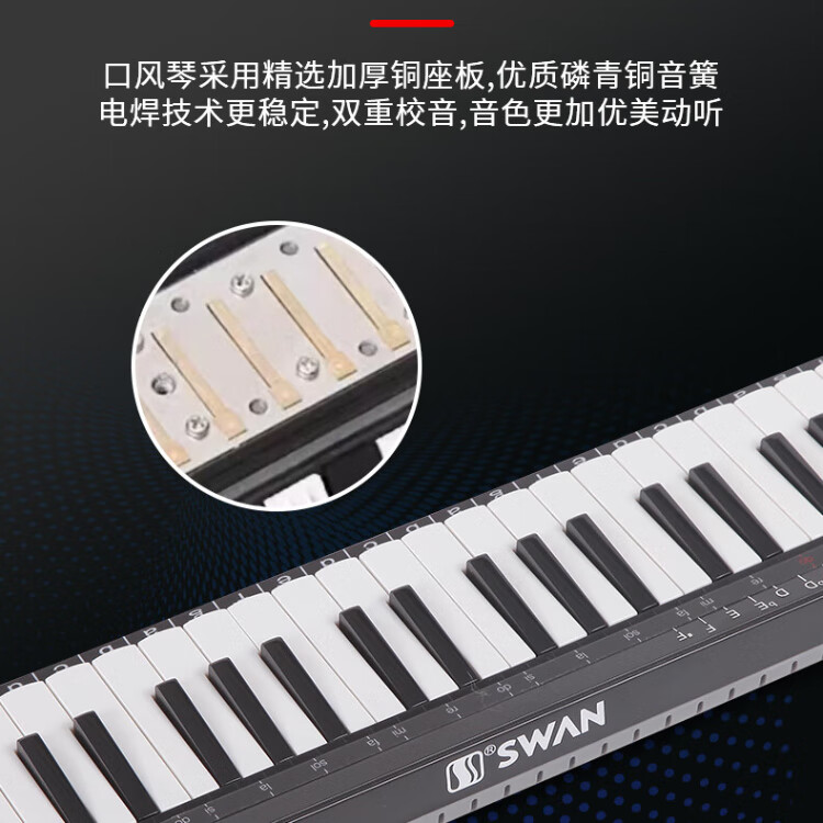 天鹅SWAN SW37YL全乐理口风琴37键学生版儿童小学生32初学专业演奏级 (37键)SW37-YL-24孔复音口琴