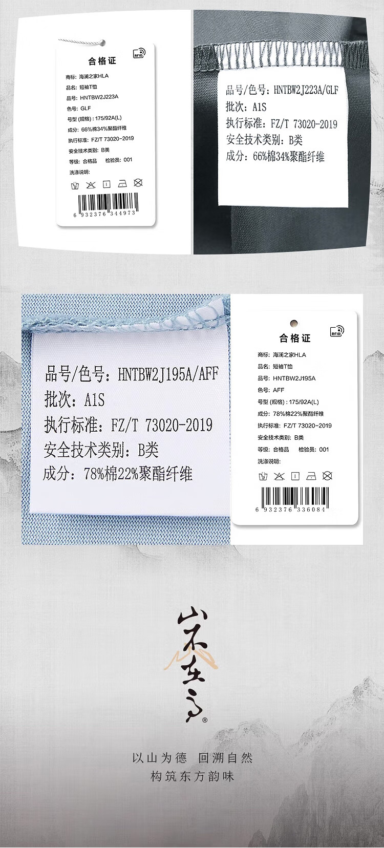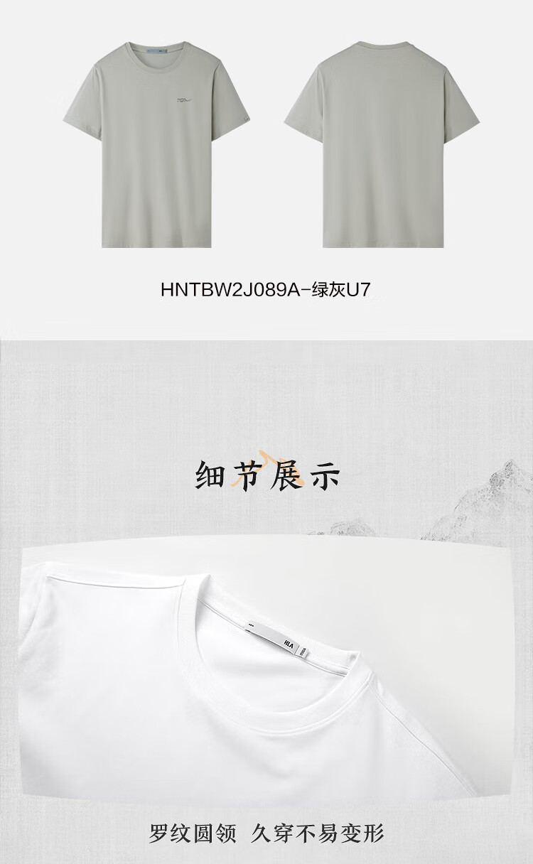 海澜之家(HLA)短袖T恤男【安心品质】凉感圆领短袖男25夏季 漂白AC 山不在高HNTBW2J195A L 175/92A 推荐137~150斤