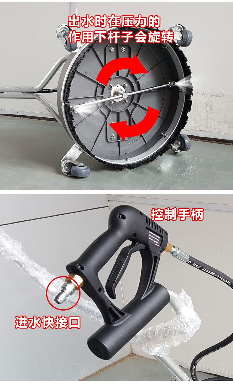 高压七孔洗地器广场马路冲洗地面圆盘水枪物业多喷头冲洗机养殖场V1SN4882 33cm四孔洗地头【不带枪杆】