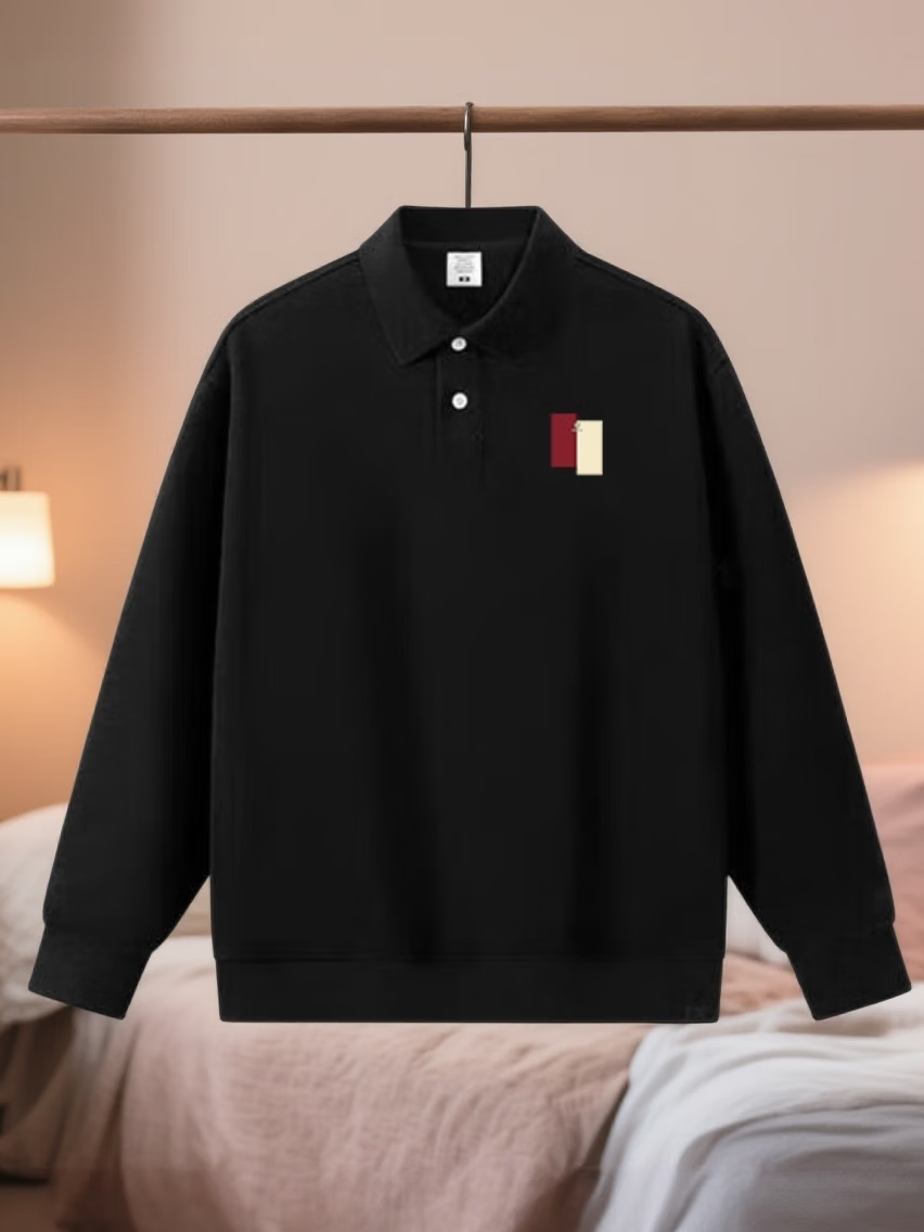 Kuraishi Kazuki design polo 2026 nouveau beau revers T-shirt à manches longues décontracté marque tendance automne et hiver hauts noir XL