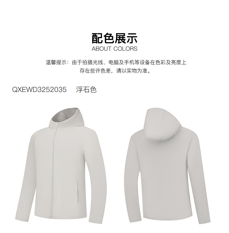Jordan Ice Skin Sonnenschutzjacke Herrenjacke UPF100+ Ice Silk Skin Jacke Sommer Atmungsaktive Windjacke Jacke Sonnenschutzjacke Cremeweiß/Grau L