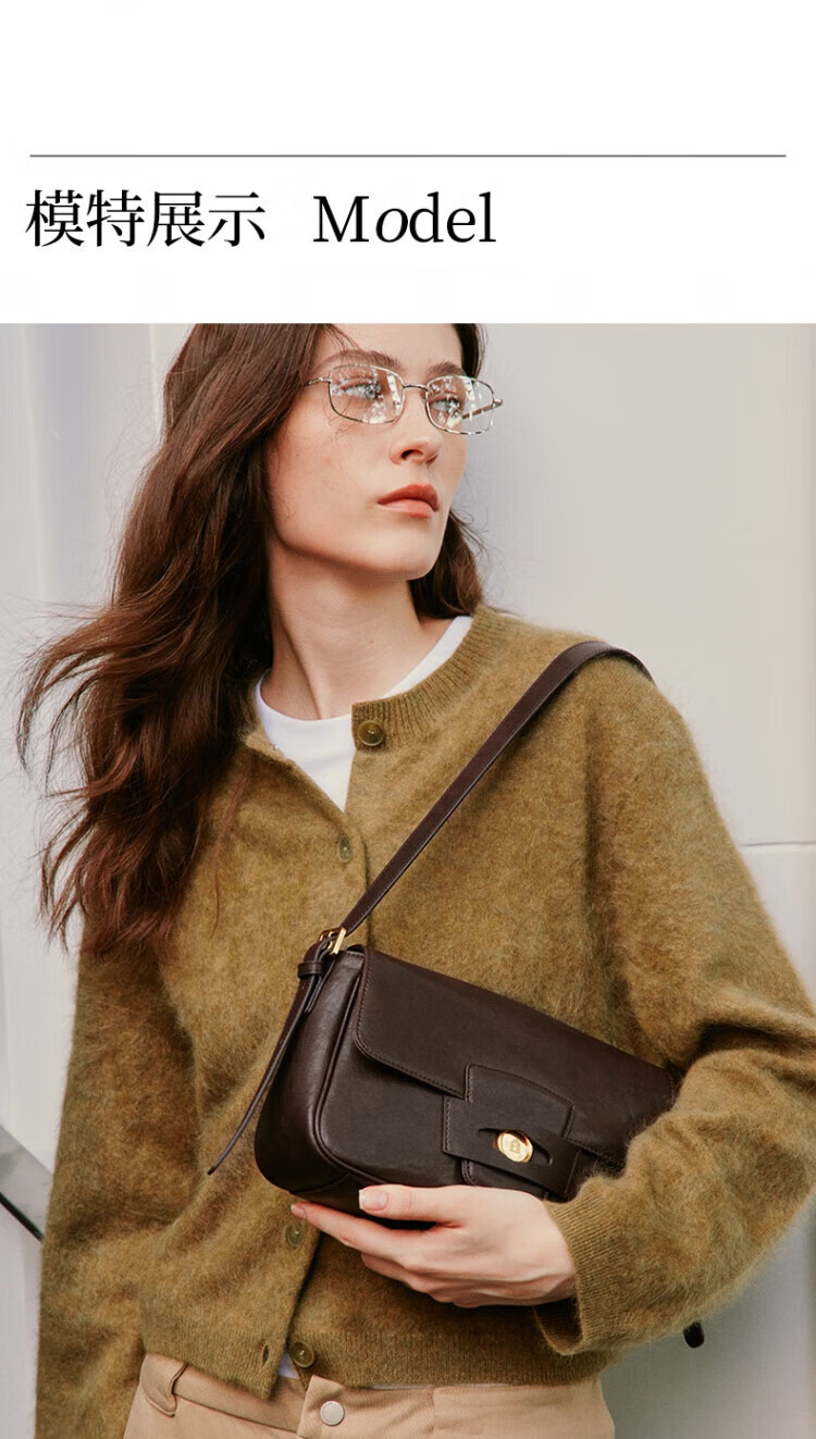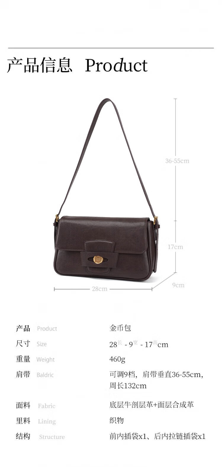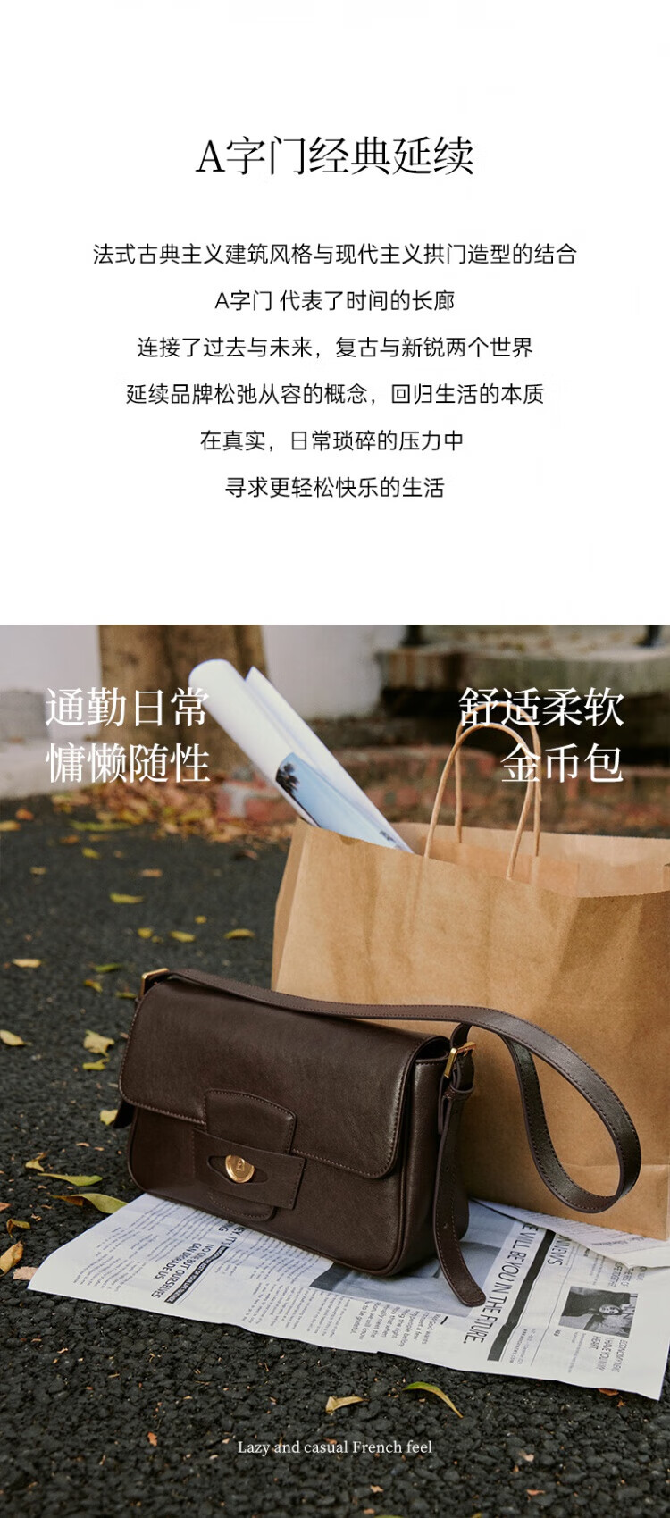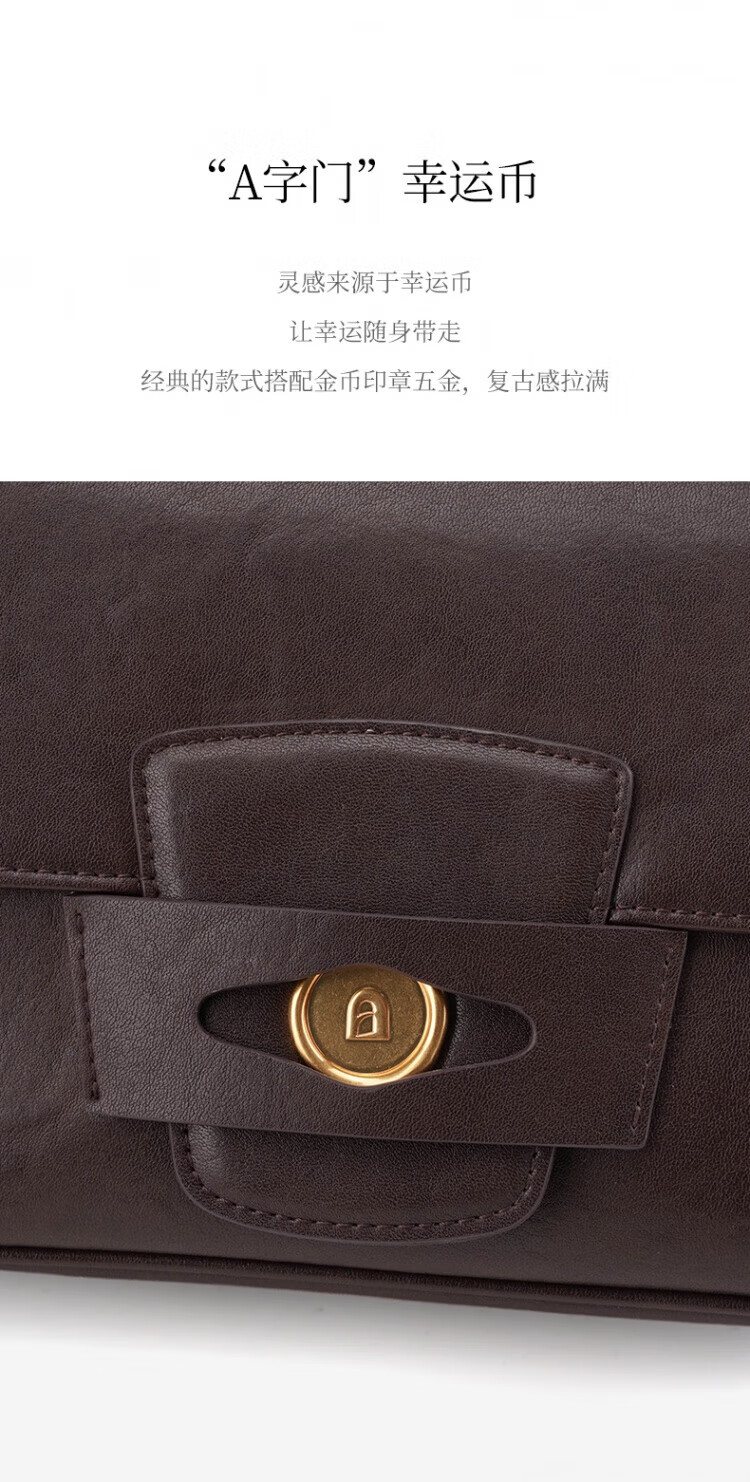 拉菲斯汀金币包新款秋冬包包棕色通勤女包斜挎包腋下包 咖
