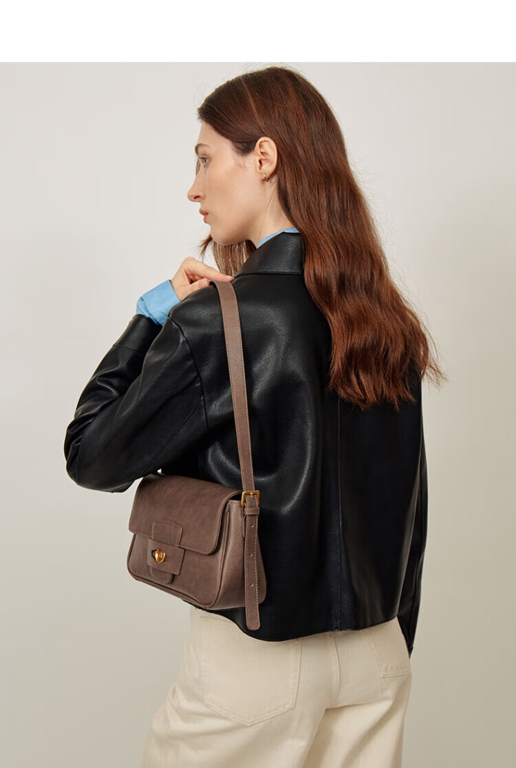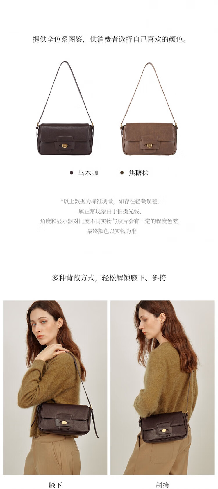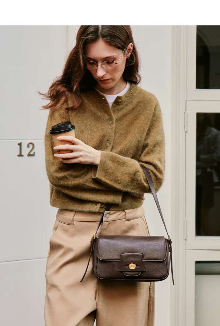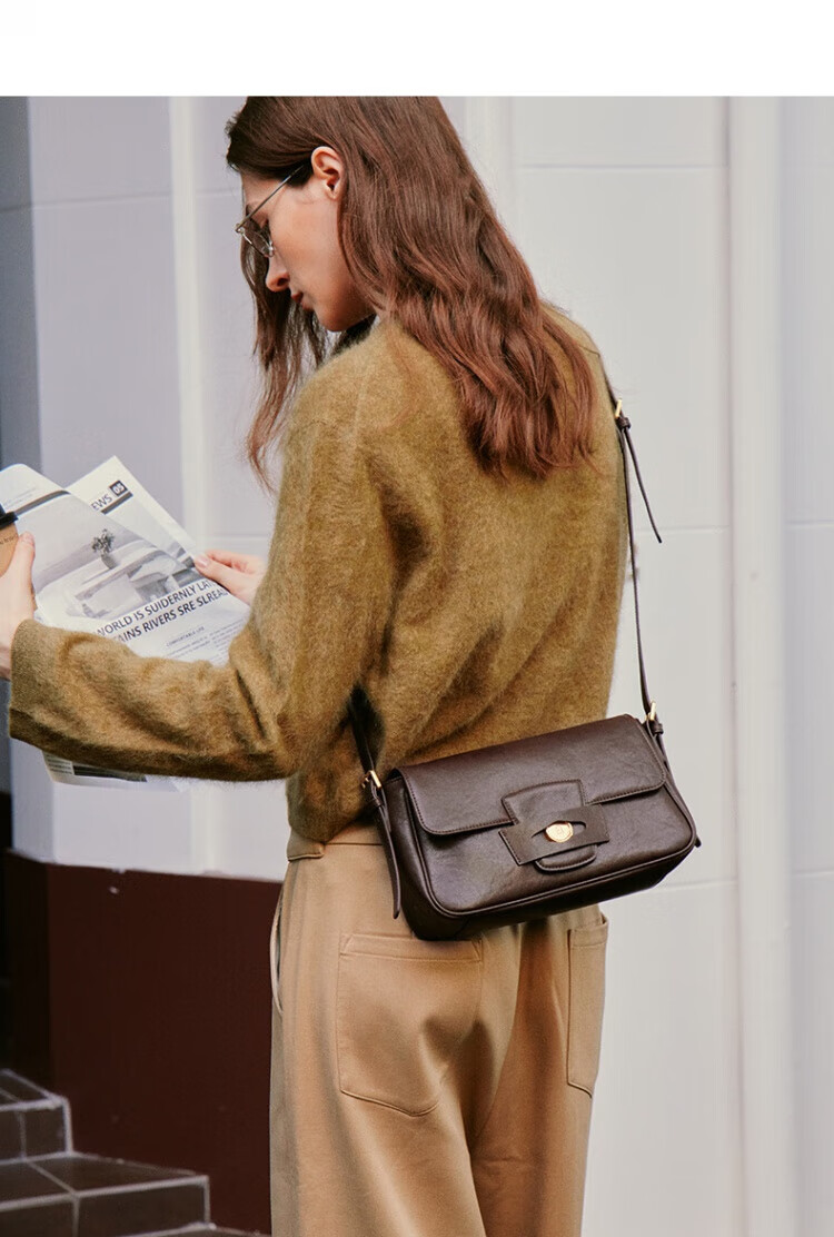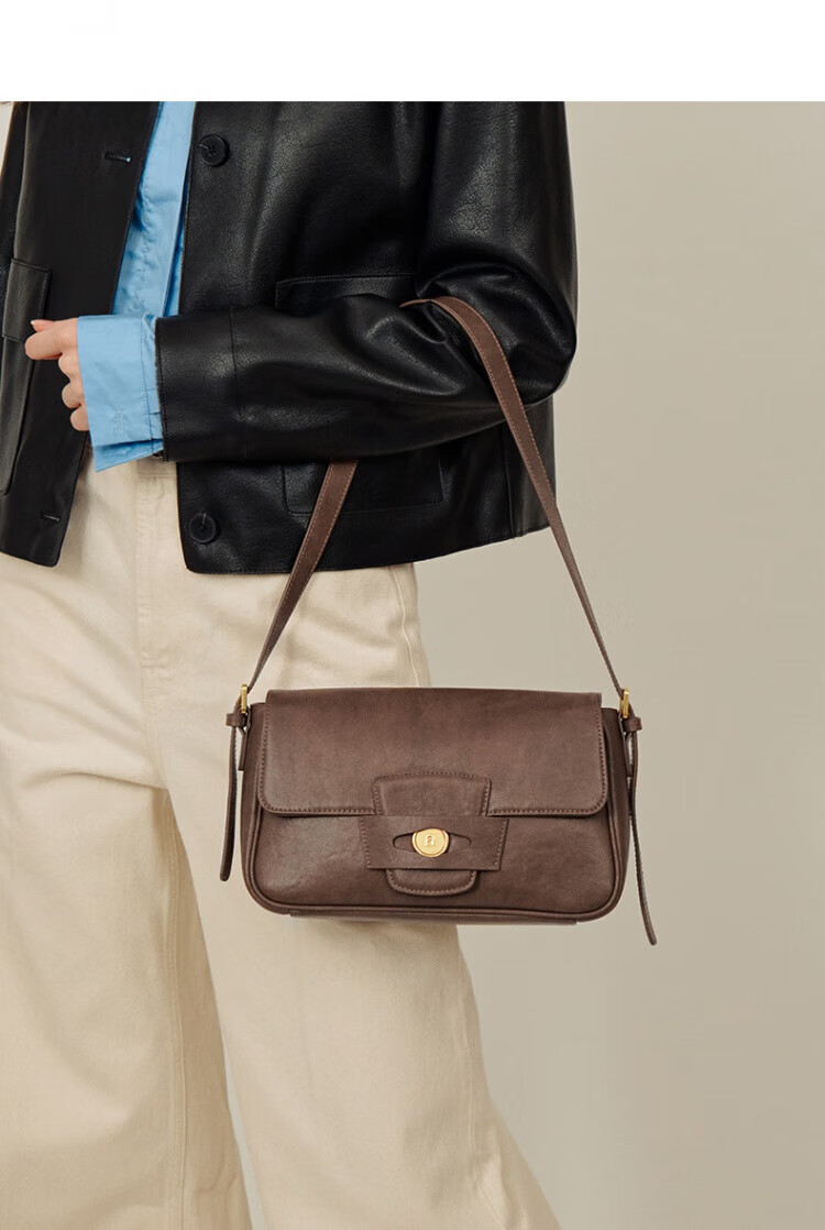 拉菲斯汀金币包新款秋冬包包棕色通勤女包斜挎包腋下包 咖