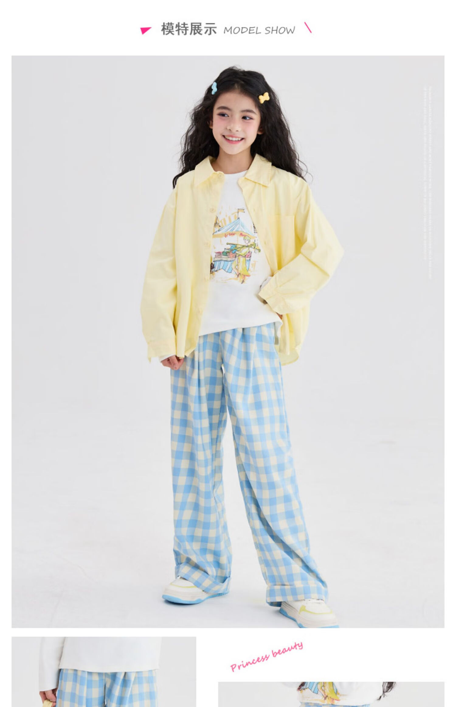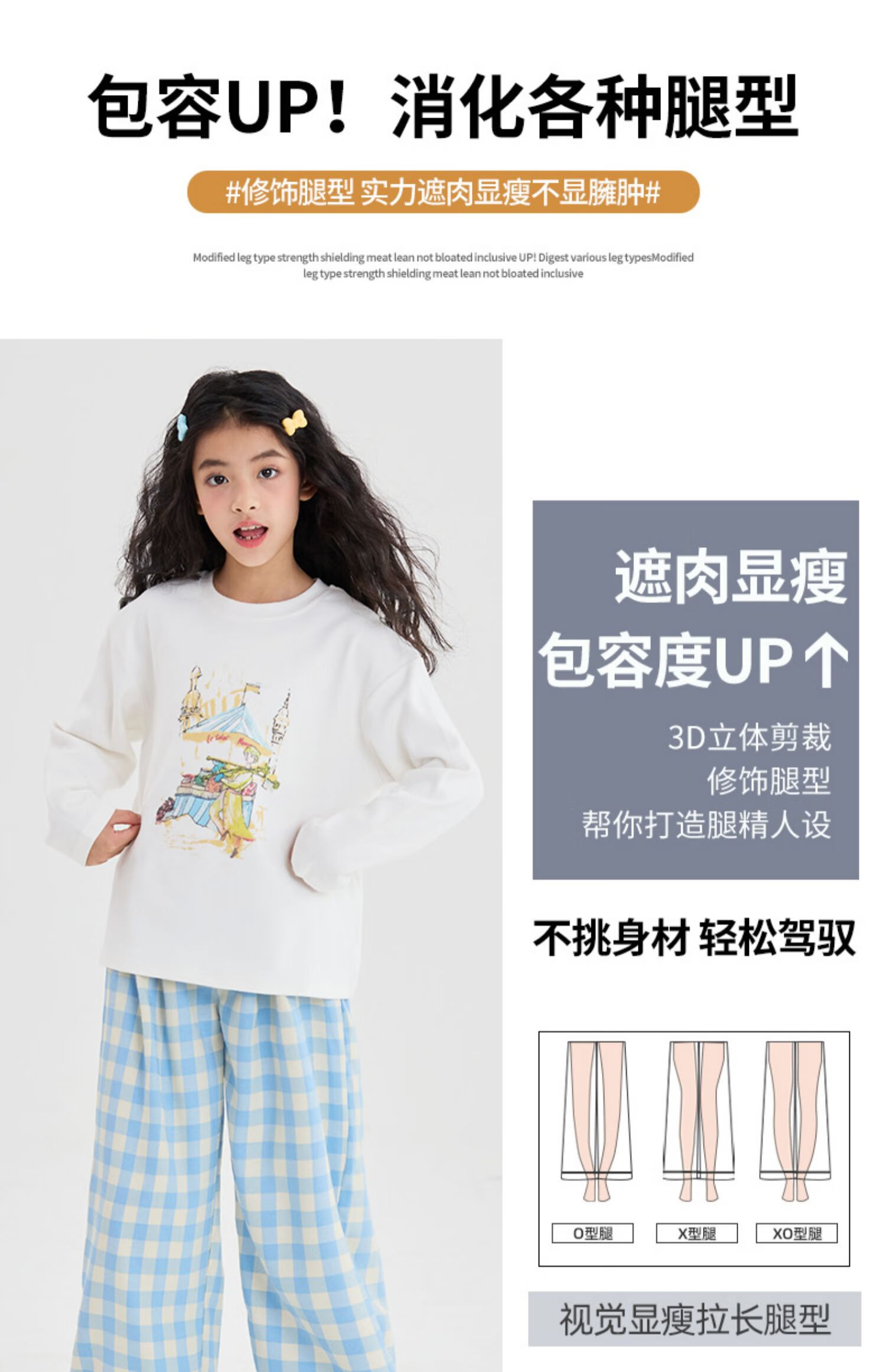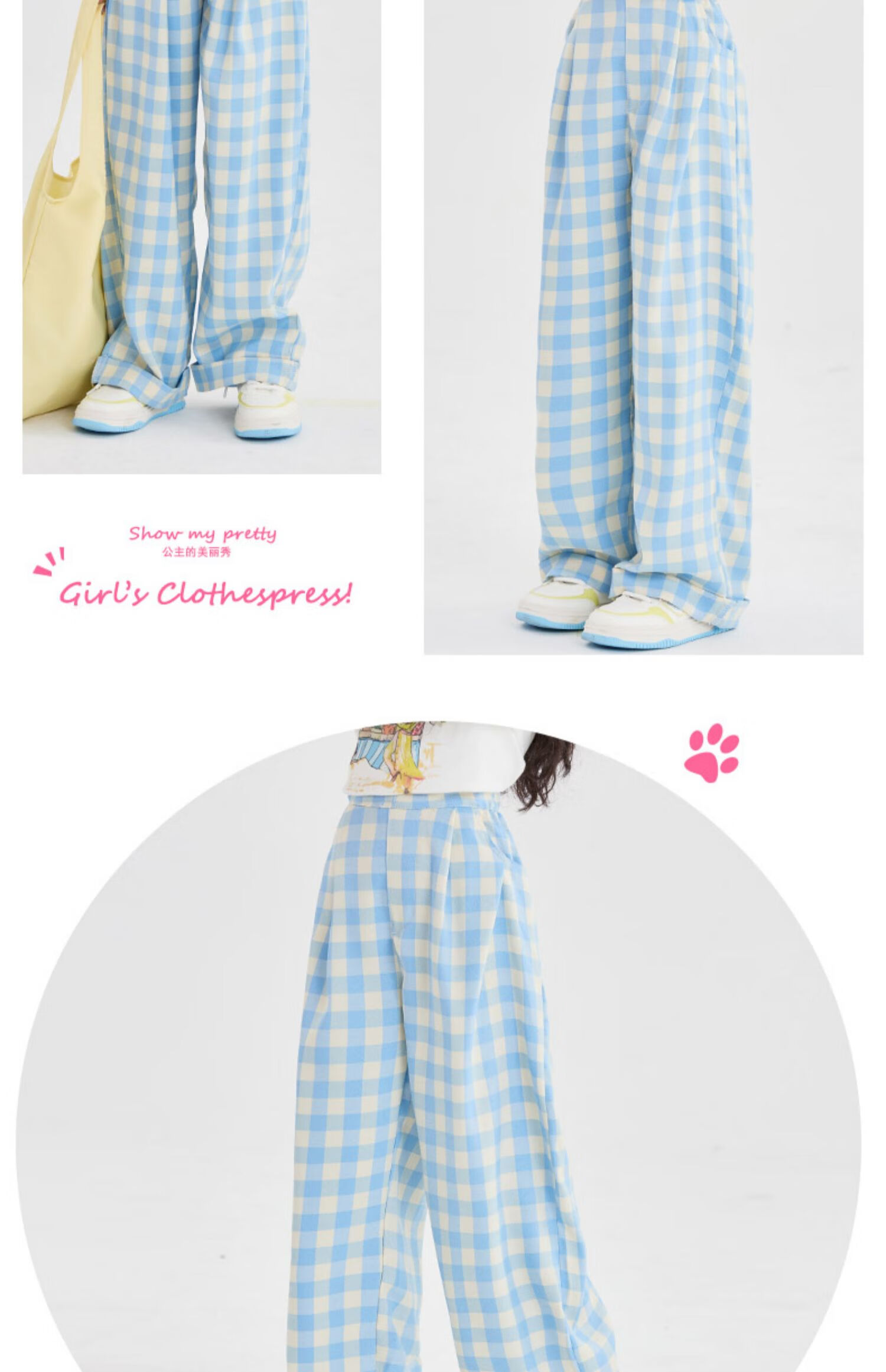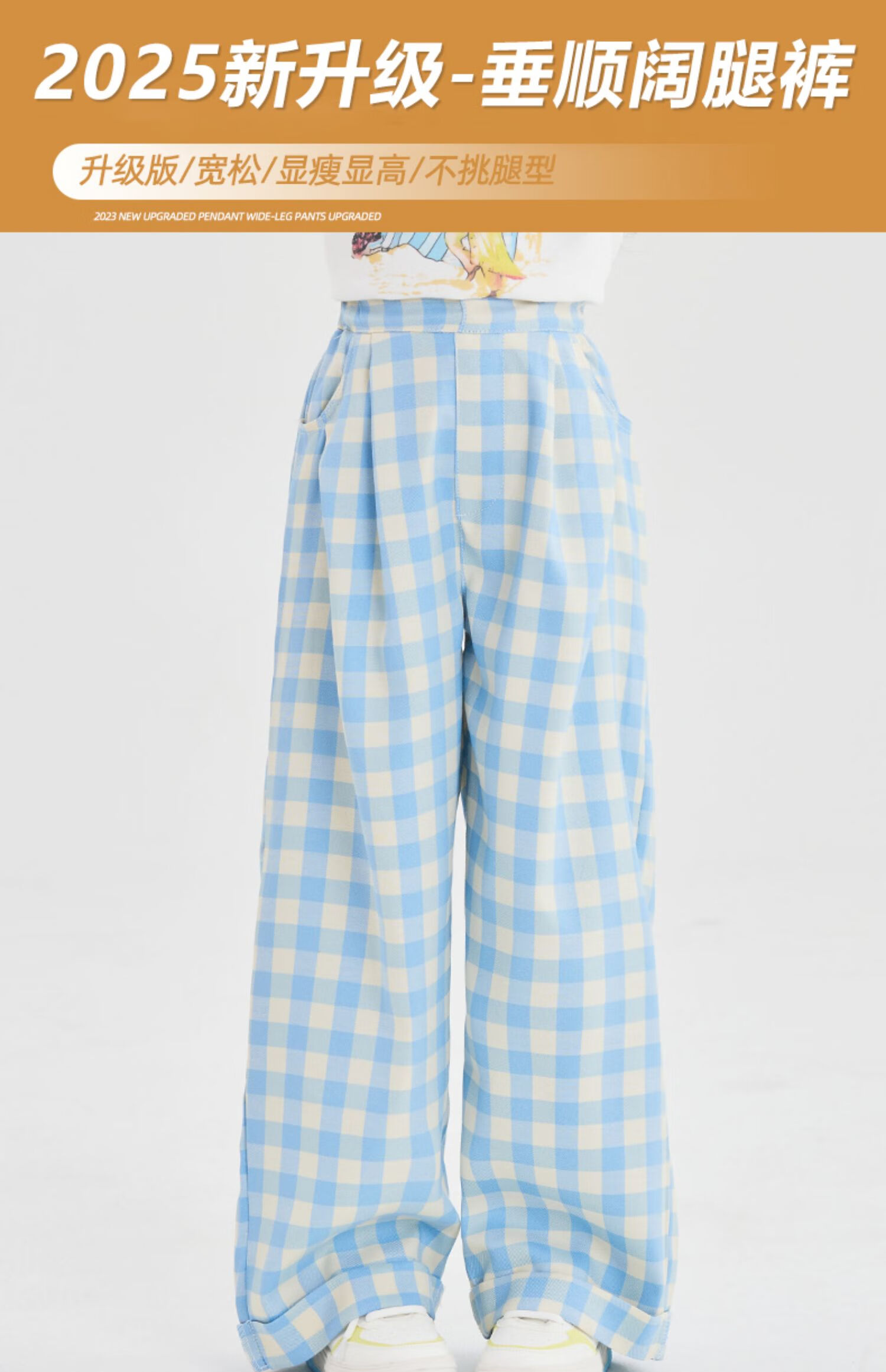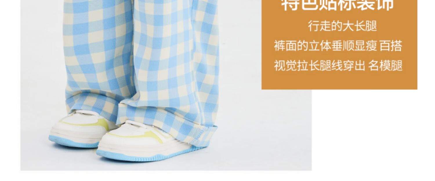 优优1点(Yoyo one)女童阔腿裤2025新款大童休闲直筒春季儿童蓝色格子裤洋气春装裤子 15270藏青色 120 120cm