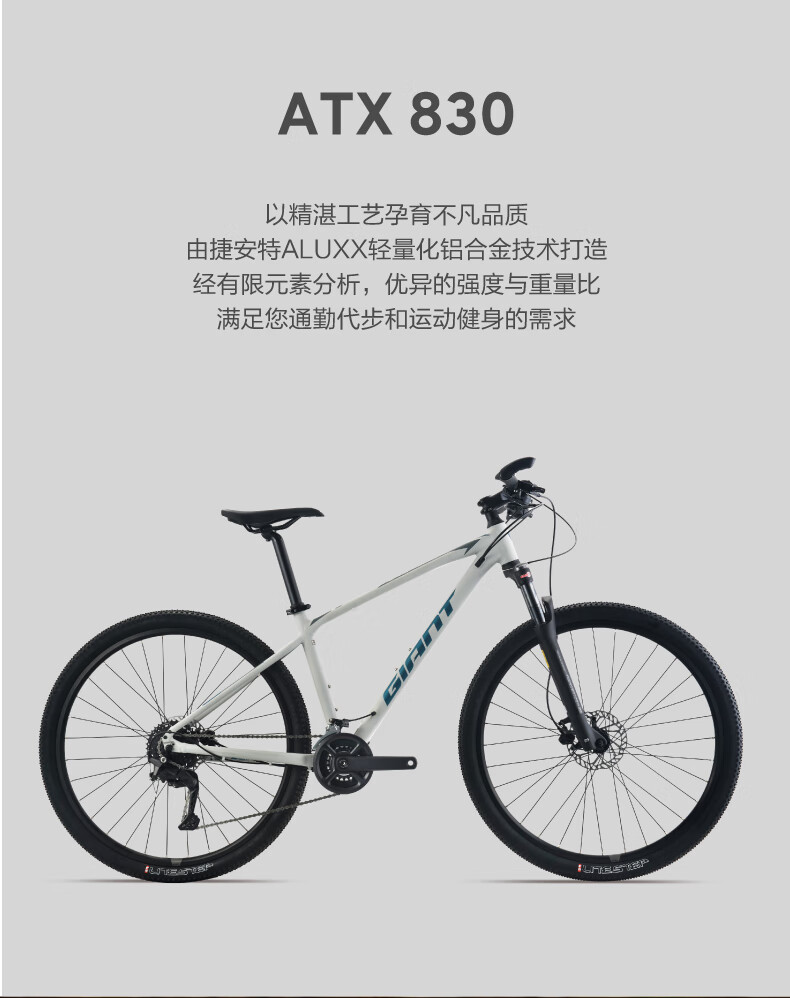 捷安特(GIANT)ATX 830油压碟刹成人铝合金18速可锁死避震山地自行车 消光亮黑 27.5×14.5 XS 适合身 27.5英寸 标准 18速