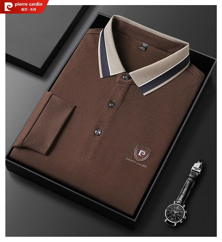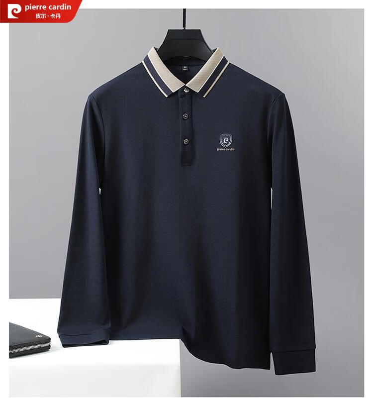 皮尔卡丹纯棉长袖t恤男士春季2025新款体恤衫纯色中年爸爸装翻领POLO.衫男 红色 SKL-15810 S 165码【90-115斤左右】